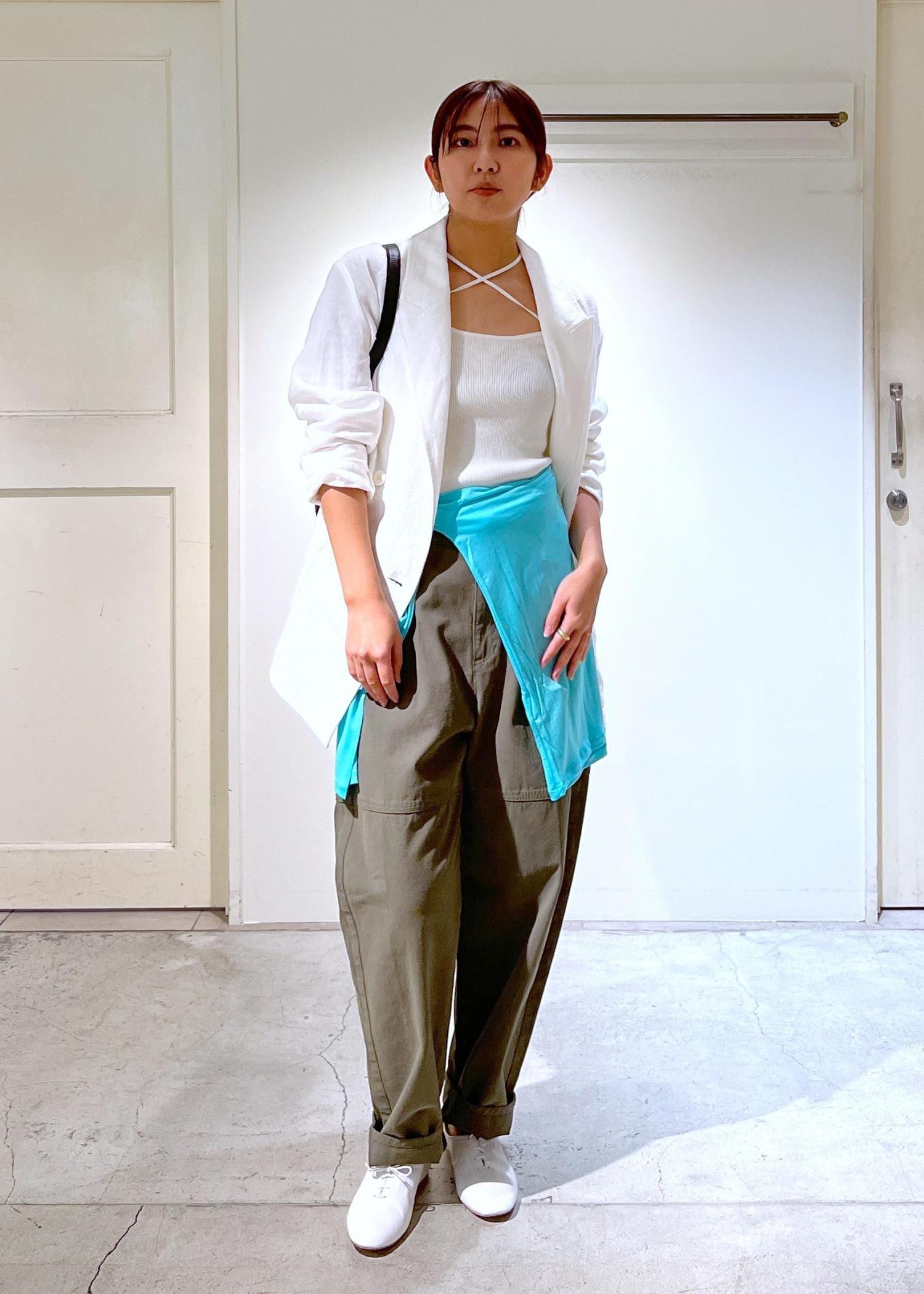 カーゴパンツとジャケットの組み合わせがお気に入りなので、ロンTを腰巻きでいつもと違う雰囲気に。