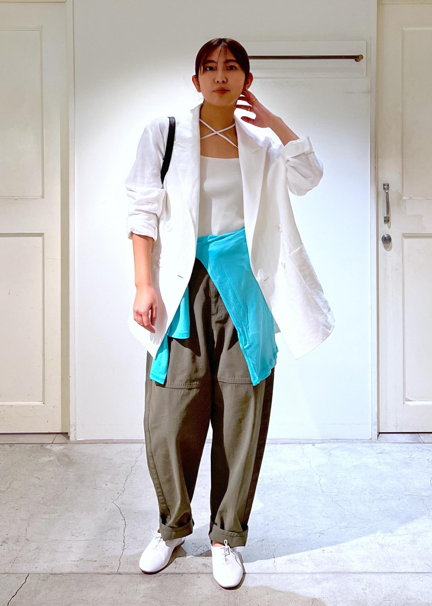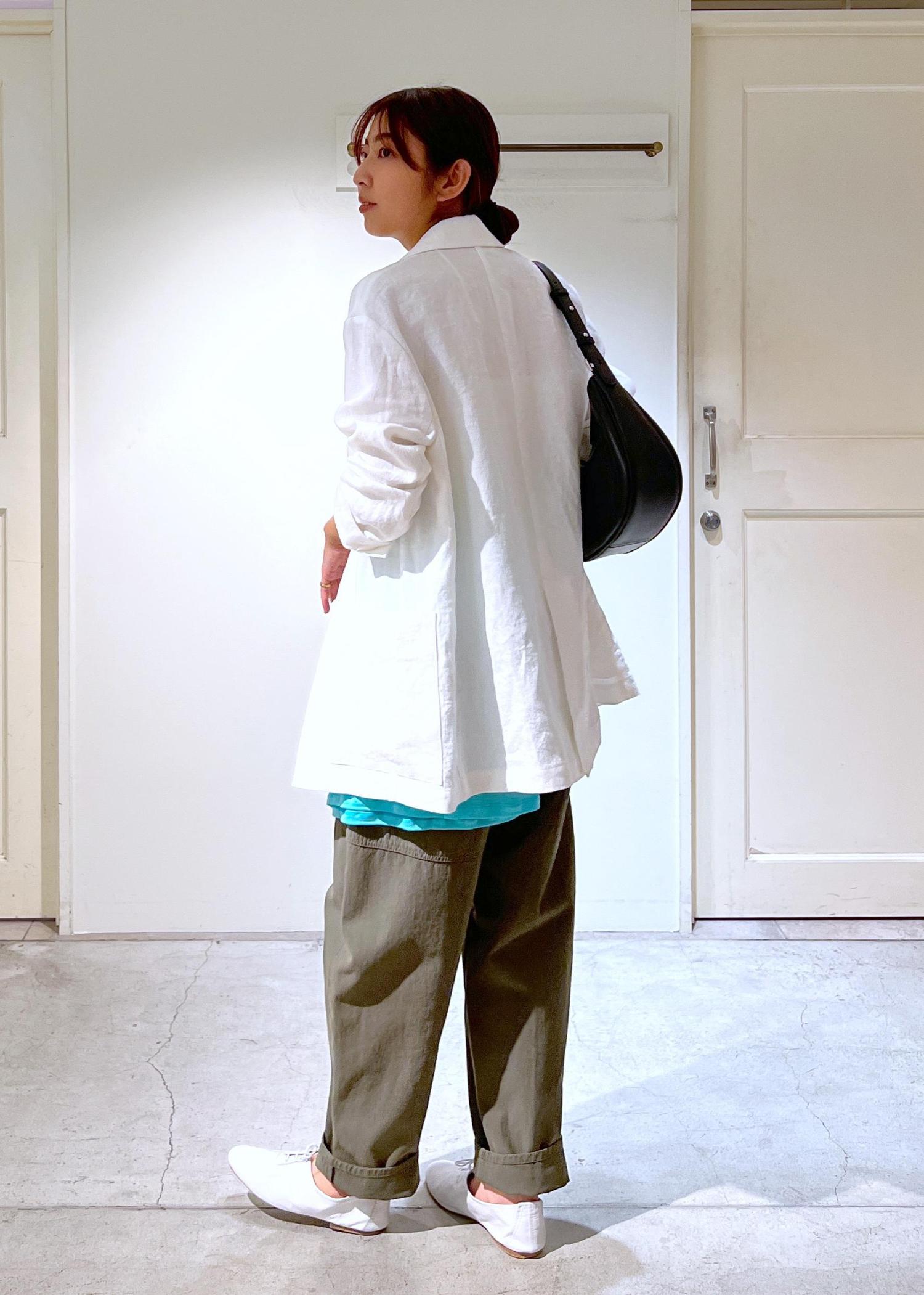ダブルジャケットでゆったりした身幅、リネンの軽めの素材なので気張らずさっと羽織れます!