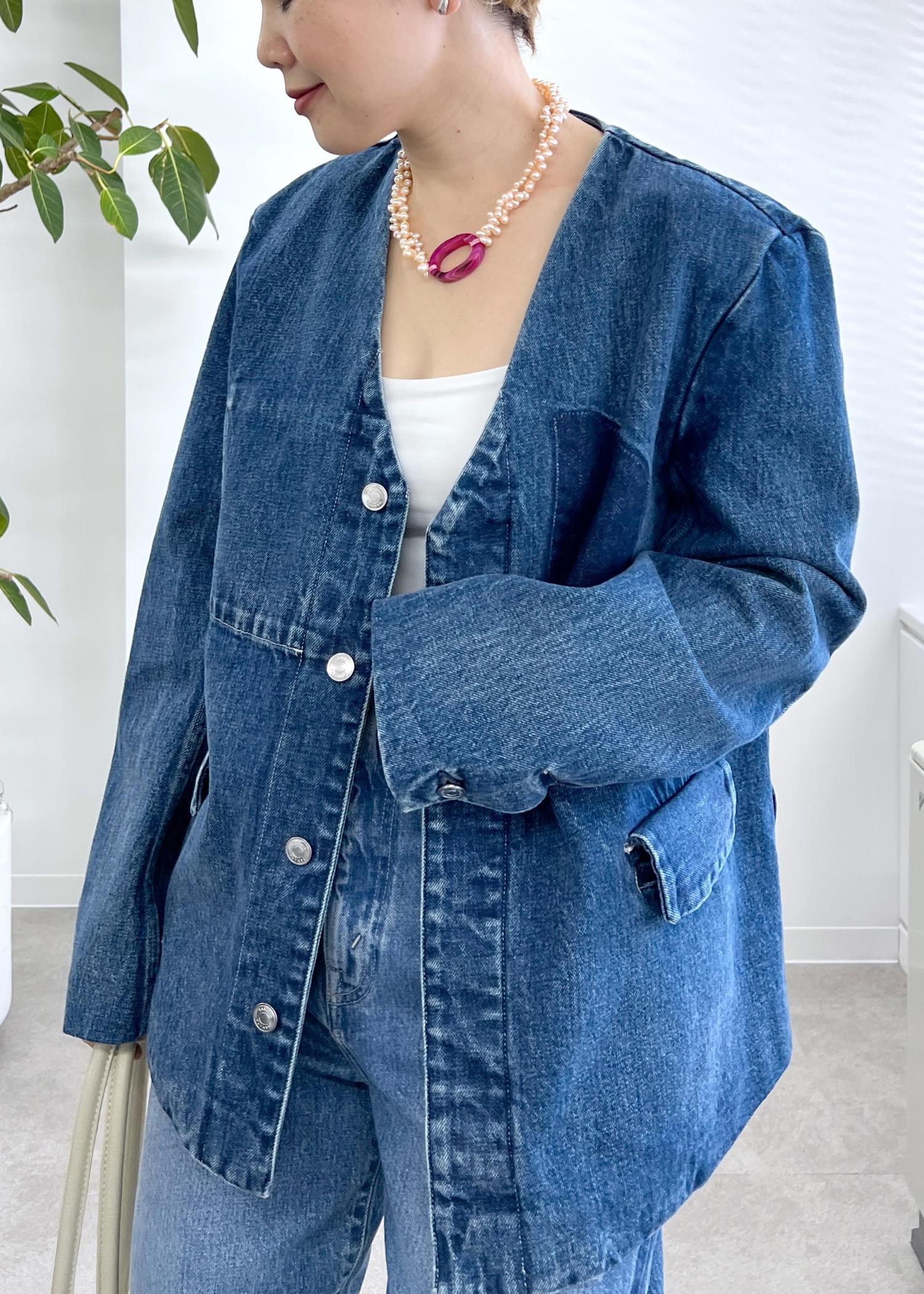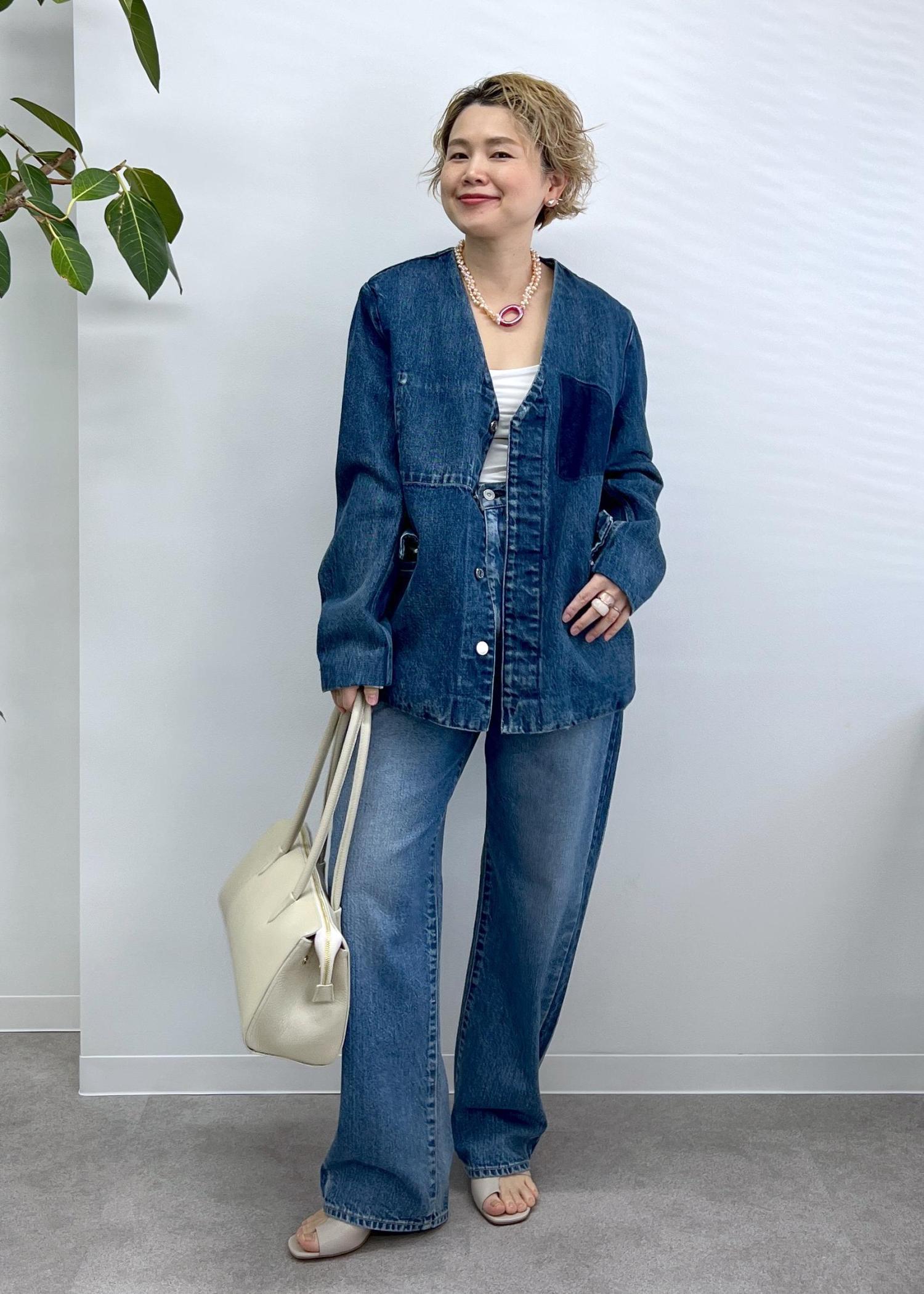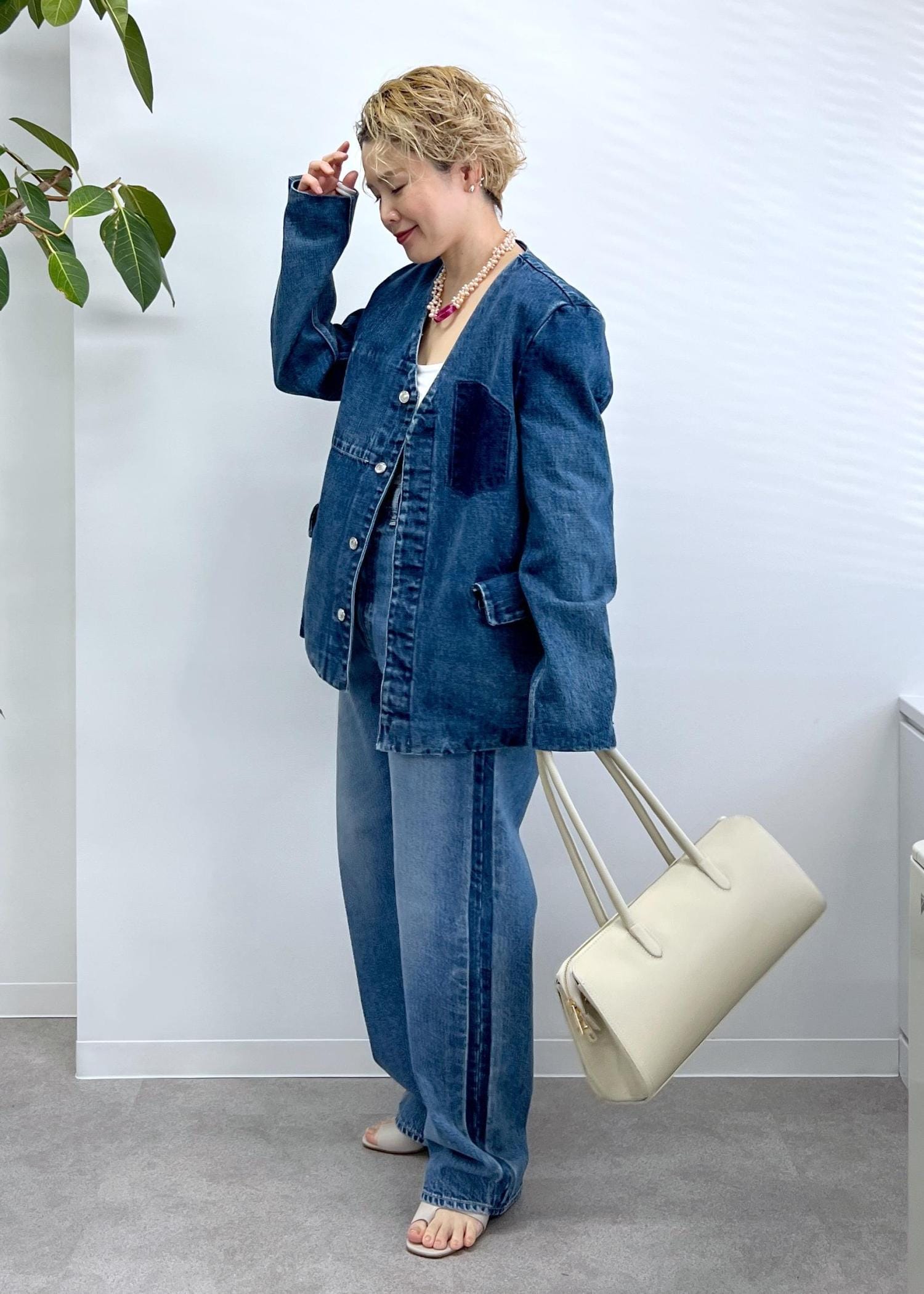 【TANAKA】NO COLLOR JEAN JACKETを使った