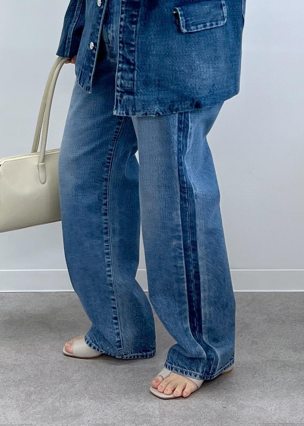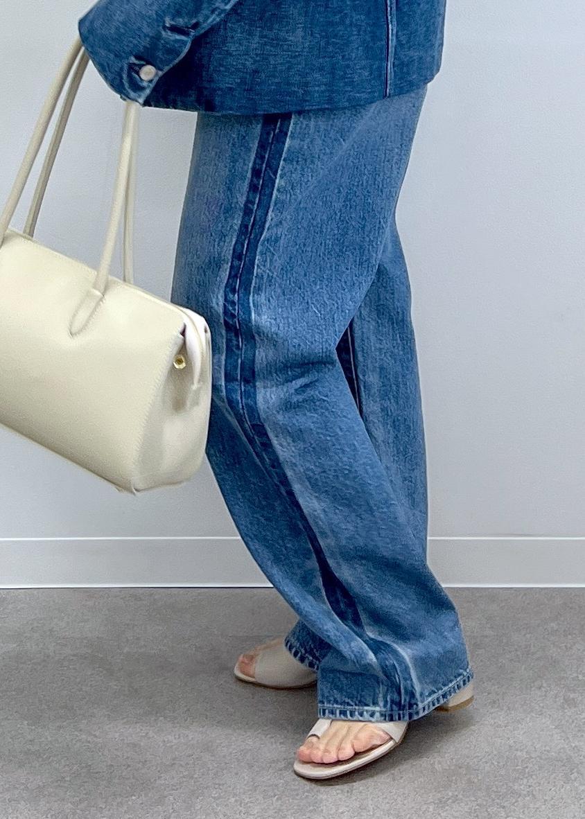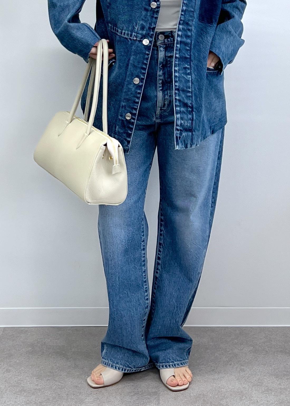 程よくハリのあるデニム素材。ゴワゴワした感じはなく楽に着られる素材感です。
