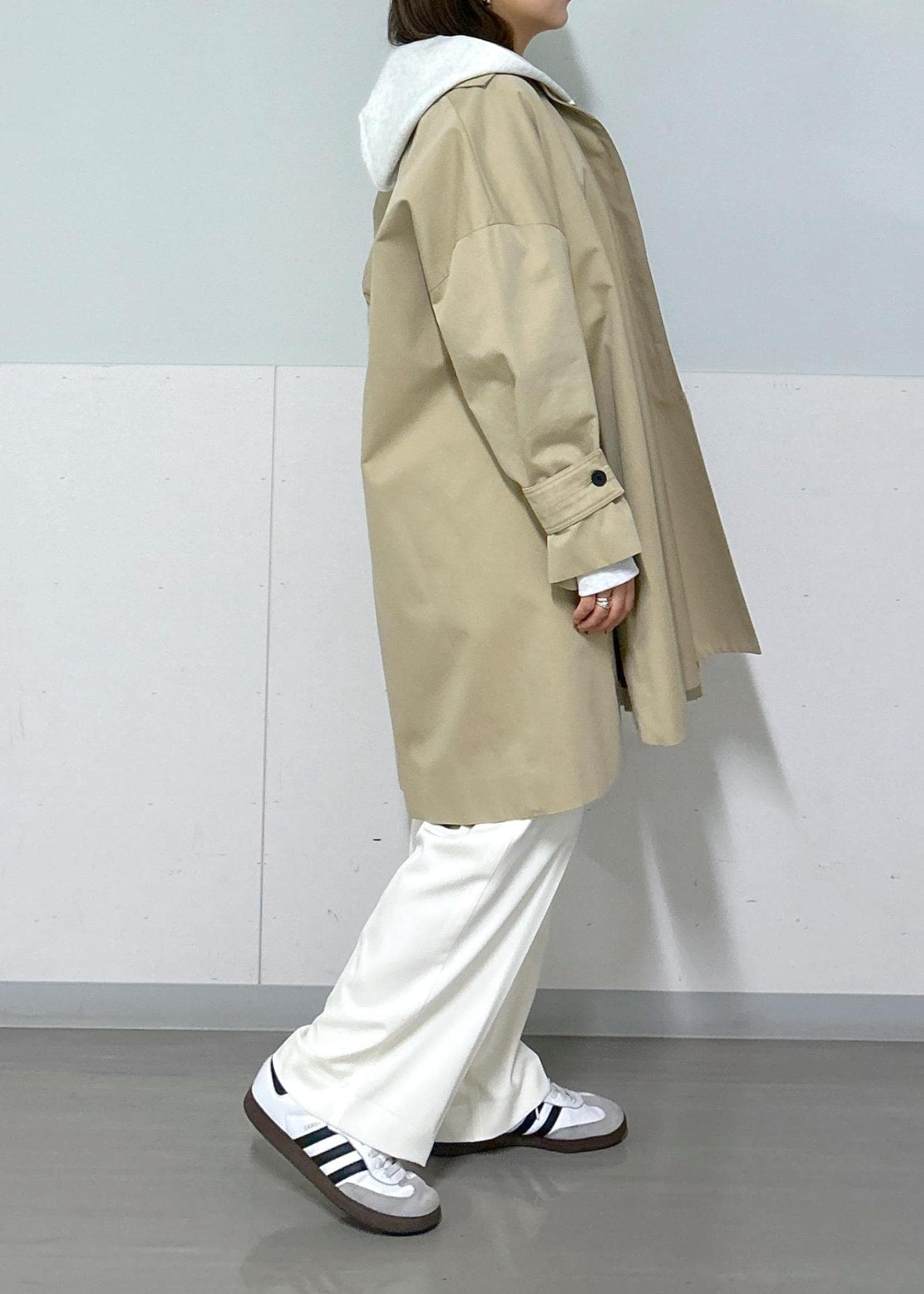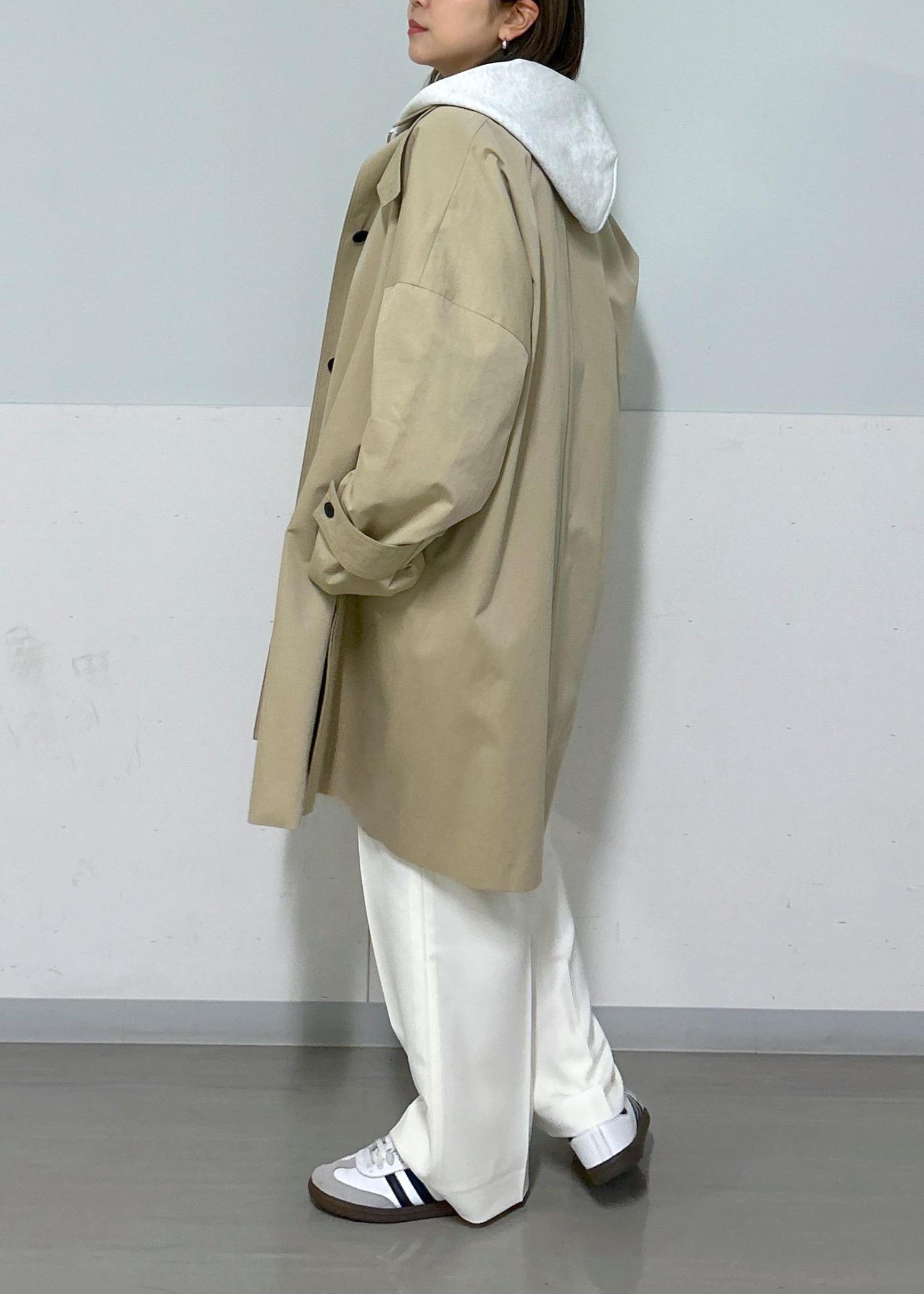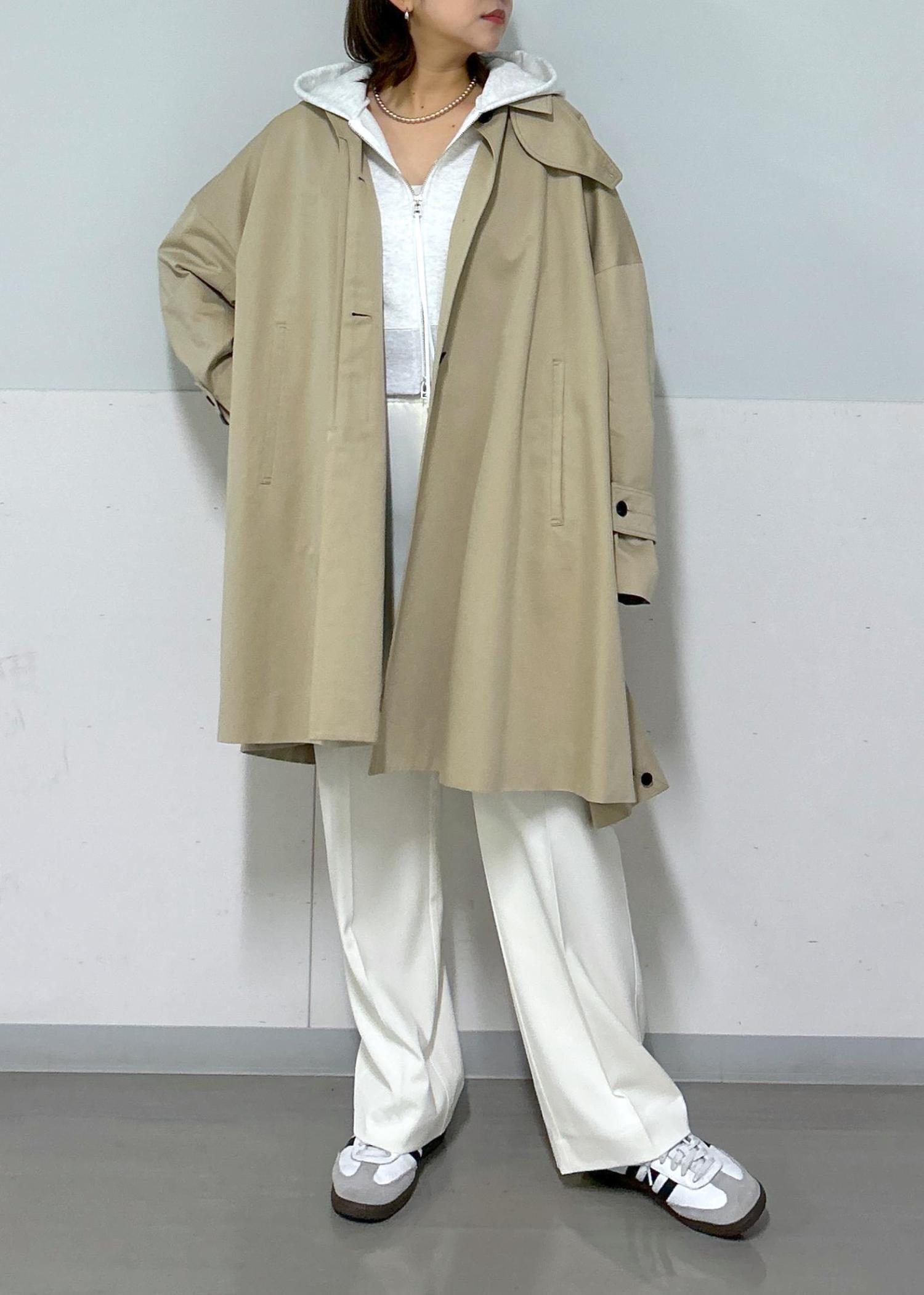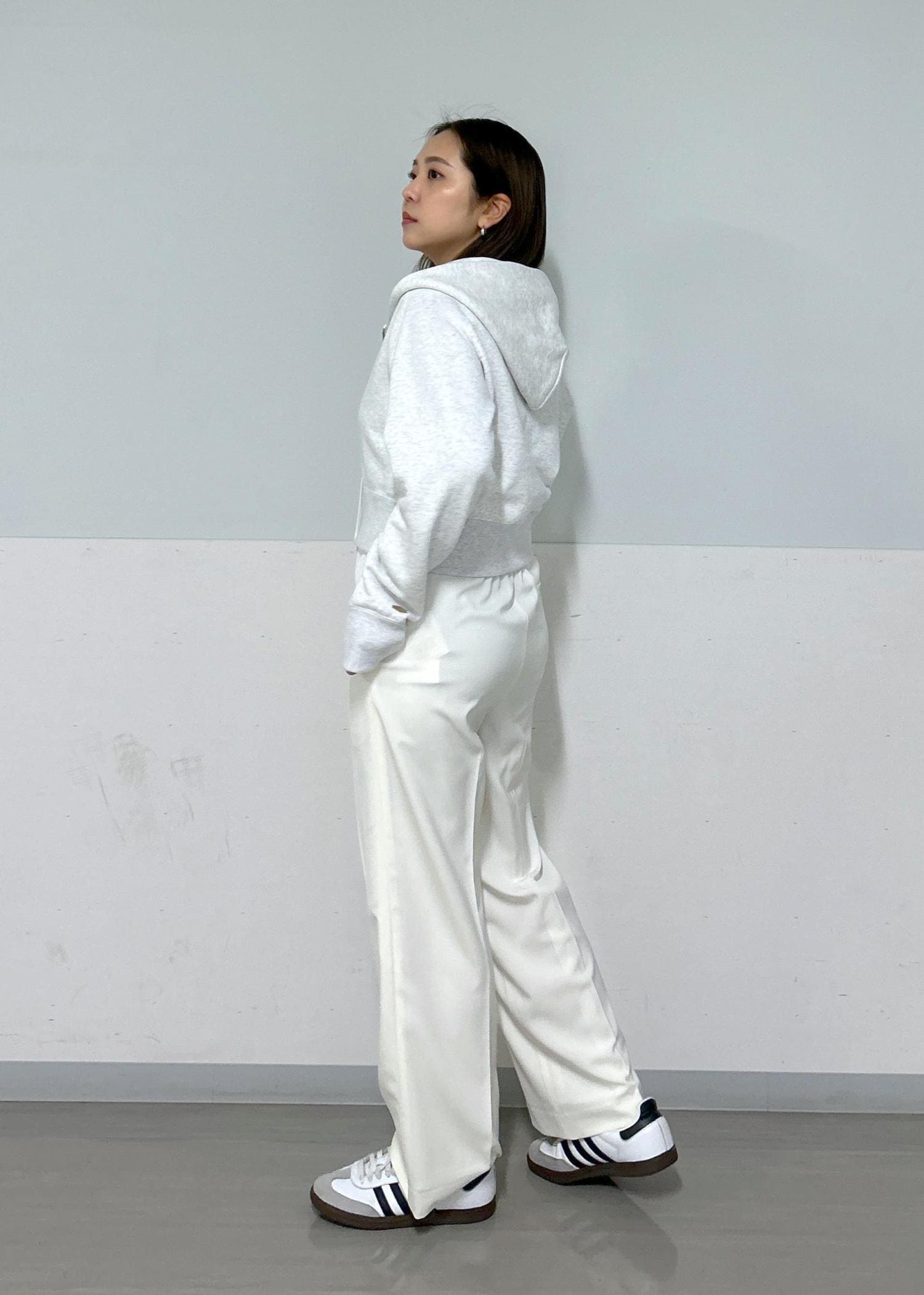 丈は長めでゆるっとしたシルエットで着用いただけます。普段通りのサイズ感でかかと上位の丈感です。