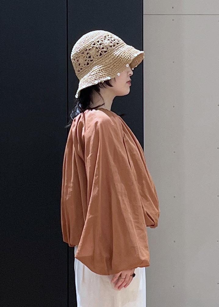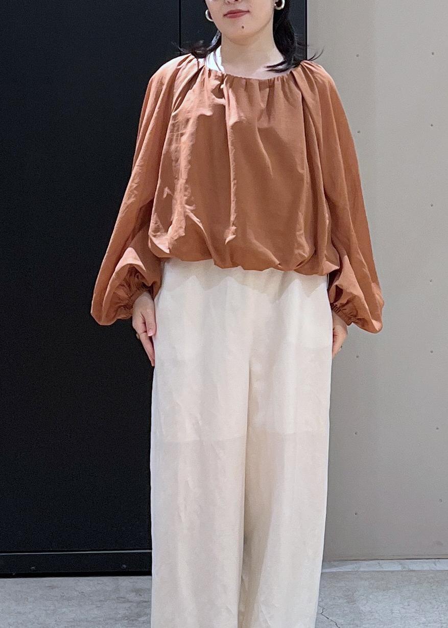 SALON adam et ropéシアーバルーンスリーブプルオーバーブラウン系 / F¥19,800レビュー短め丈ですが、お腹が見える心配はないくらい。