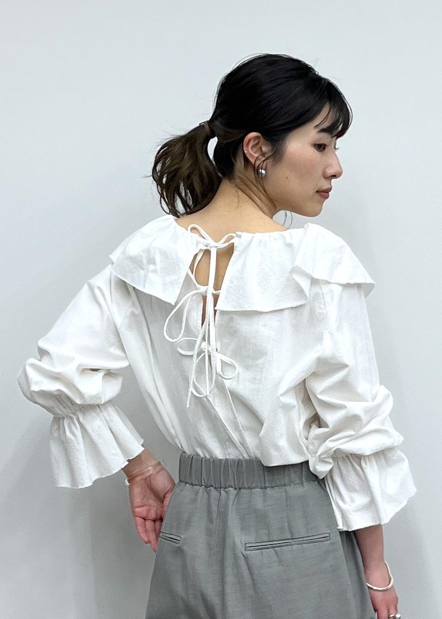 【WEB限定】バックリボンフリルカラーコットンブラウス