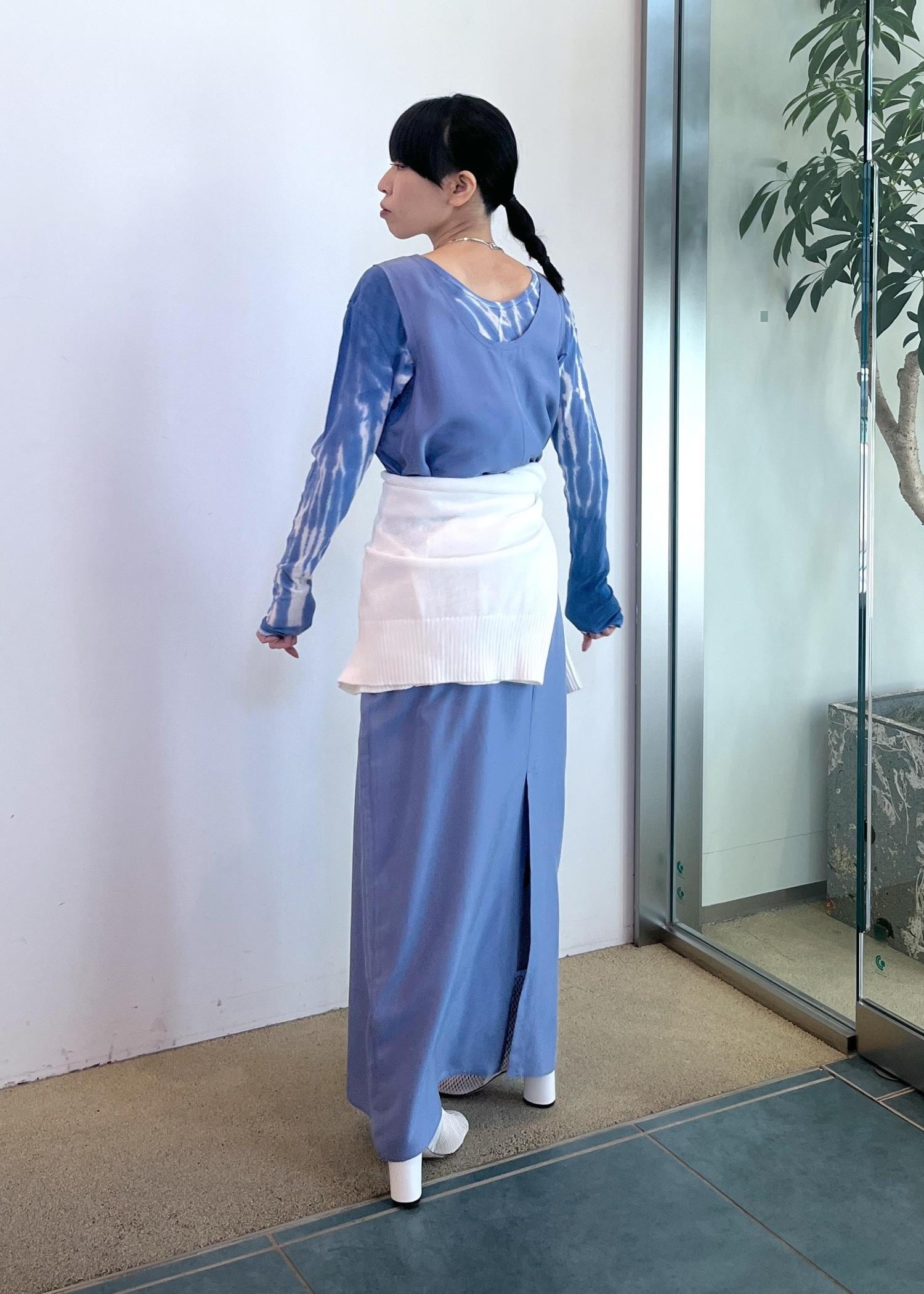 柔らかく、軽やかな素材。インナーにカットソーをレイヤードするゆとりがあるのでノースリーブが苦手な方にもおすすめです。