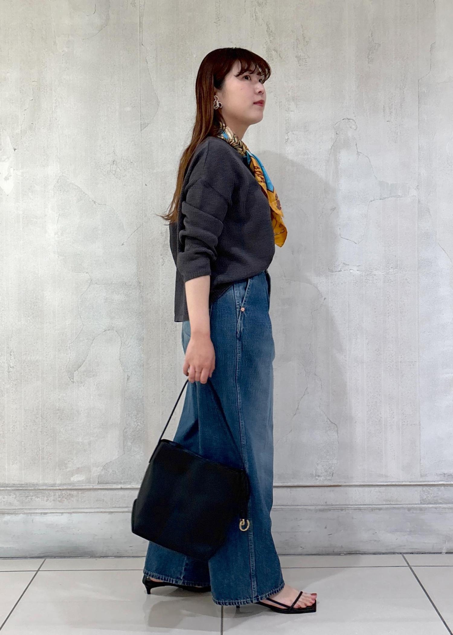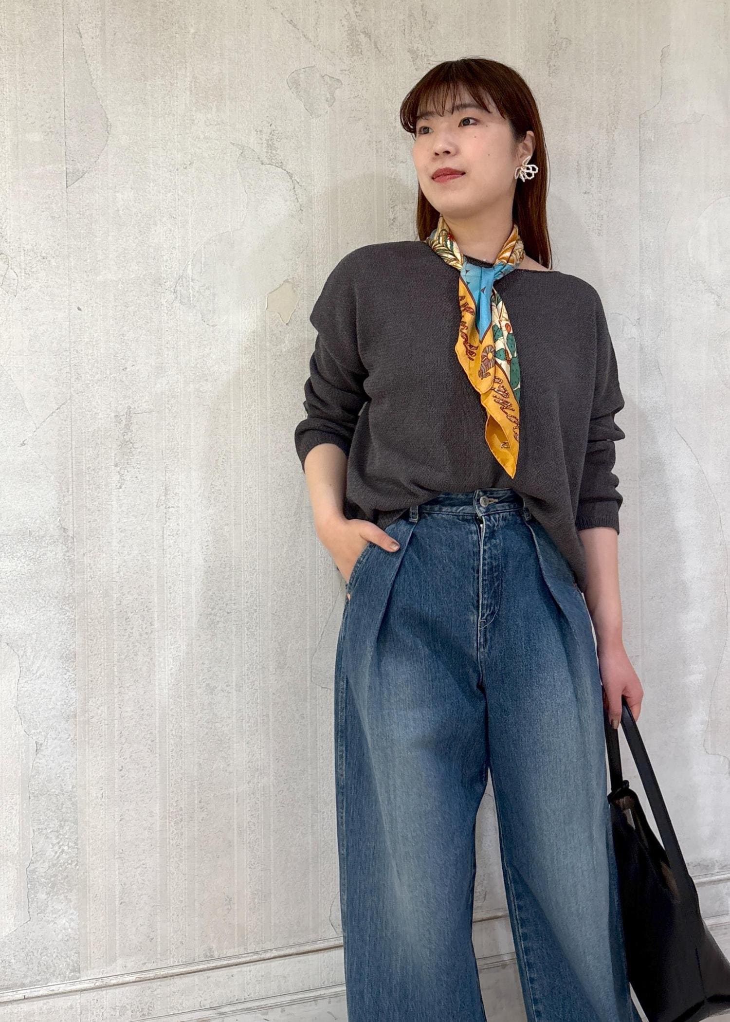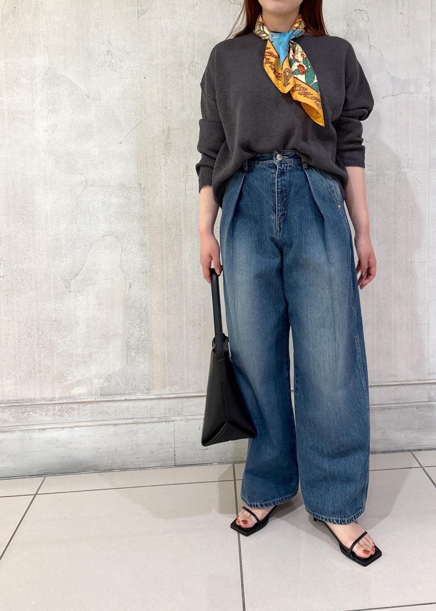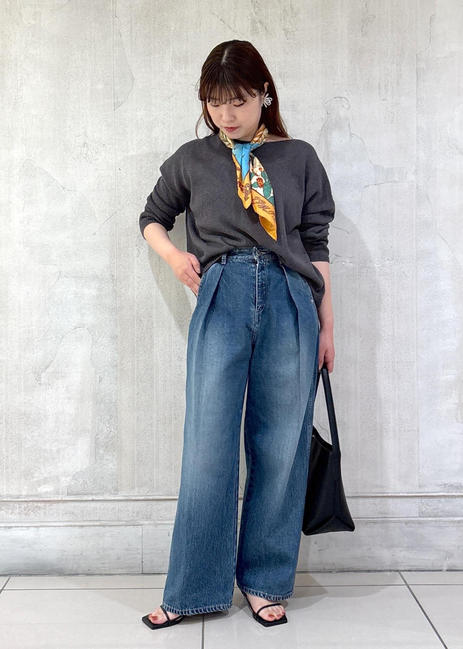 暖かくなるシーズンでは、デニムを少しリラックス感のあるスタイリングで合わせたいですね。