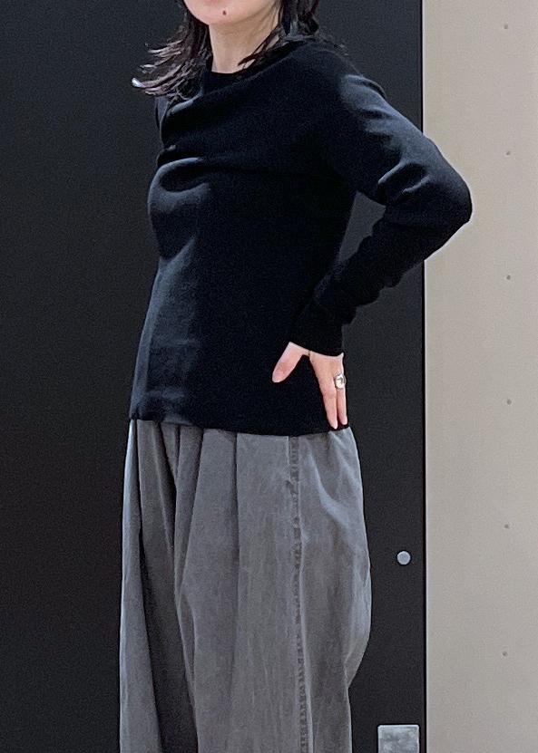 Tシャツも程よくフィット感のある腰骨くらいまでのサイズ。首周りも開きすぎておらず単独でも使いやすいです。