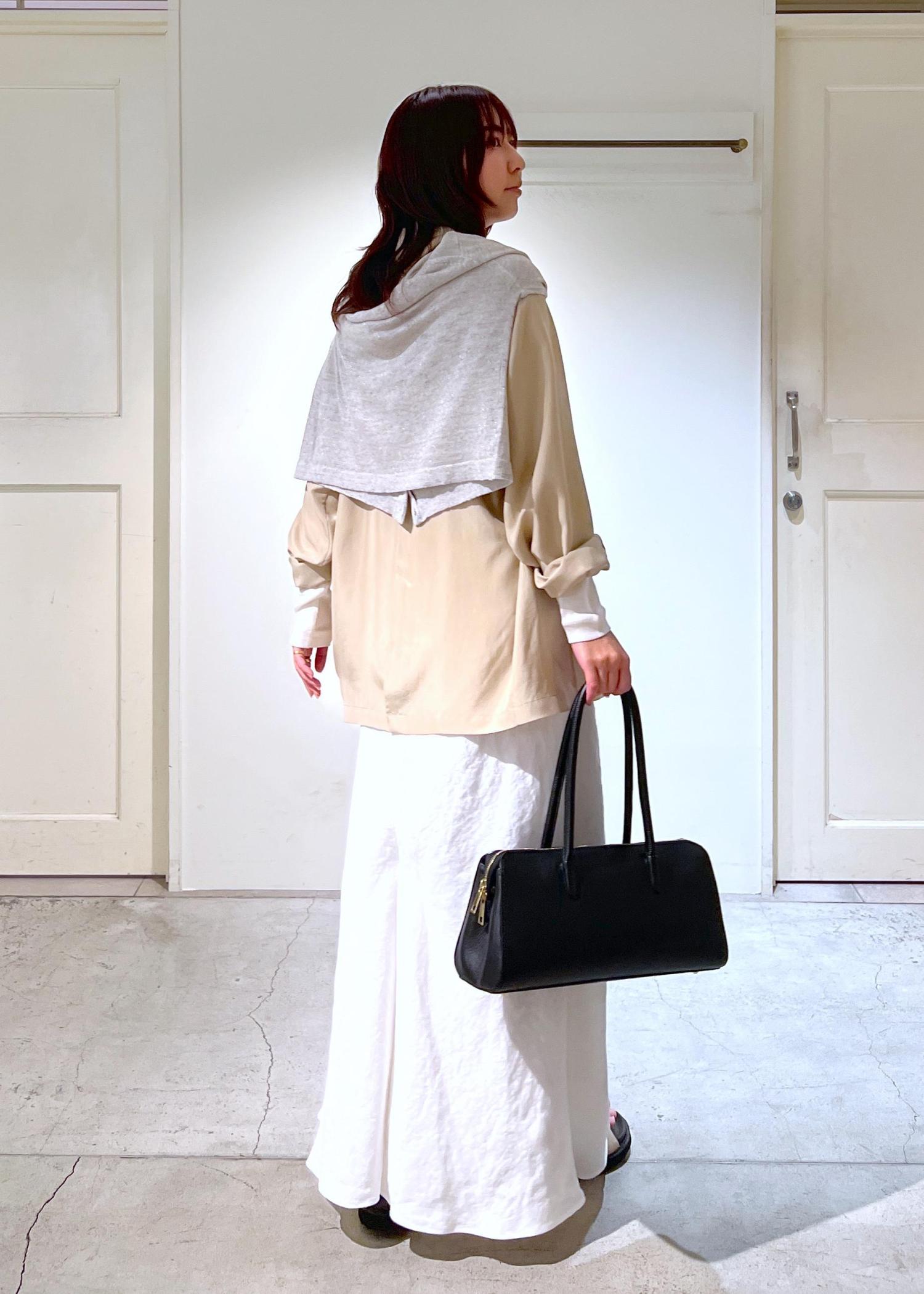 シルクならではの滑らかな質感で、肌触りも優しいです!透け感があるので同系色のインナーと合わせるのもおすすめ。 -