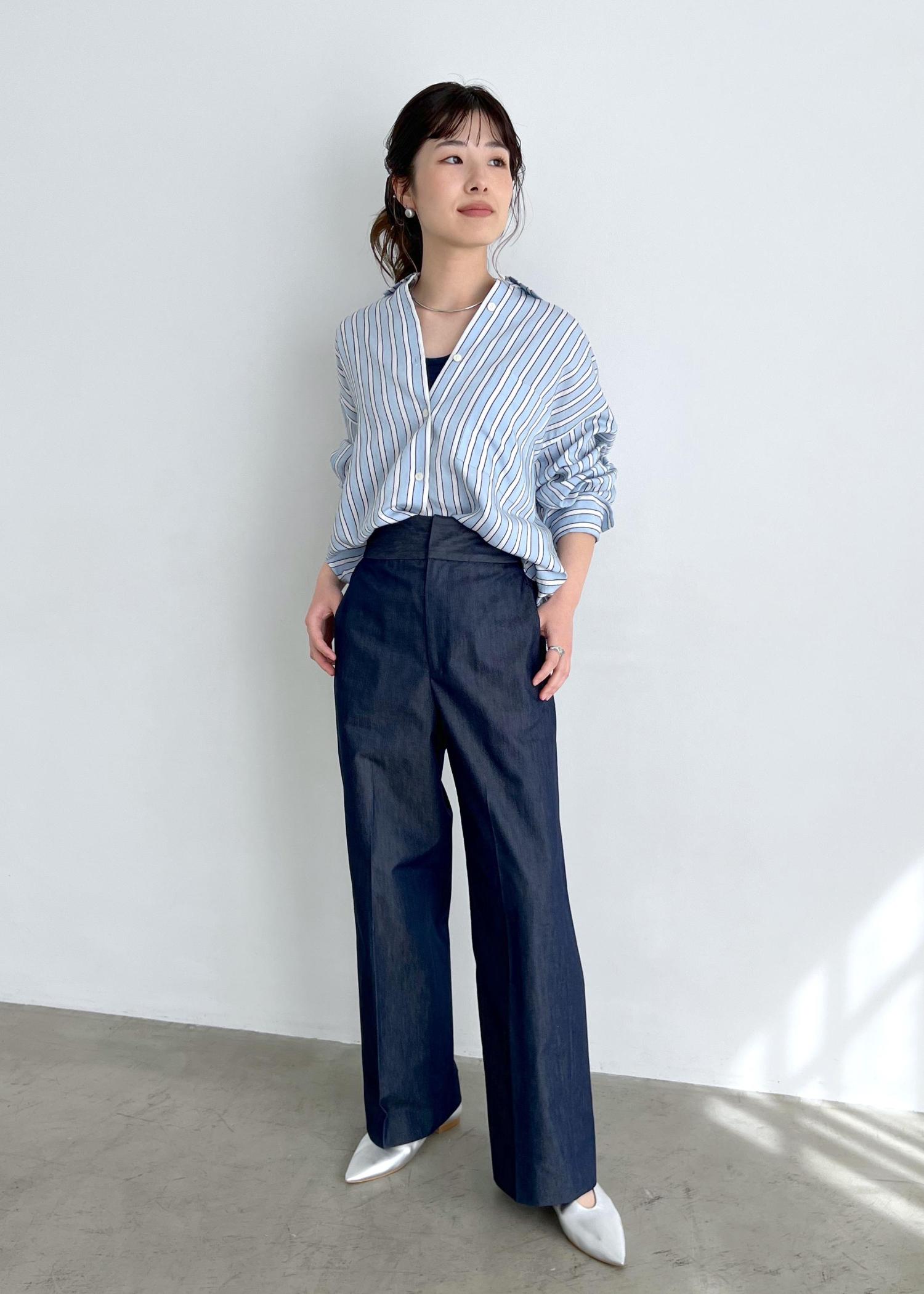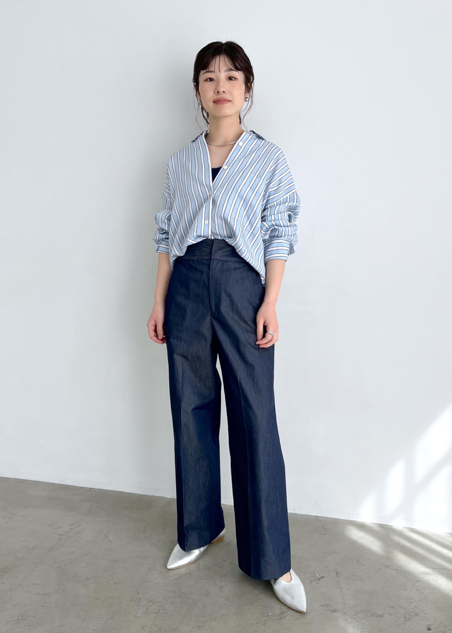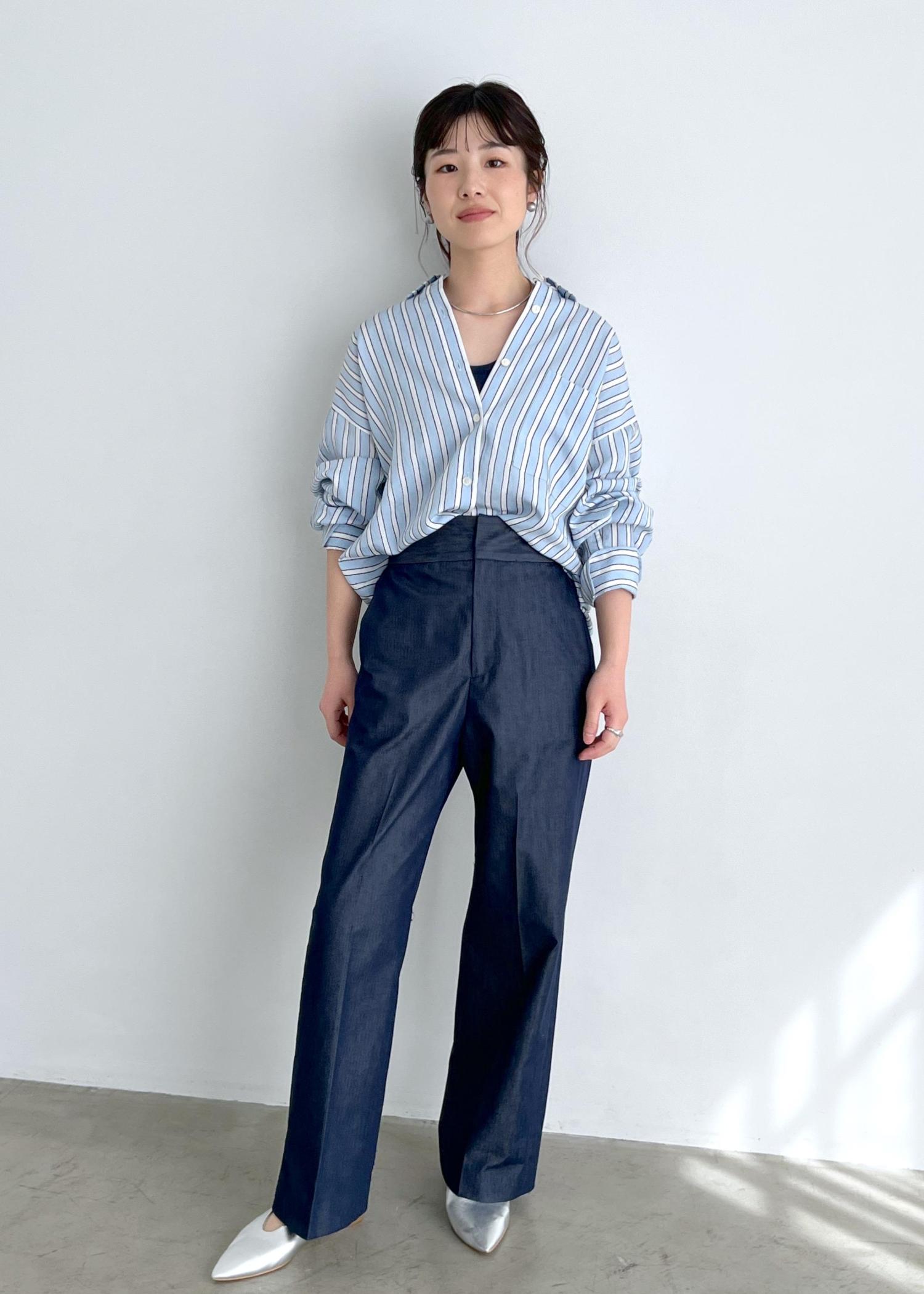 身長156cmでXSサイズ着用。ハイウエストで着用し、すっきりと丈感もちょうどよかったです。