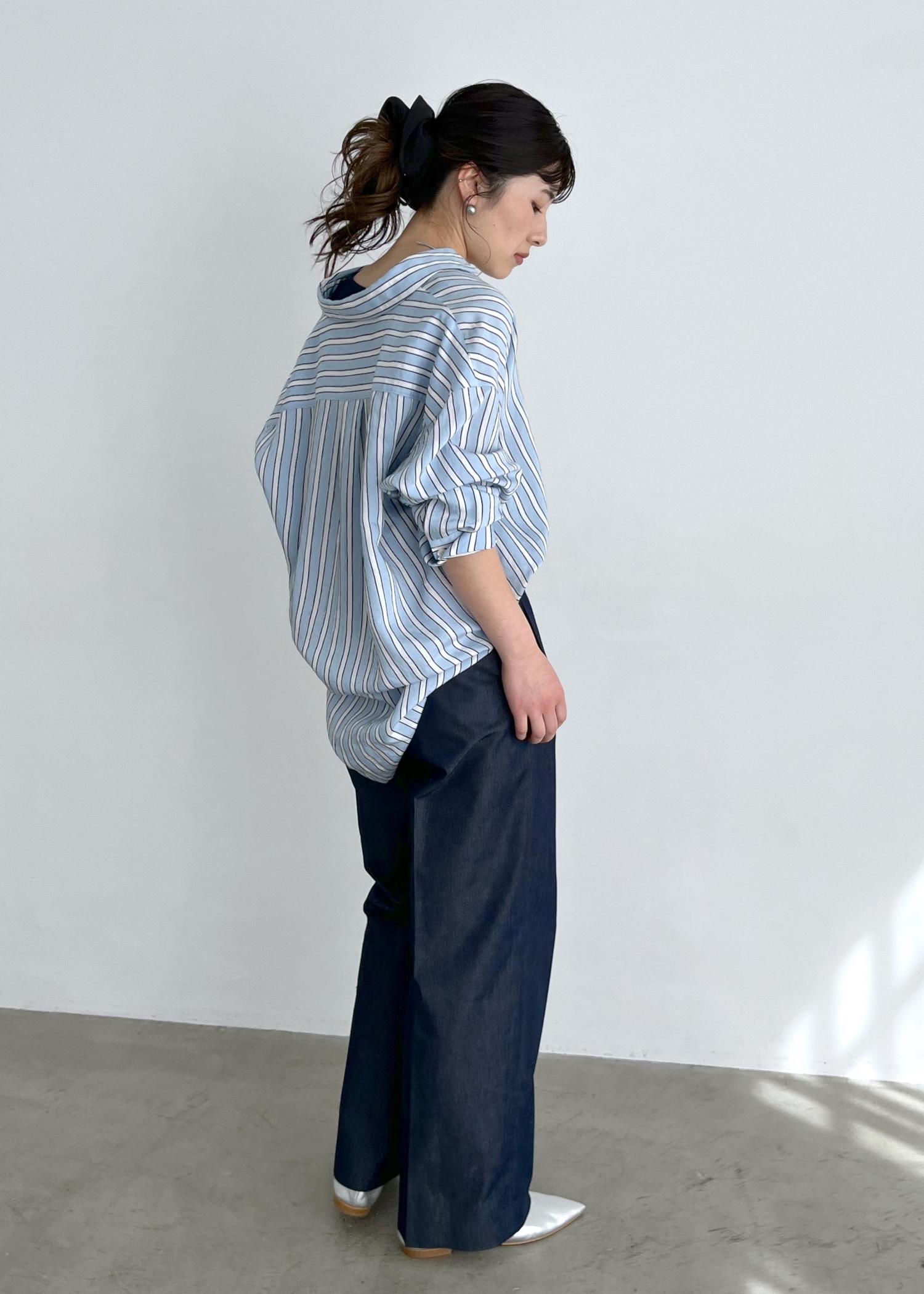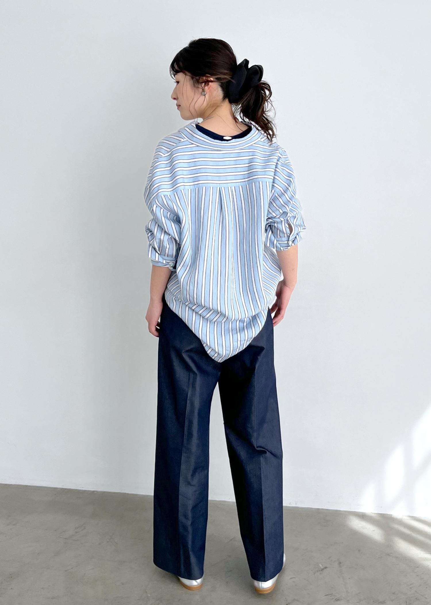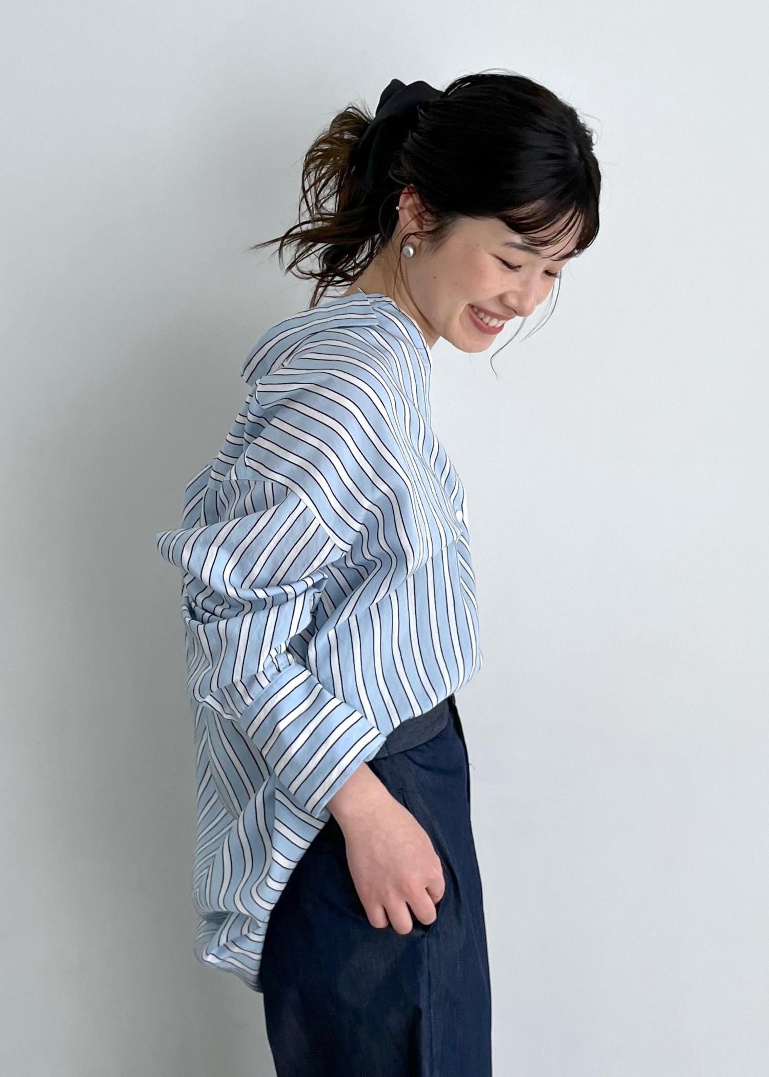 程よくフィットするサイズ感。首元は丸みのあるクルーネックです。