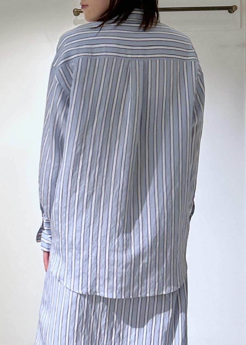 薄手で軽いハリのある素材。着方のアレンジができるのも嬉しいポイント。サラッと羽織れて1枚あると便利なアイテムです。 -