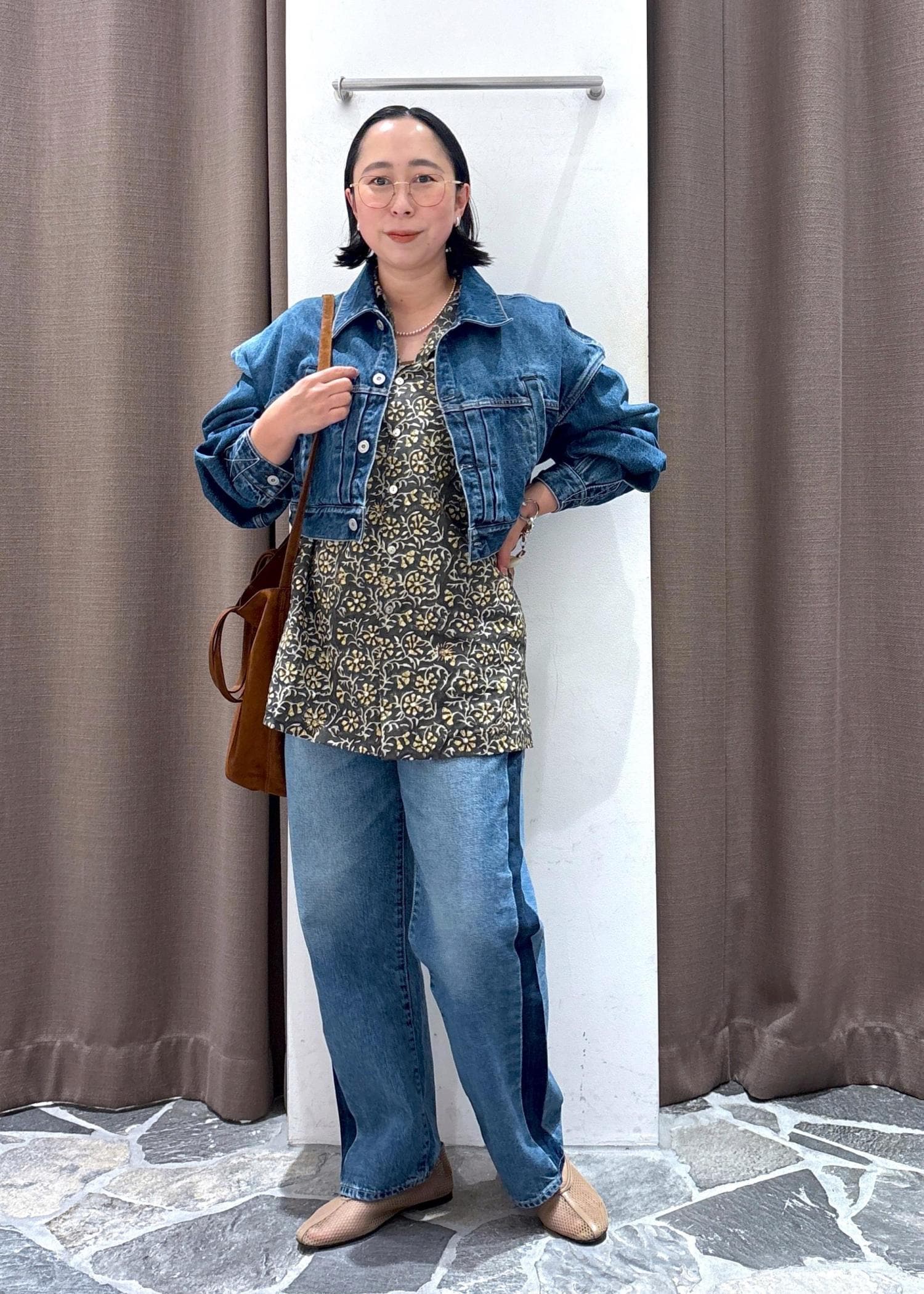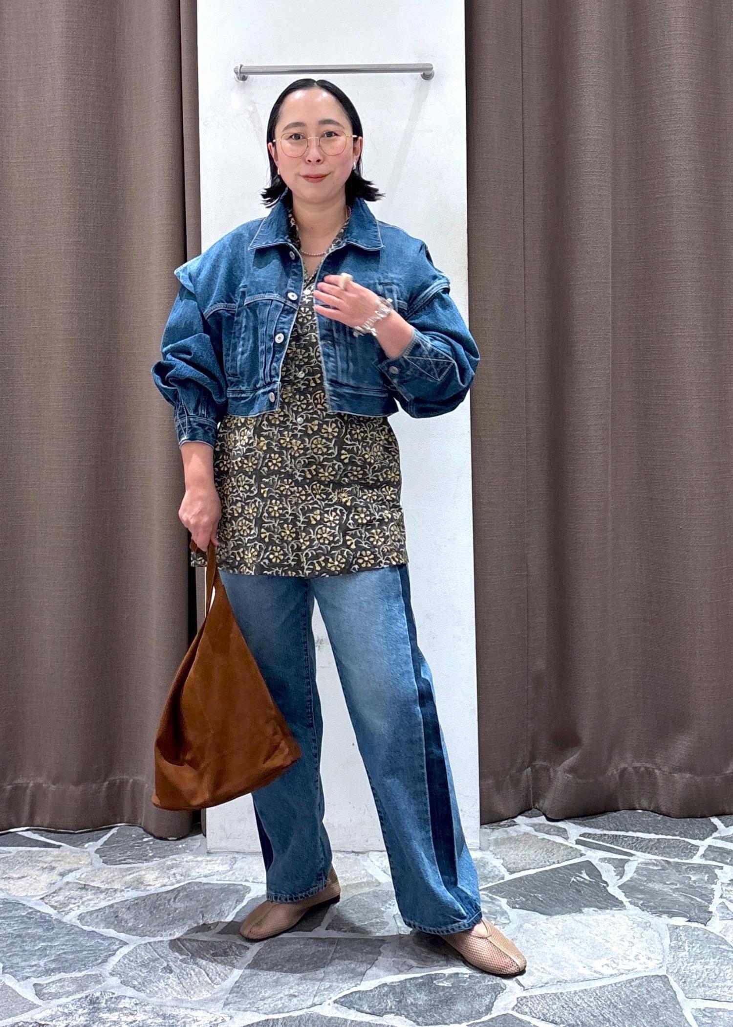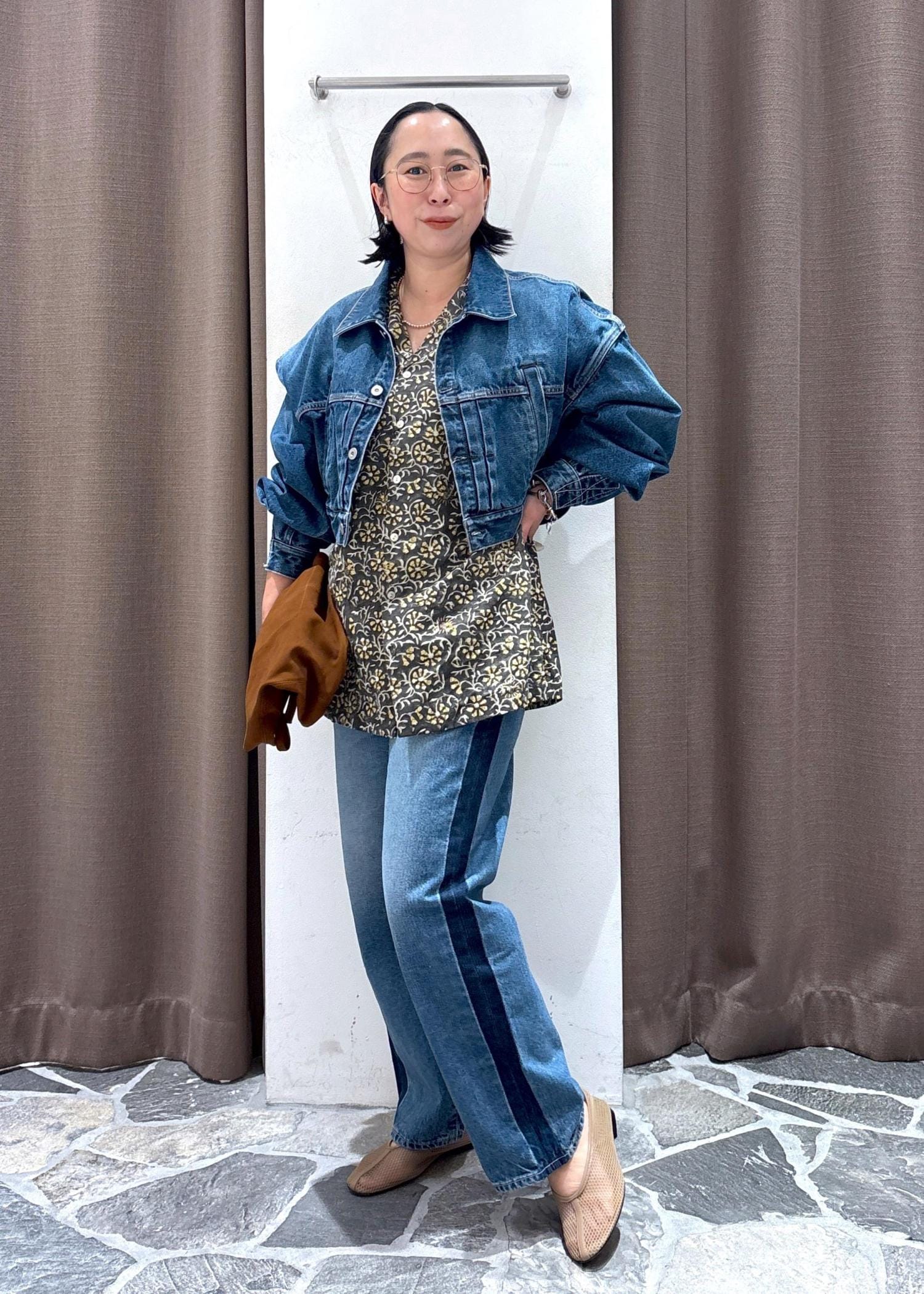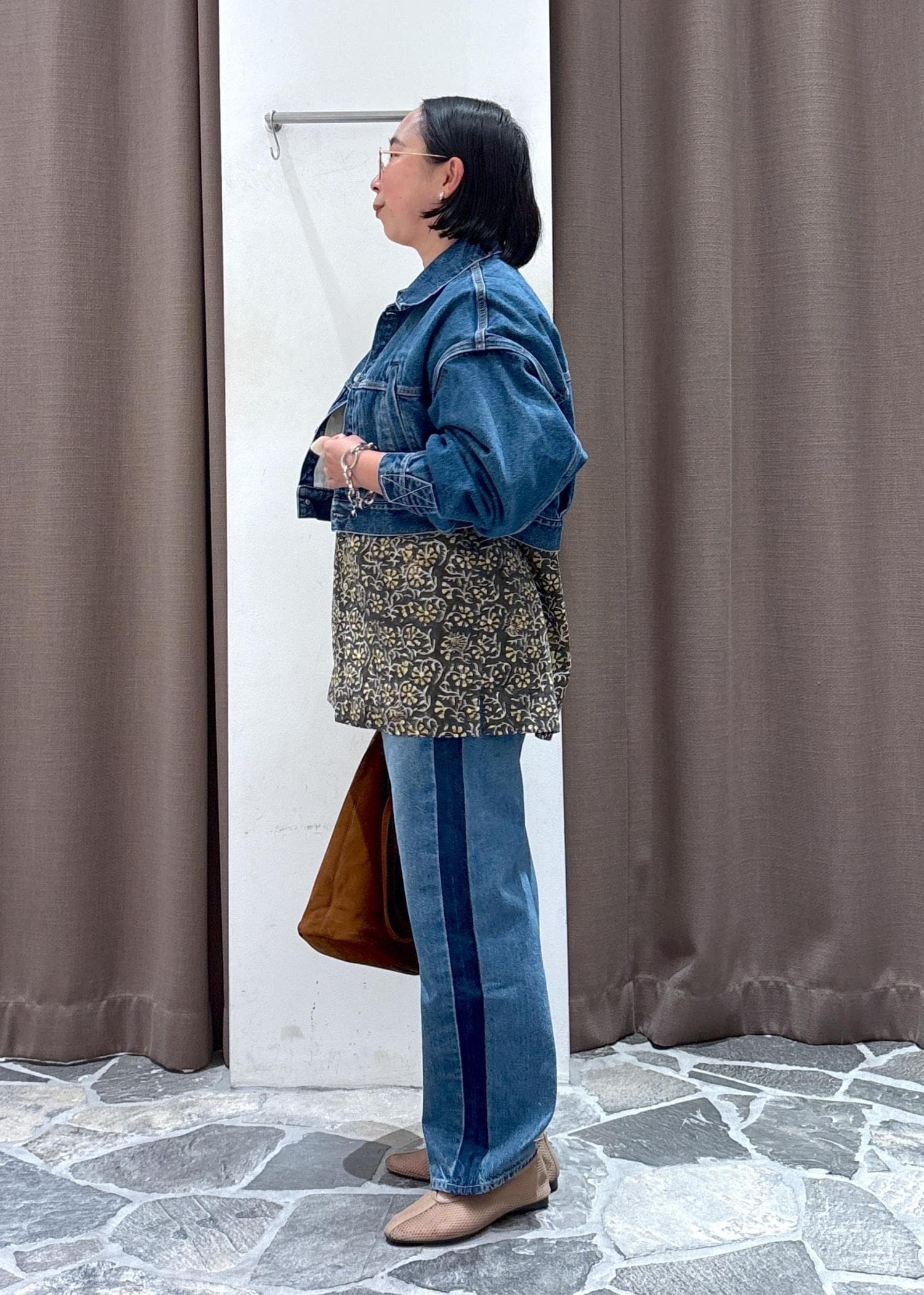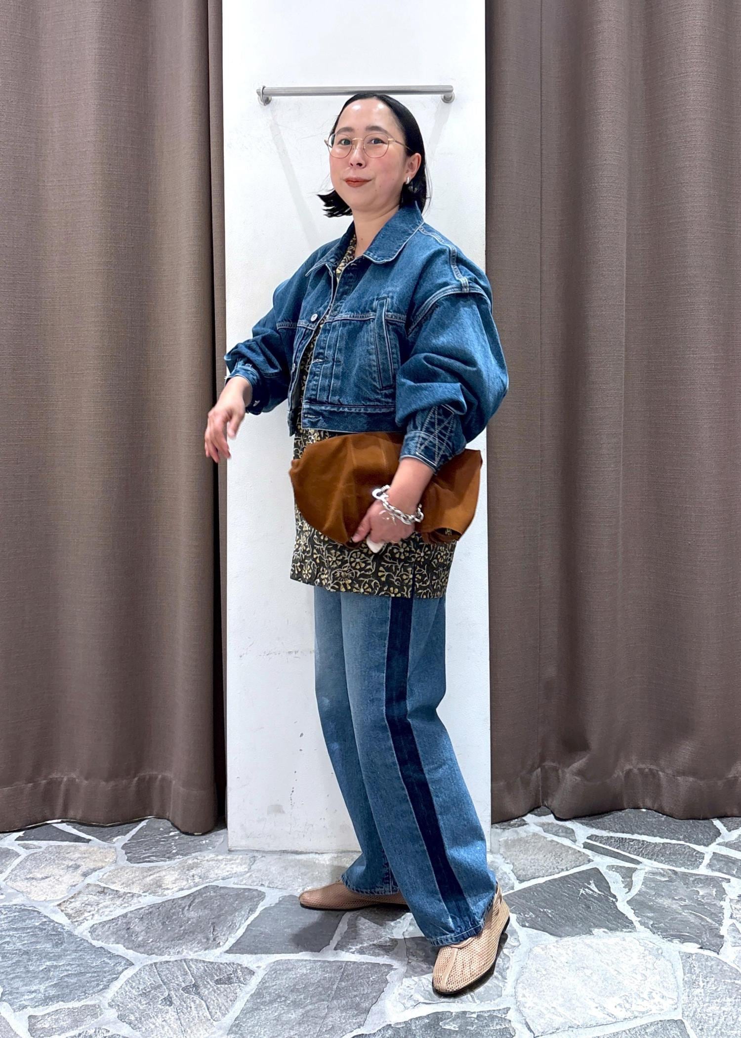 KUROの定番のタックショルダーのデニムジャケットに合わせてセットアップ風にきてみました。