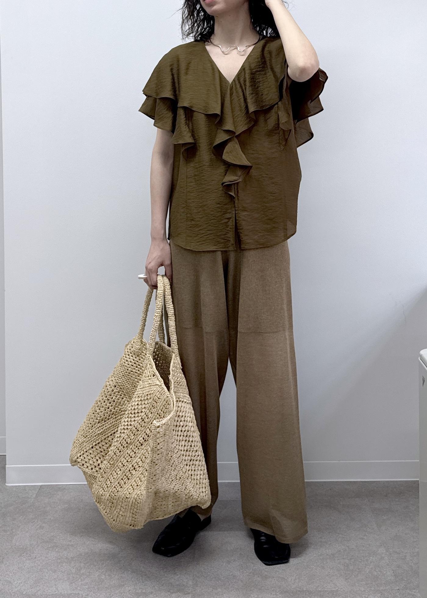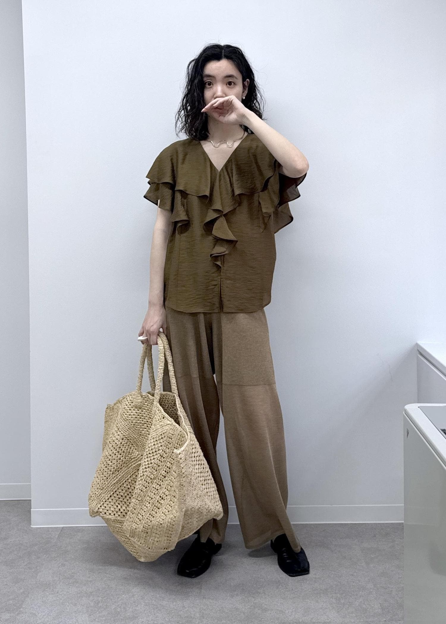 SALON adam et ropéシルクブレンドラッフルカラーブラウスブラウン / F¥9,900レビューブラウン黒は透け感無し。