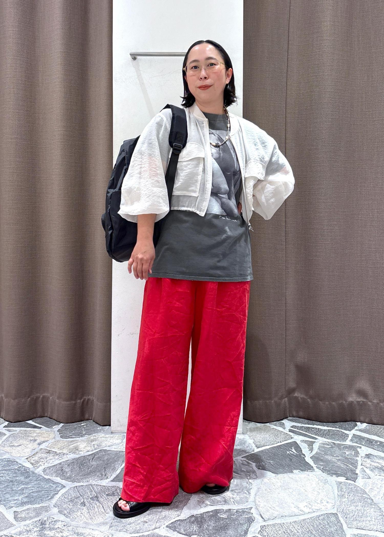 夏が近づくと着たくなるカラーのイージーパンツ。
