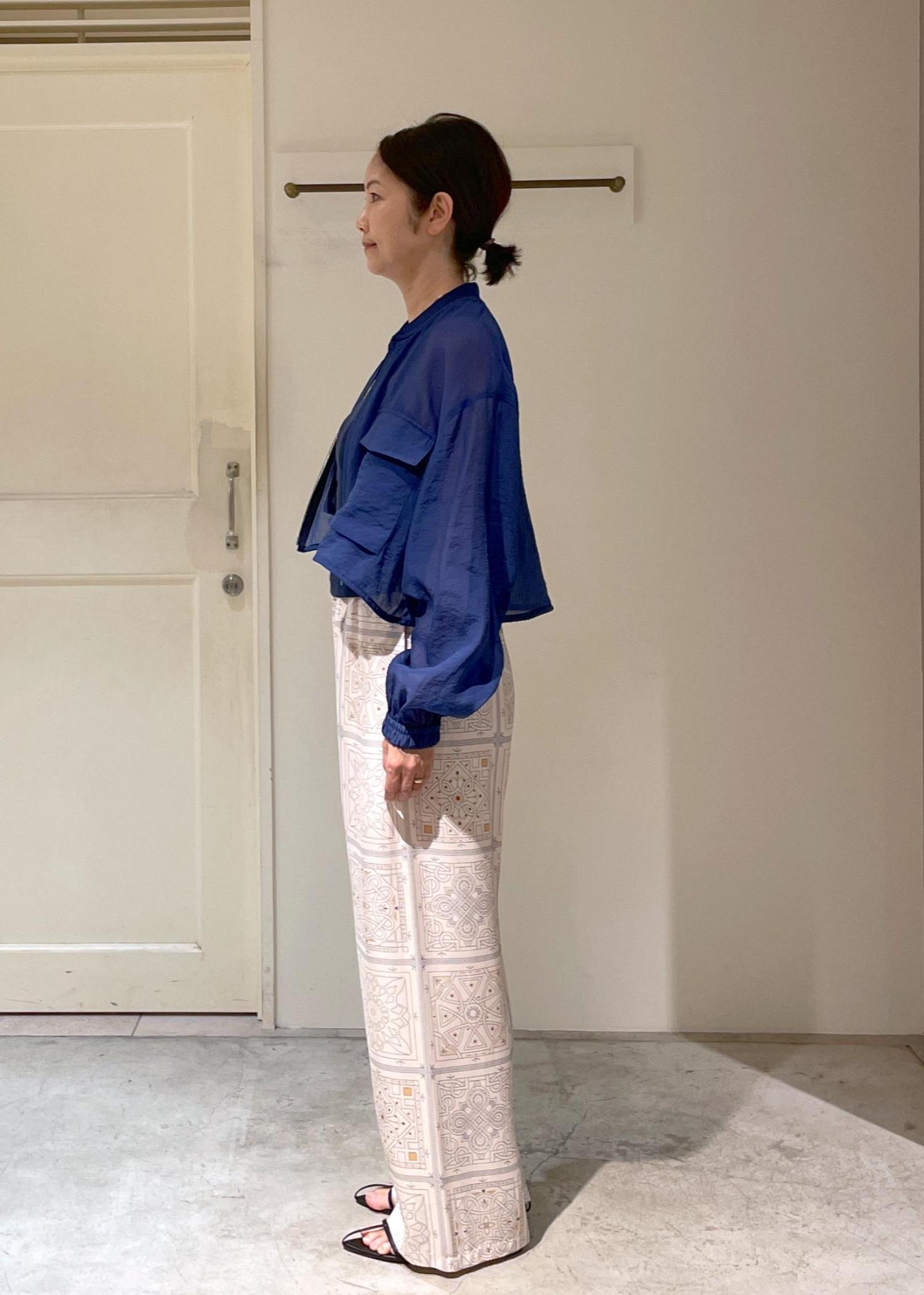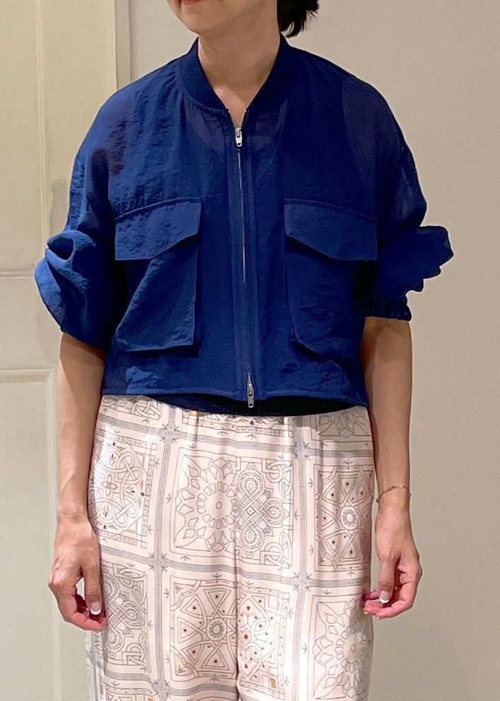 美しいブルーが目を引くシアーブルゾンは、短丈でどんなボトムスとも相性抜群!涼しく紫外線から肌を守ります。