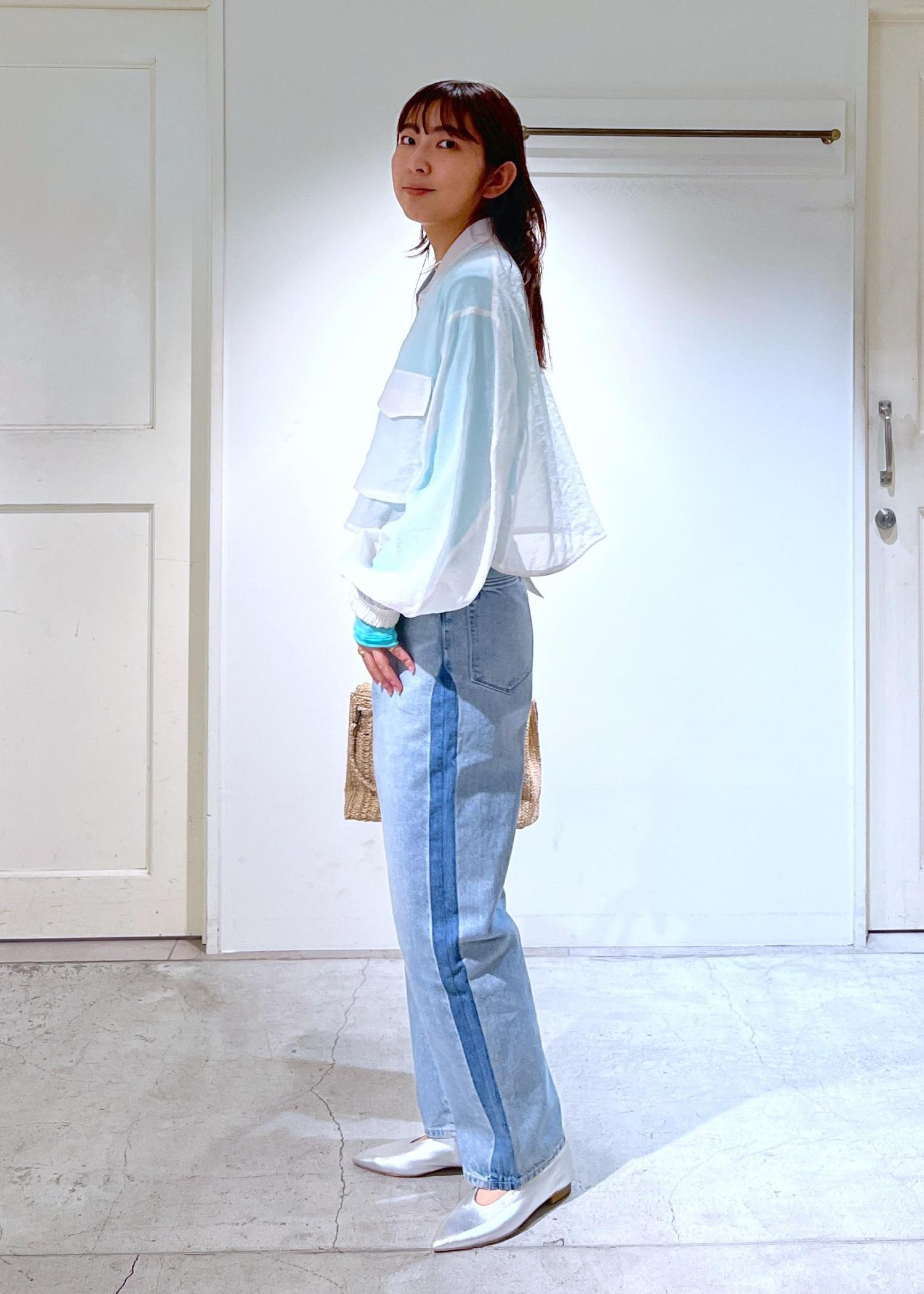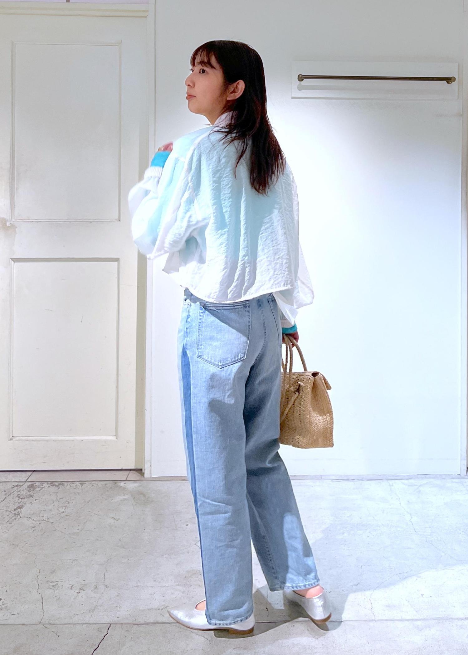 身幅はゆったり、袖もボリュームがありゴムがしっかり聞いているので、捲るとバルーンスリーブのようなシルエットに。着丈は腰骨あたりまで。