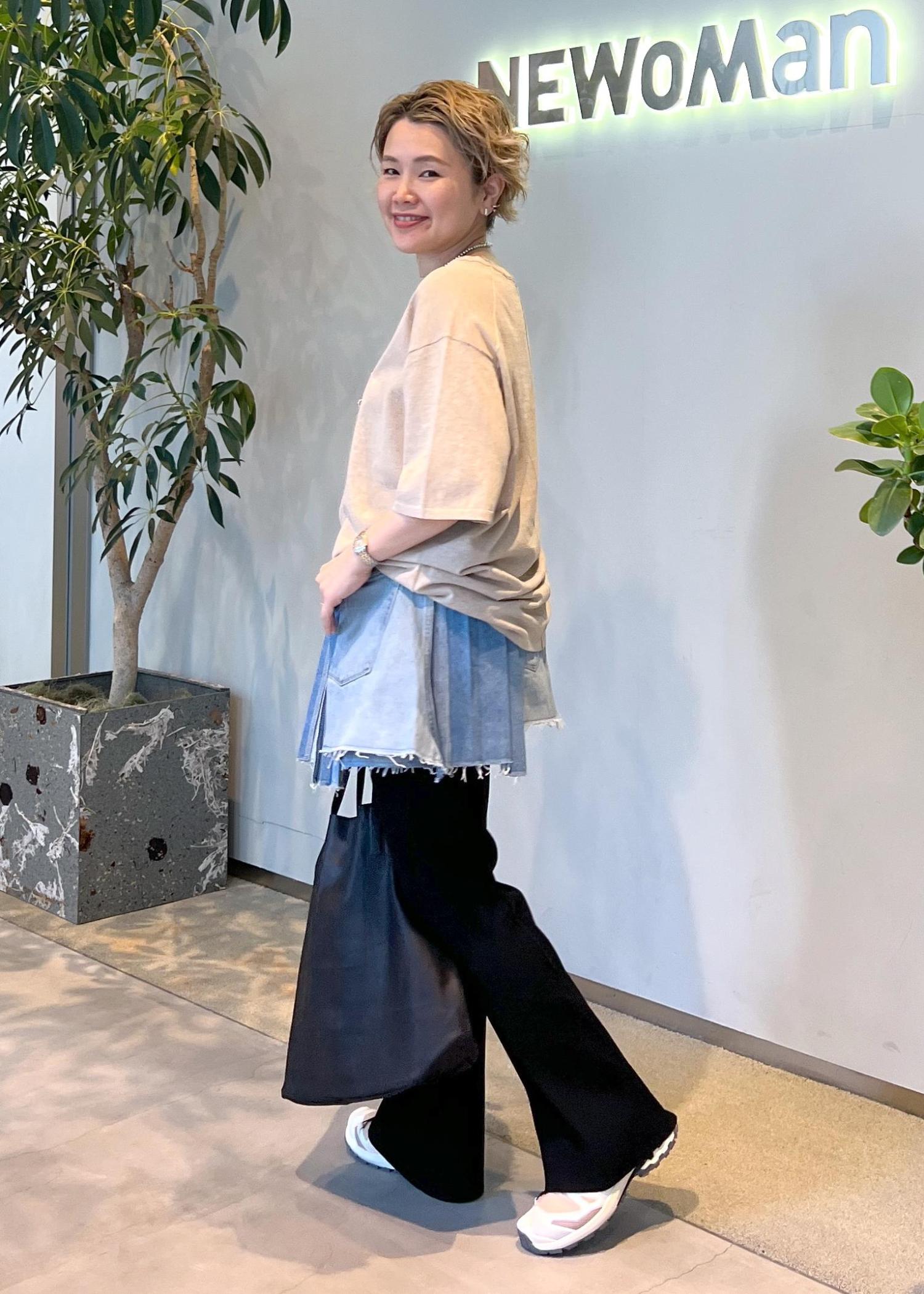 トップスはSALONの『ハイツイストコットンニットTシャツ』