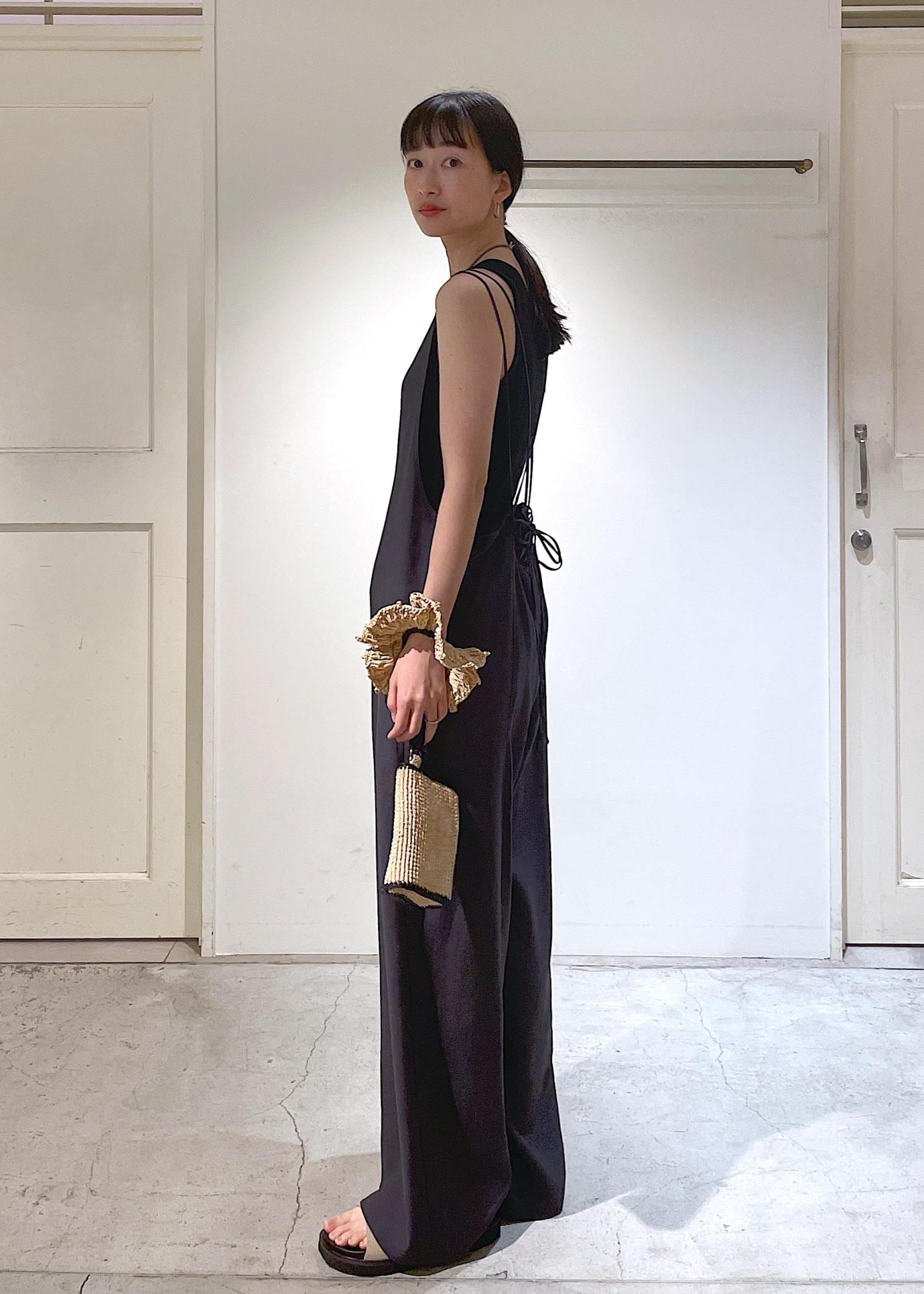 手首を通してアクセサリーのように持てるバッグです。シンプルなスタイリングのポイントになります。リップ、カードケースが入るかなというサイズ感。ミニお財布なら入りそうです。