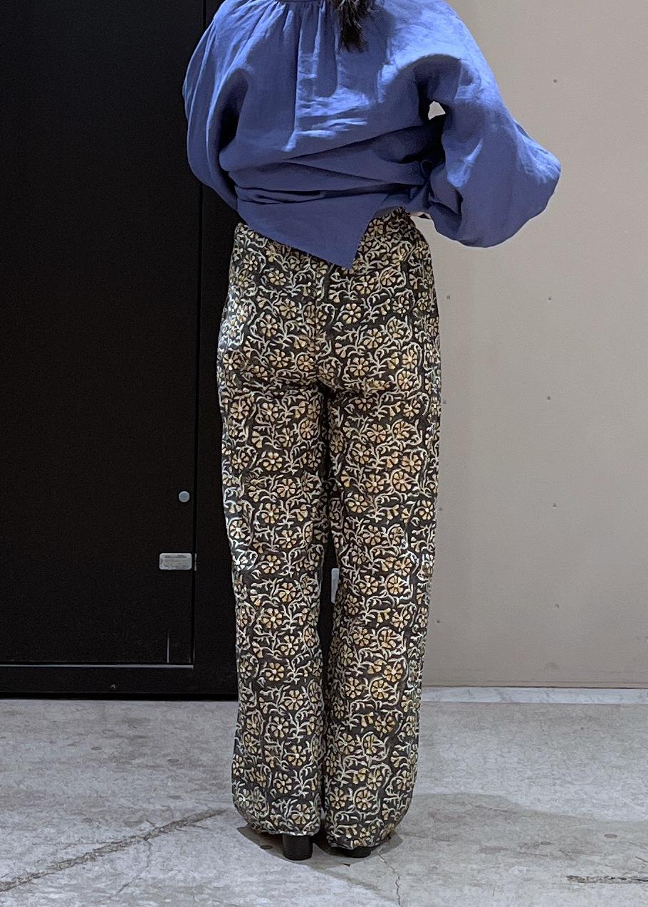 シックな柄のパンツをレイヤードすると
