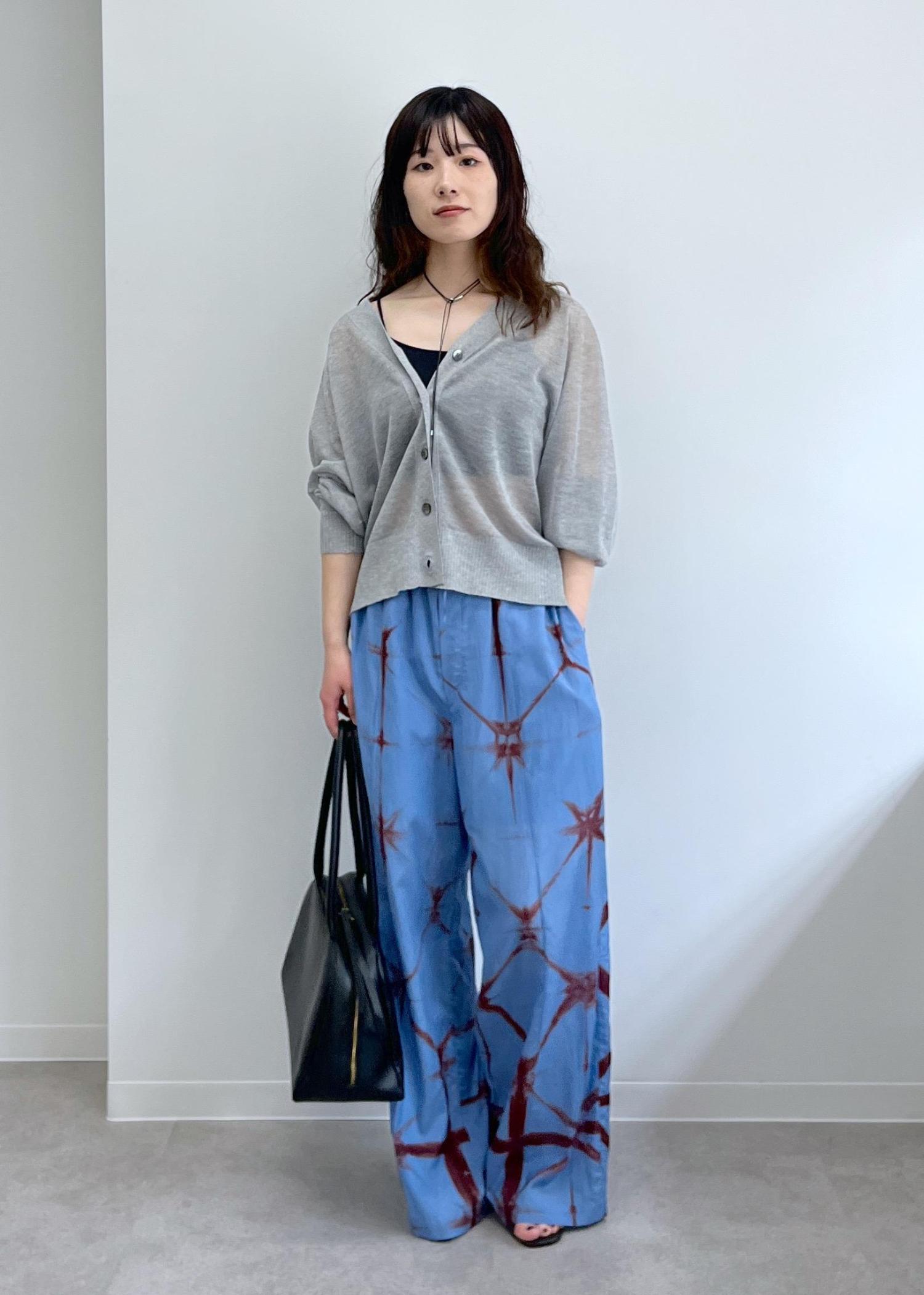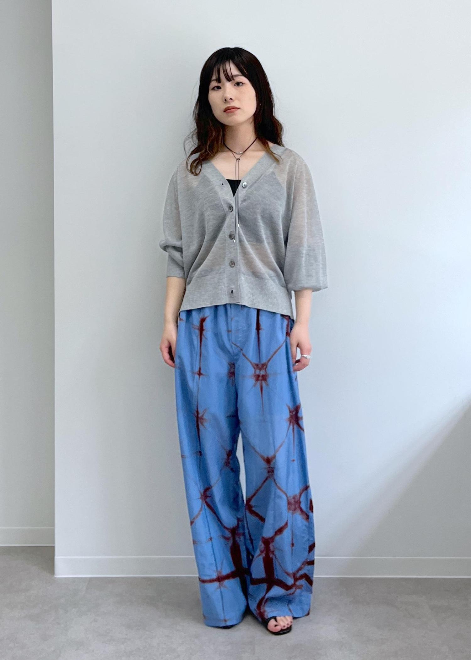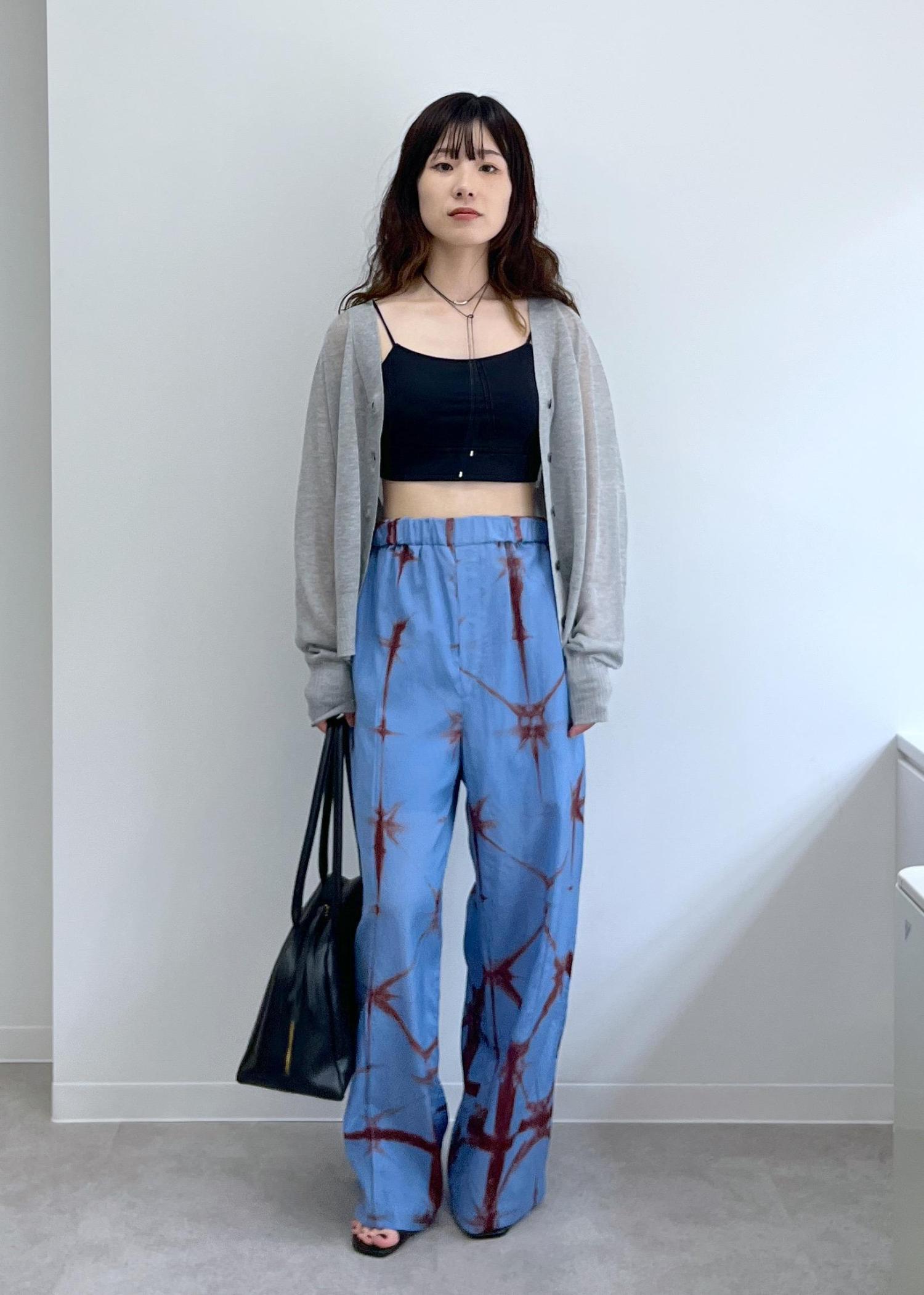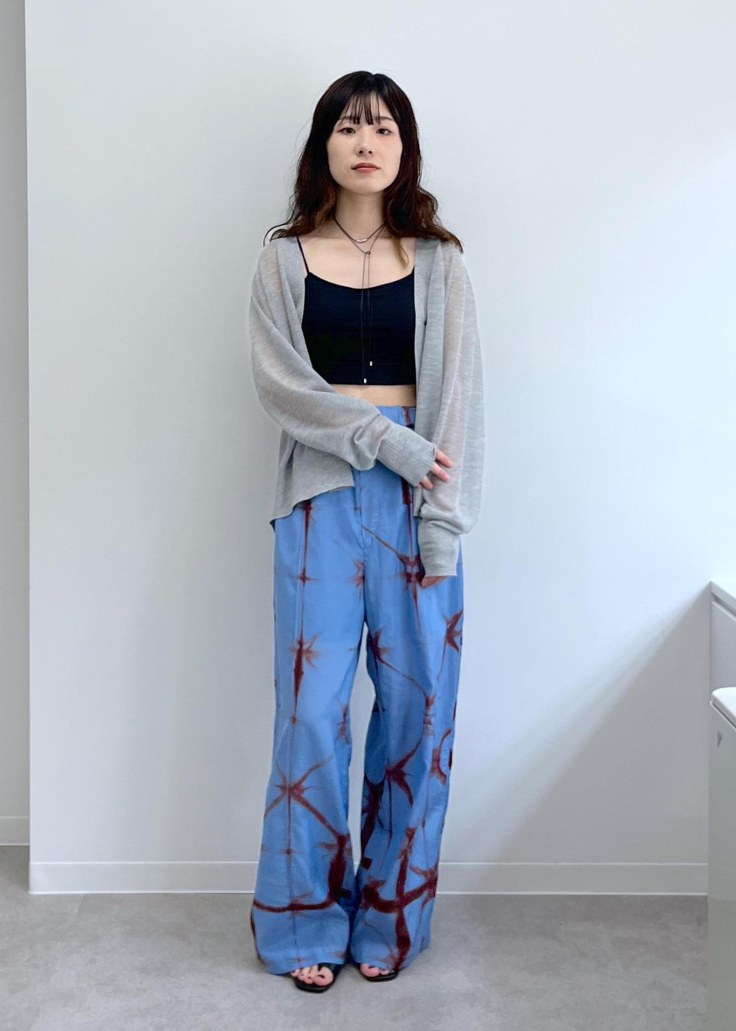 さらっとした肌触りで、艶感ある表面感です。タイダイ染めの存在感あるデザインがリゾート感もあり夏にぴったりです!Tシャツやスカーフを合わせてセットで着ても可愛いです! -