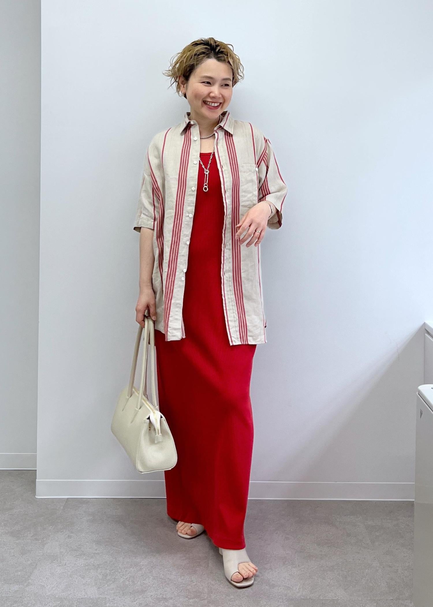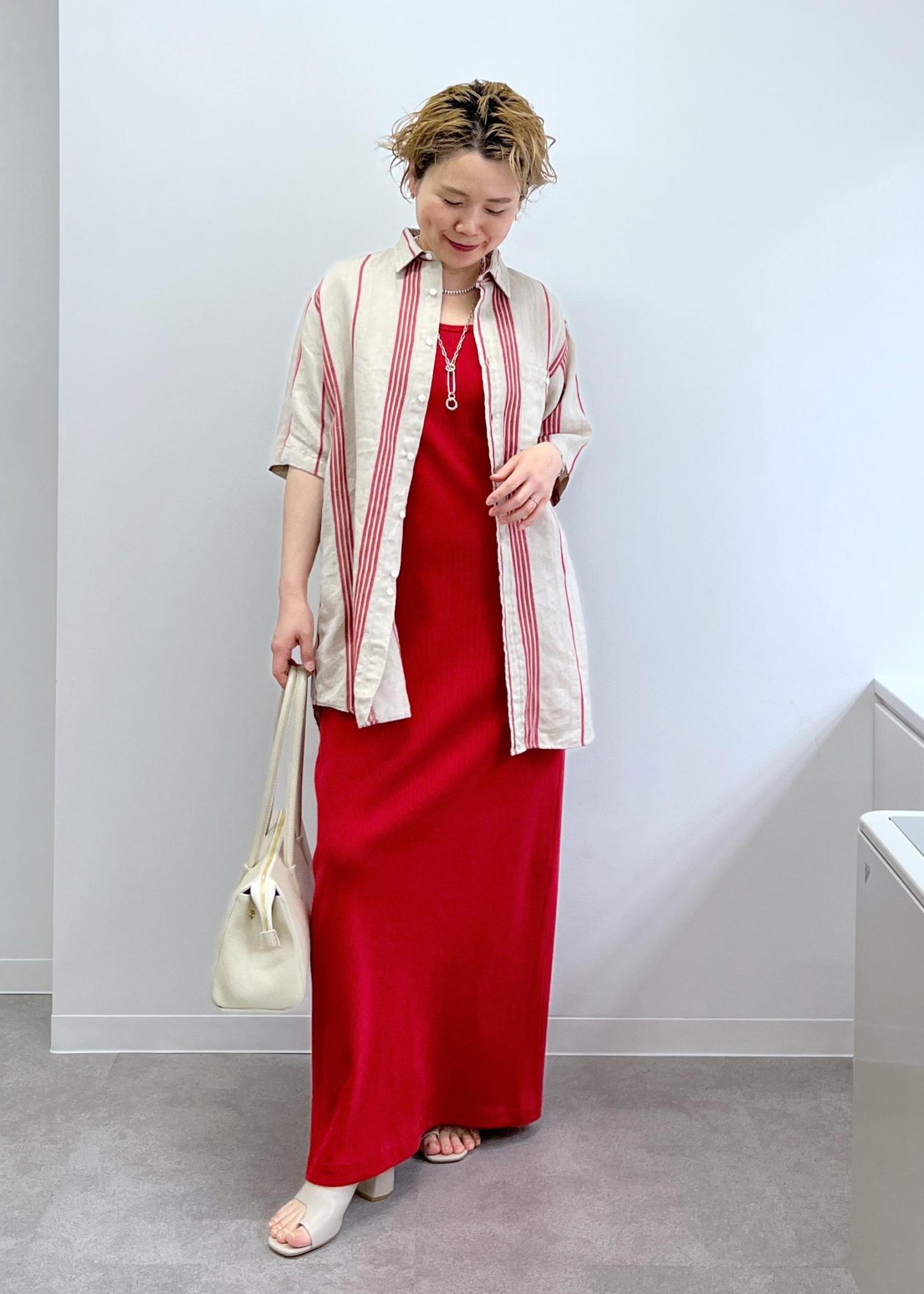 SALON adam et ropé[UVケア・洗える]プリマベールファームリーリブワンピースレッド系 / F¥14,630レビュー程よくフィット感のあるスッキリしたIラインのリブワンピース。
