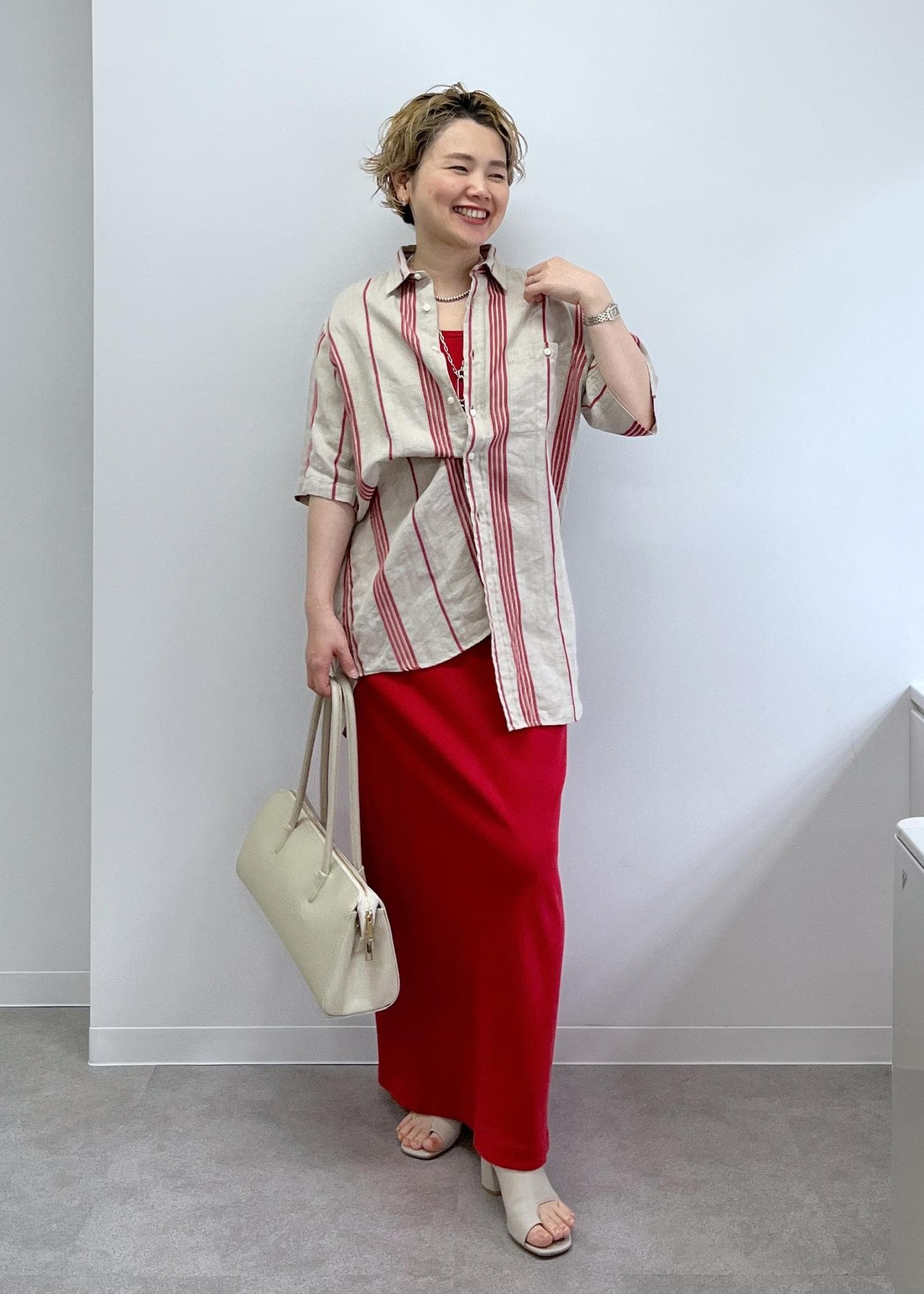 アウトレットSALON adam et ropé【INDIVIDUALIZED SHIRTS(インディビジュアライズドシャツ)for SALON】SHORT SLEEVE SHIRTレッド系 / F¥21,450レビュー身幅や腕まわりは程よくゆとりがありますが、大き過ぎないサイズ感。着丈が長めで縦長のラインがヴィンテージライクなシャツ。