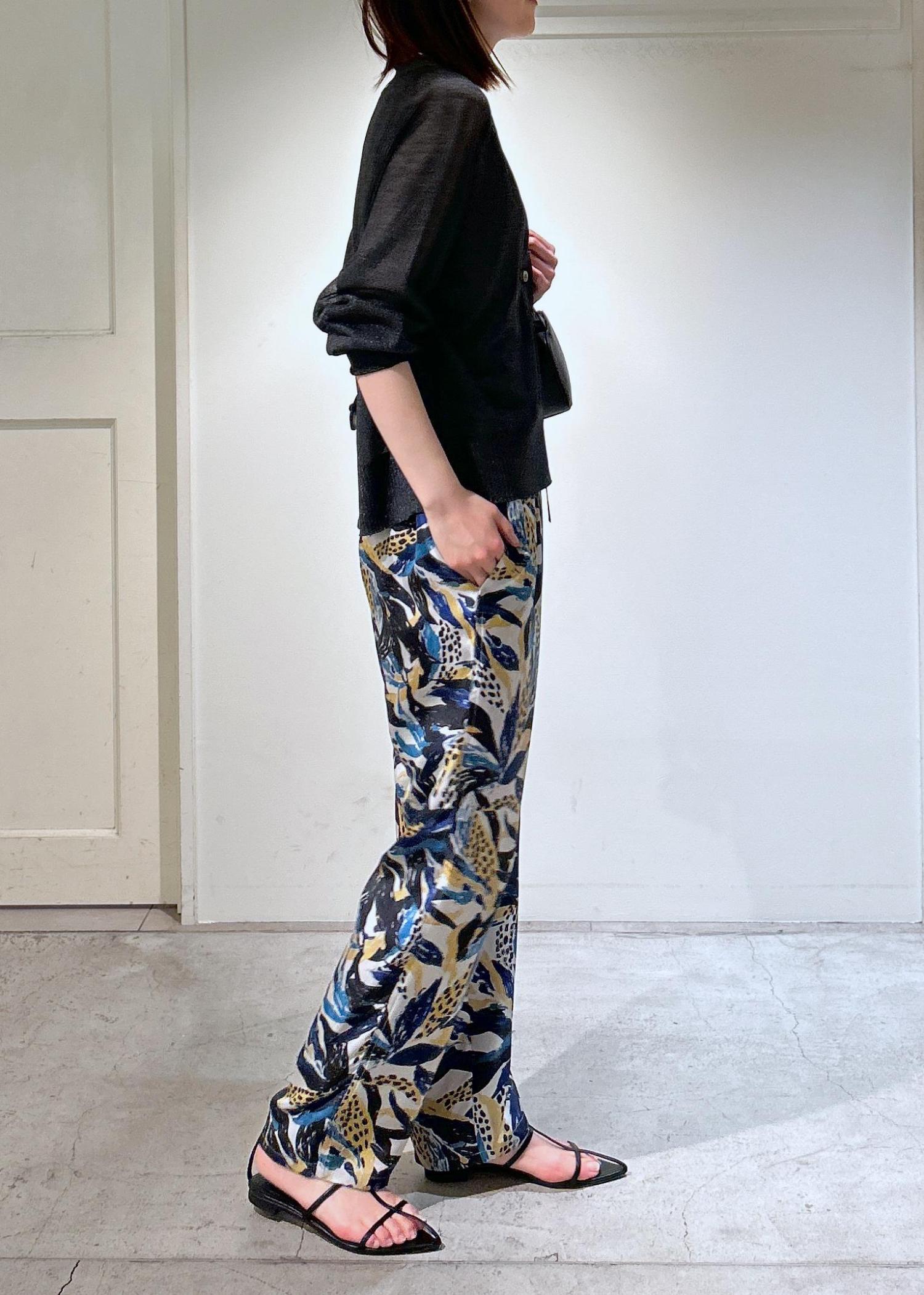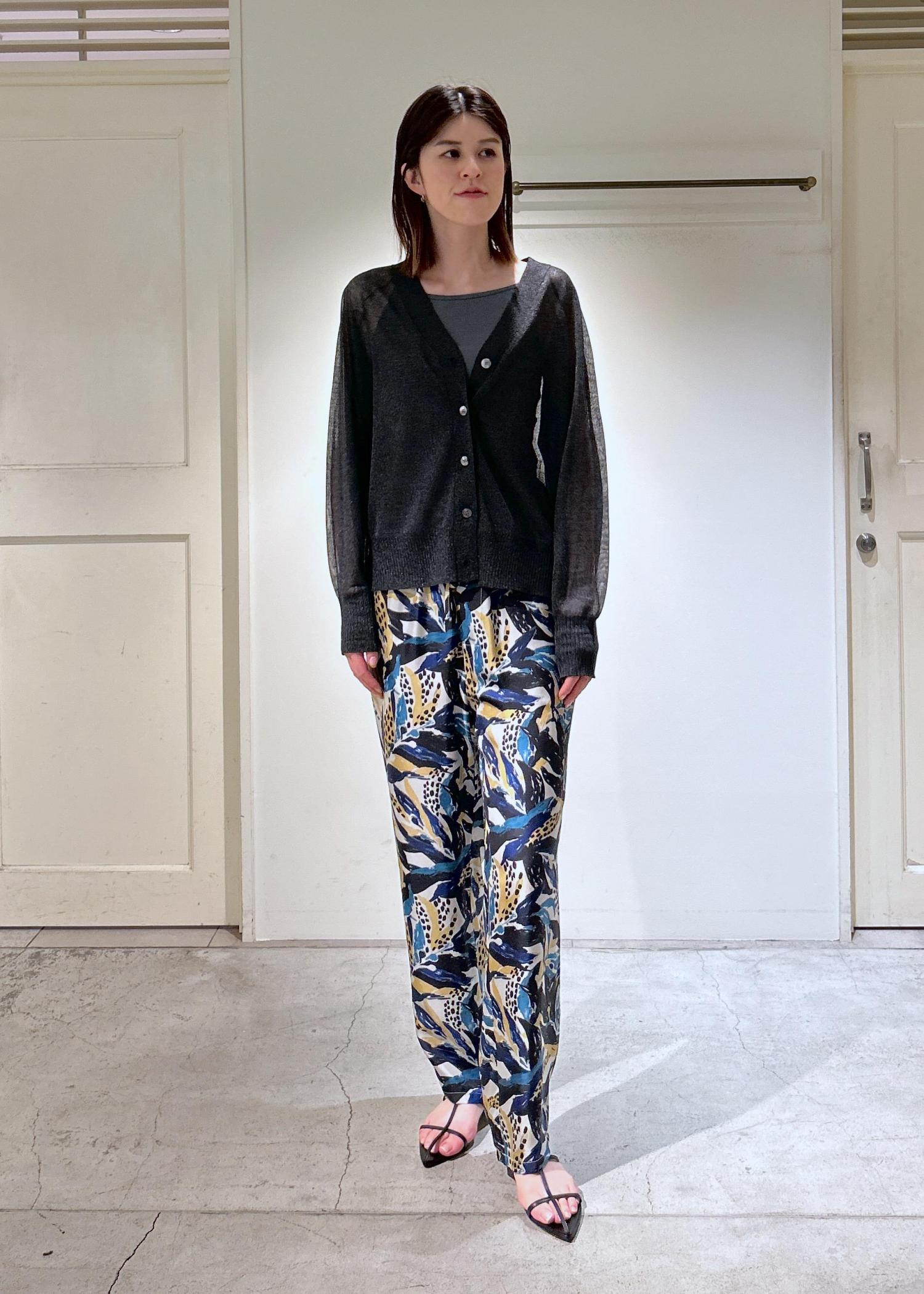 BANANATIMEの柄パンツと合わせて、夏先取りのリラックススタイルでまとめてみました。旅行やリゾートの羽織としてもオススメです。