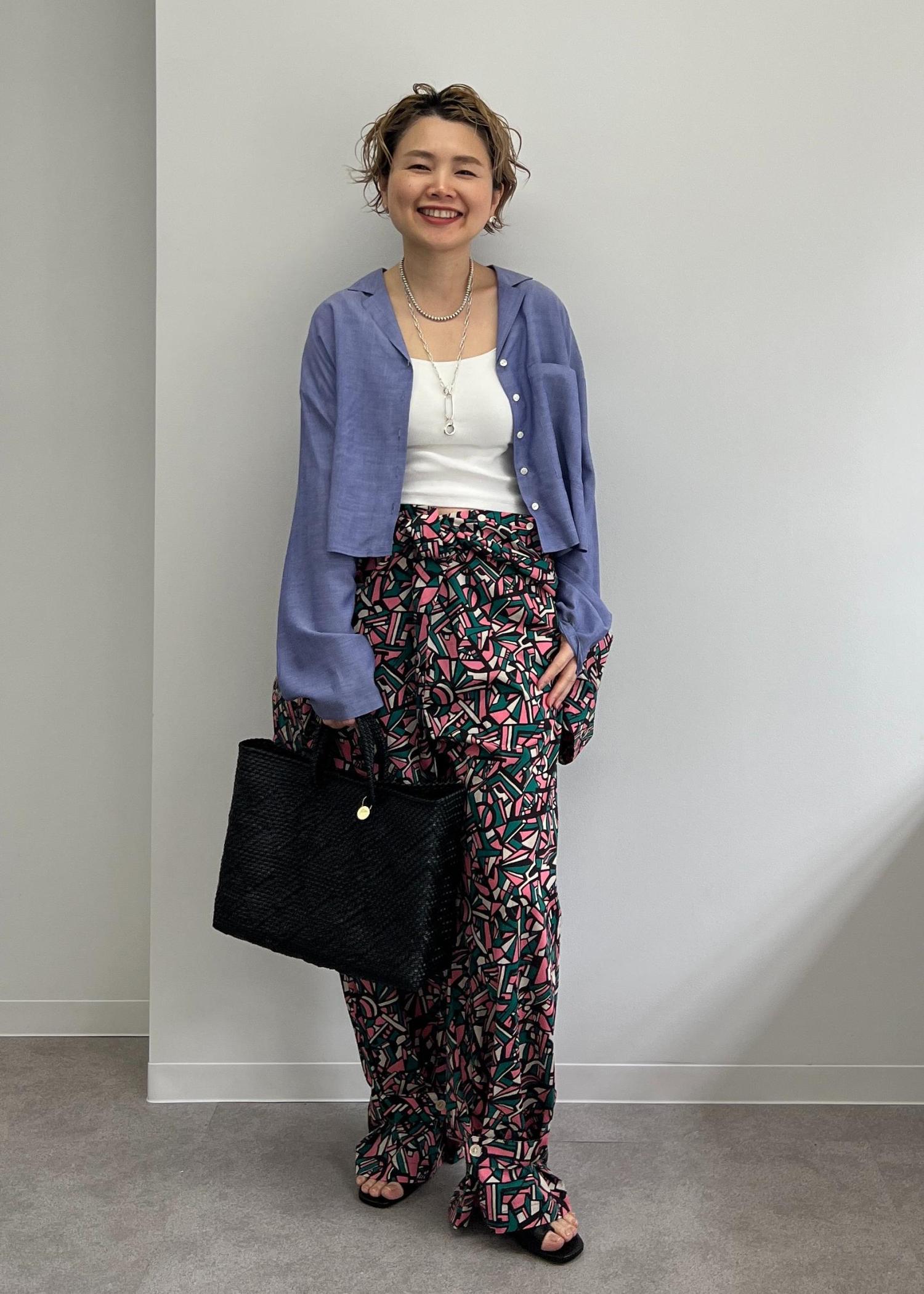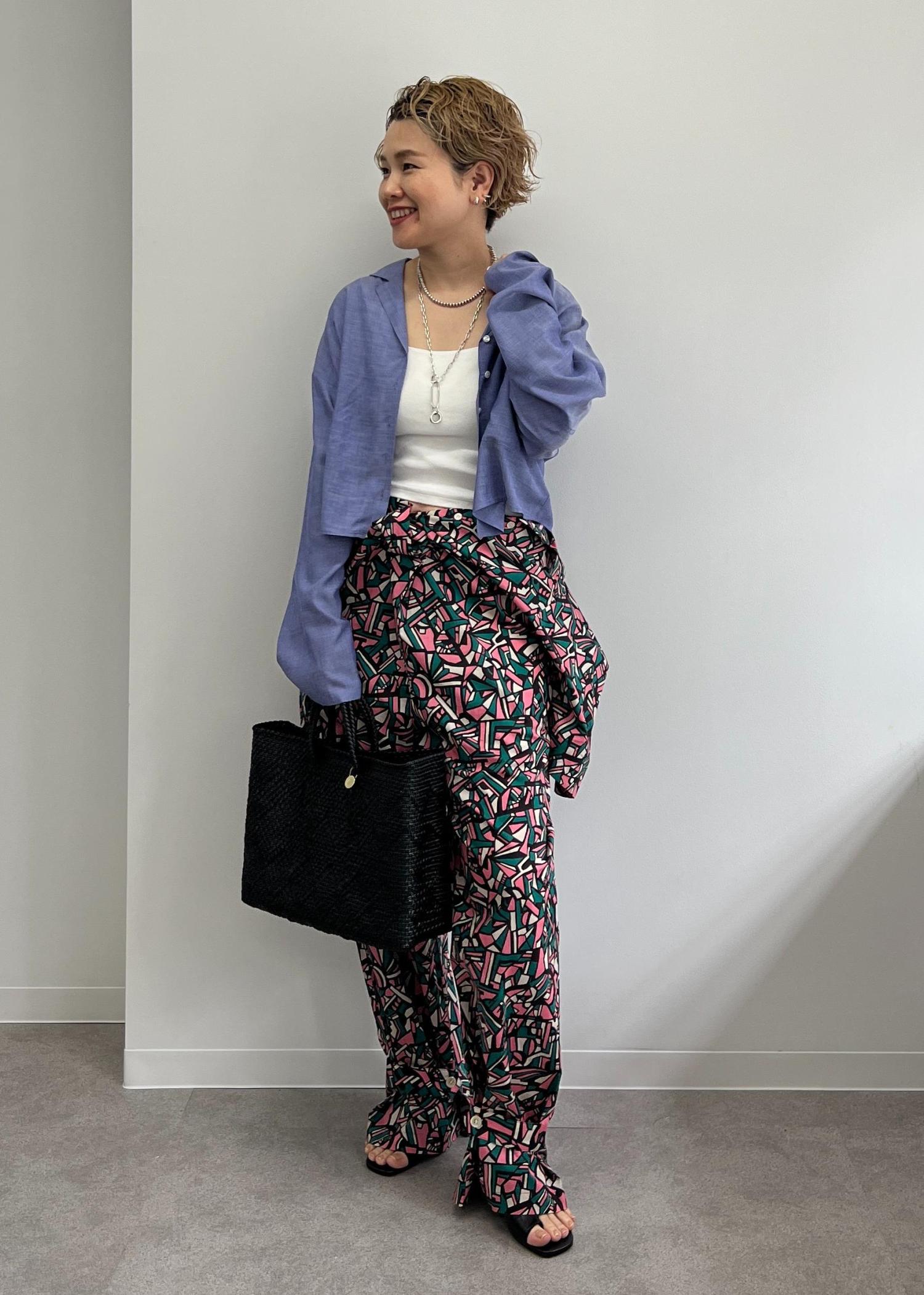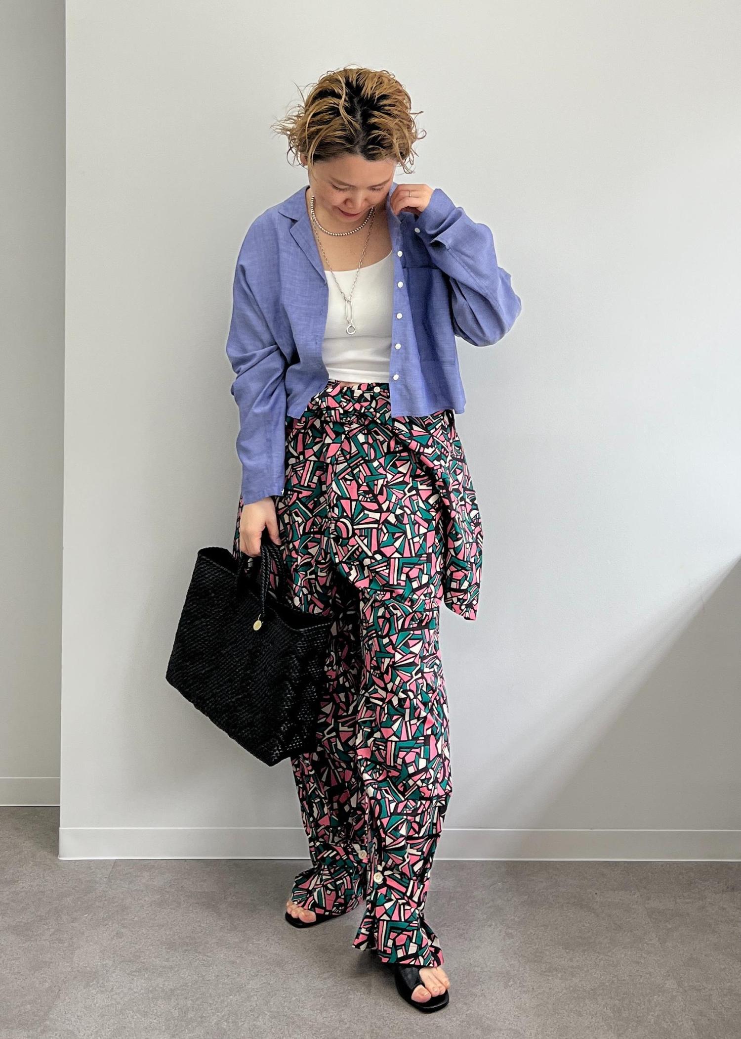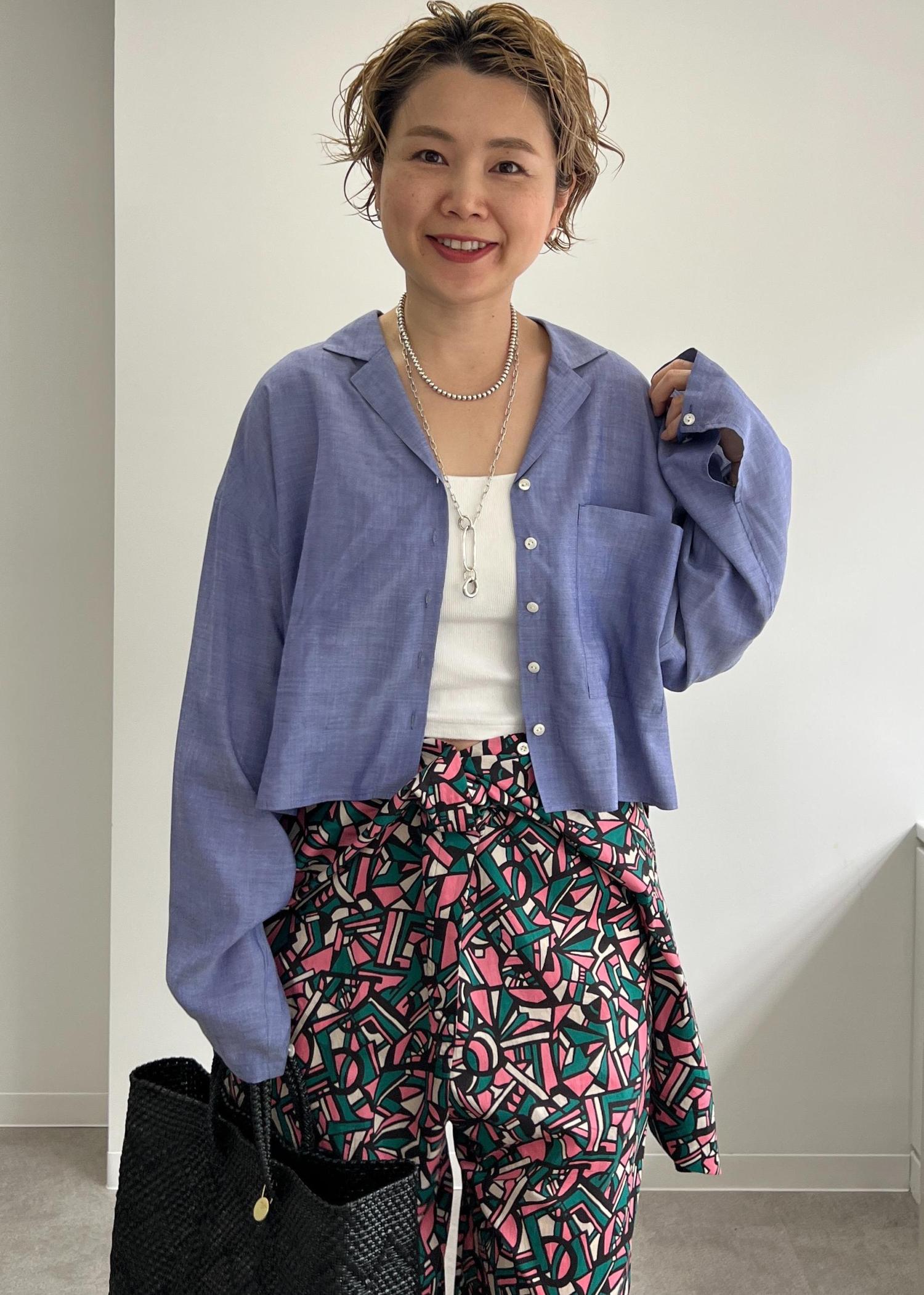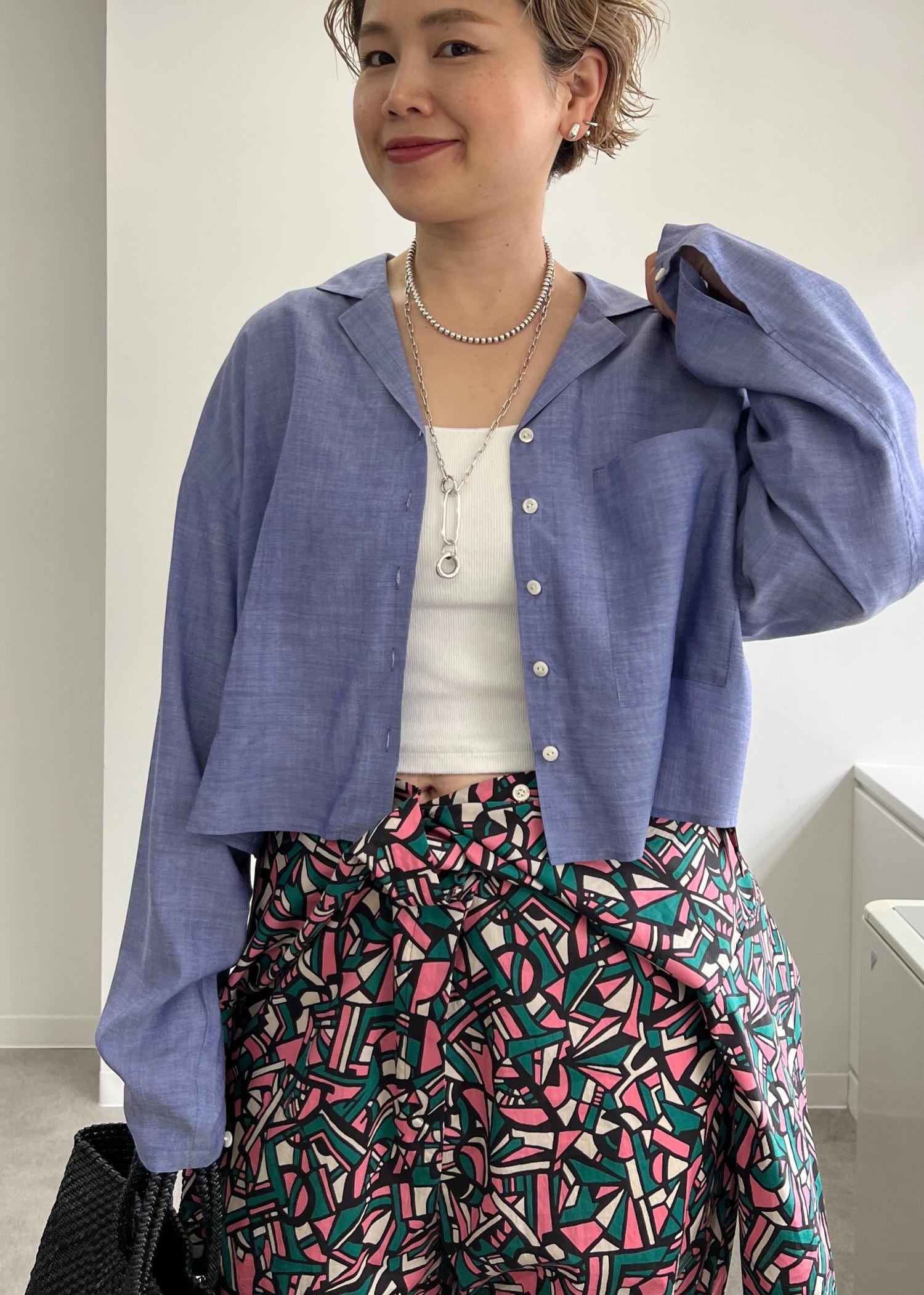 着丈は程よいクロップド丈。小柄でもバランスが取りやすく、ワイドパンツやロングスカート合わせもオススメです。