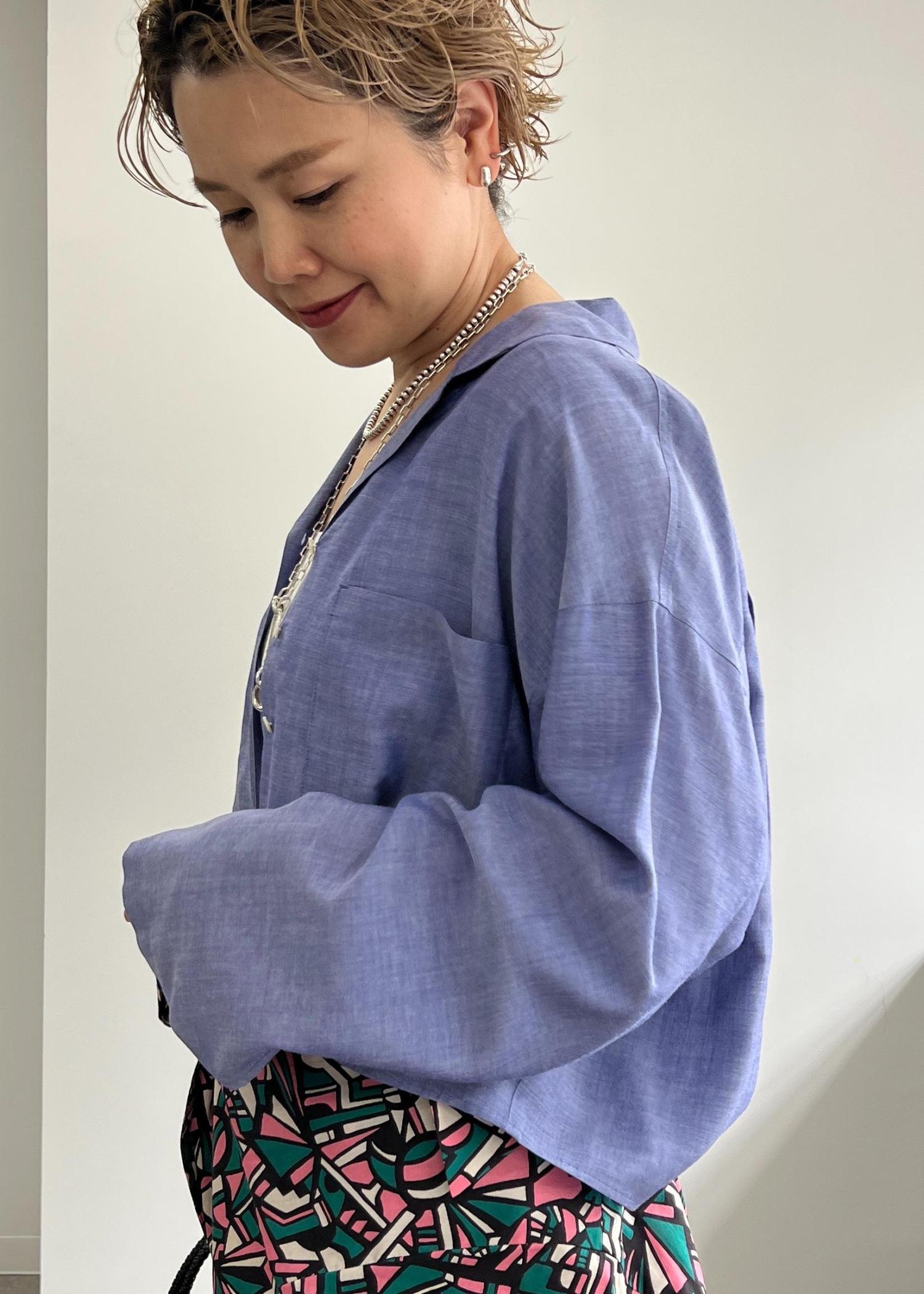 アウトレットSALON adam et ropéオンブレチェッククロップドオープンカラーシャツブルー / F¥11,880レビュー【サイズ感】
