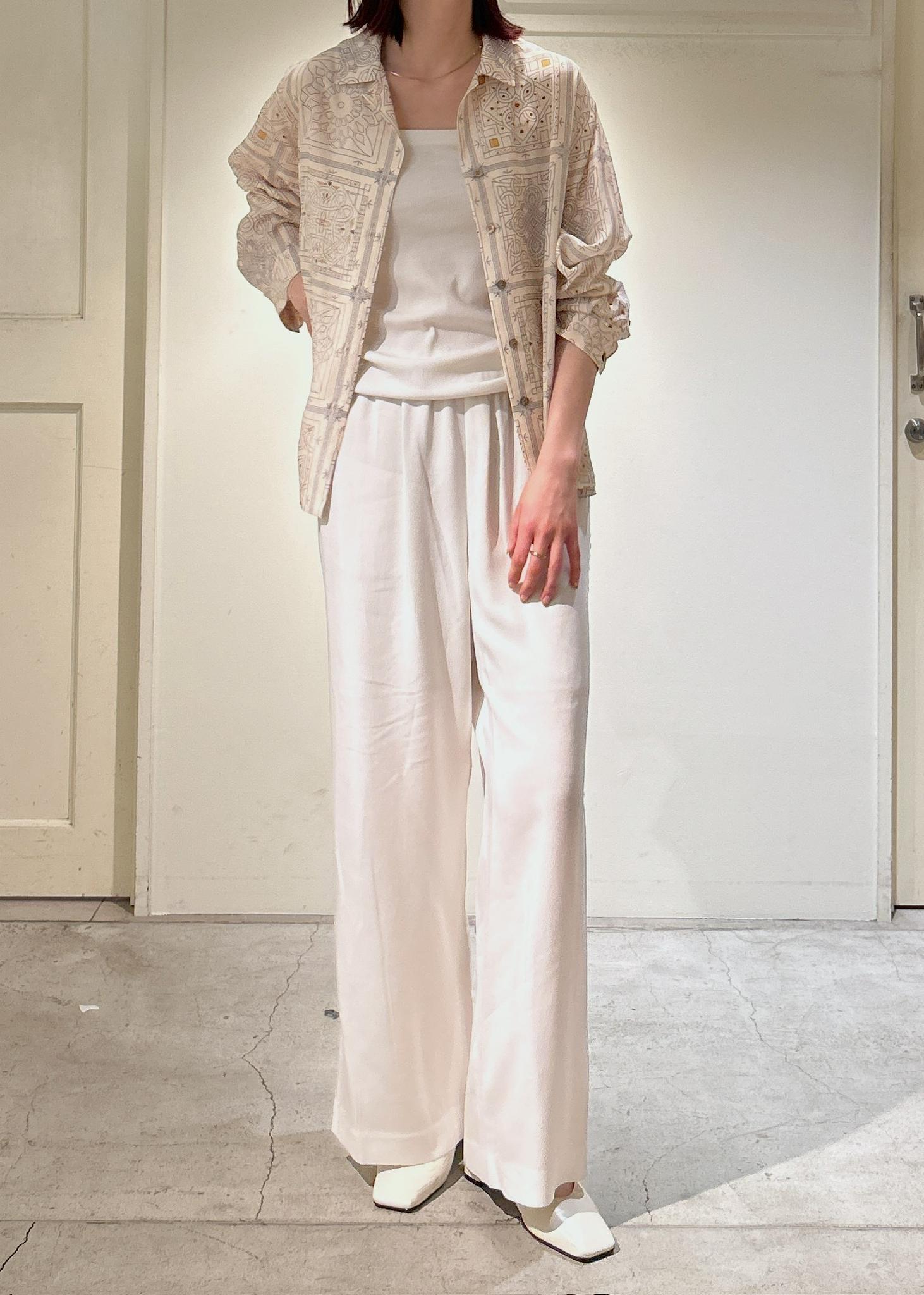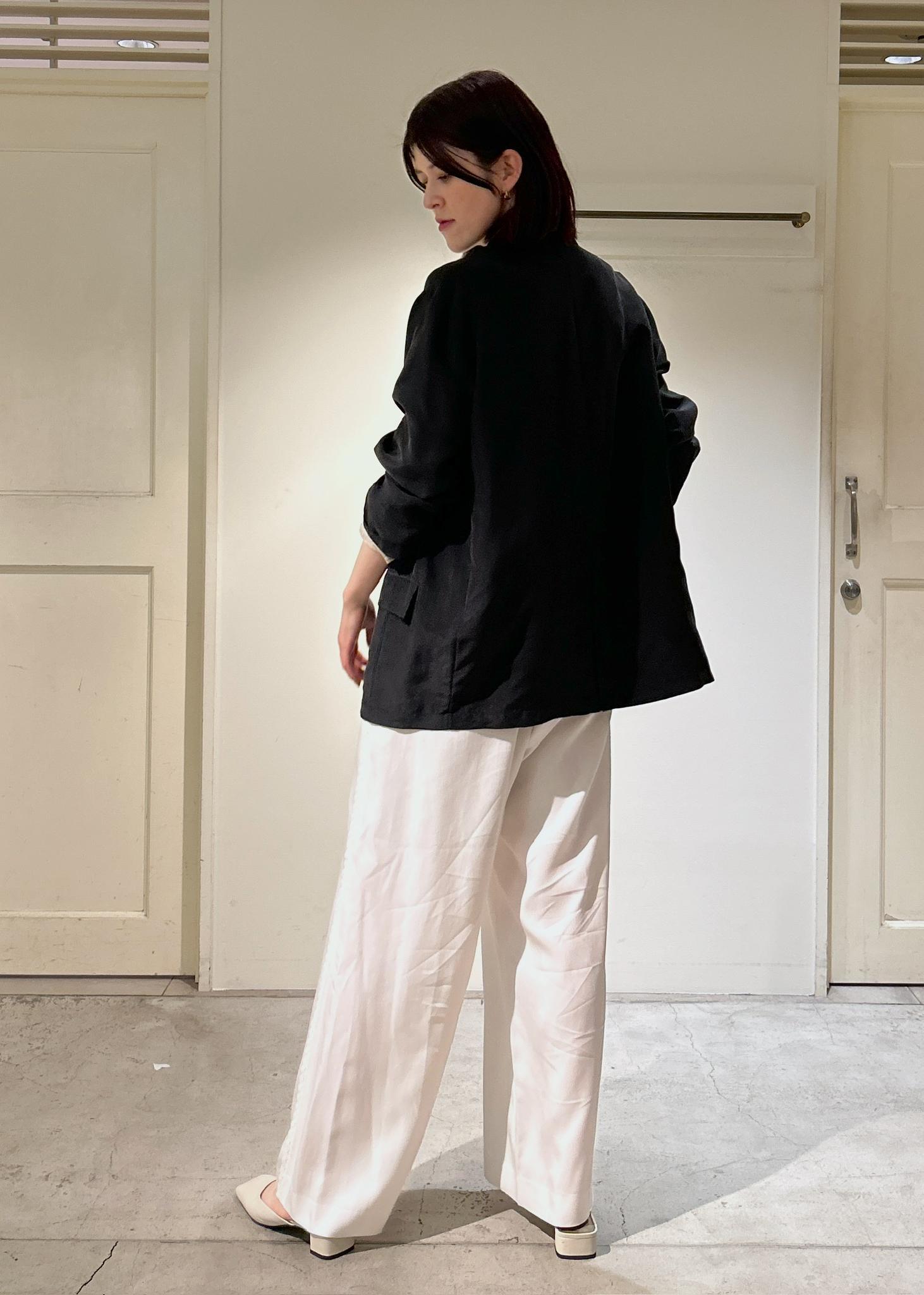 今回は、ホワイトのワントーンコーデにジェントルシルクのジャケットを合わせてみました。着心地がよくサラサラしているので夏の羽織としてもピッタリです。