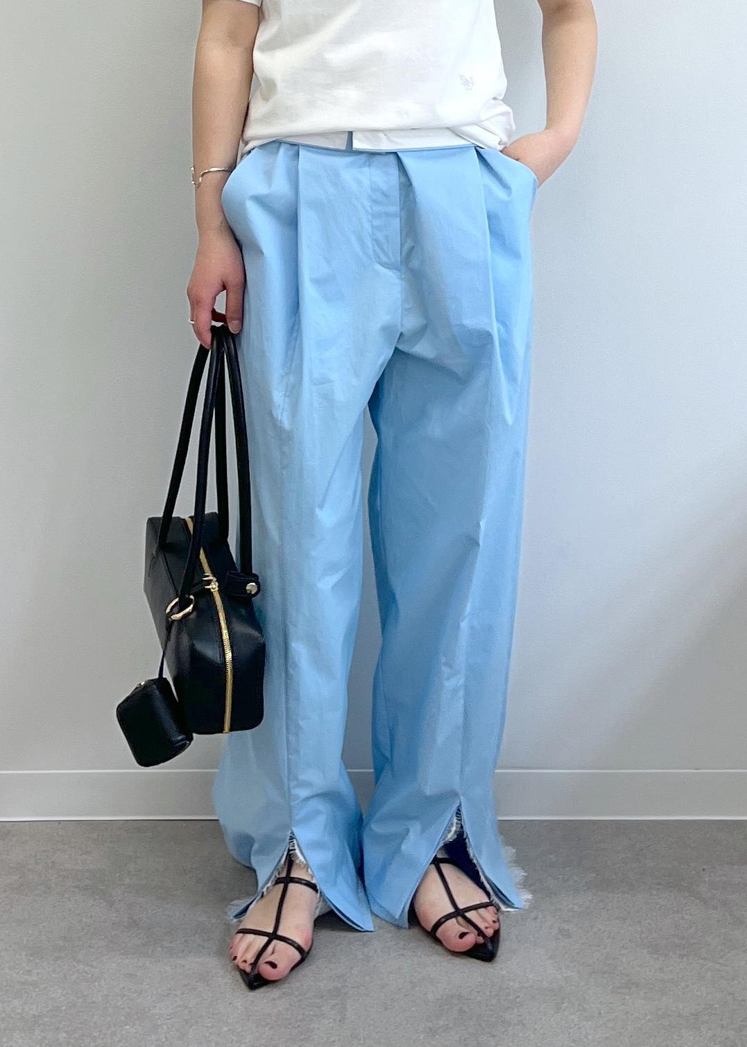 裾のスリットからレースが見えるデザインパンツ。きちんと感のある服装にもカジュアルにも着ていただけます◎ウエストを折っても可愛いです。 -
