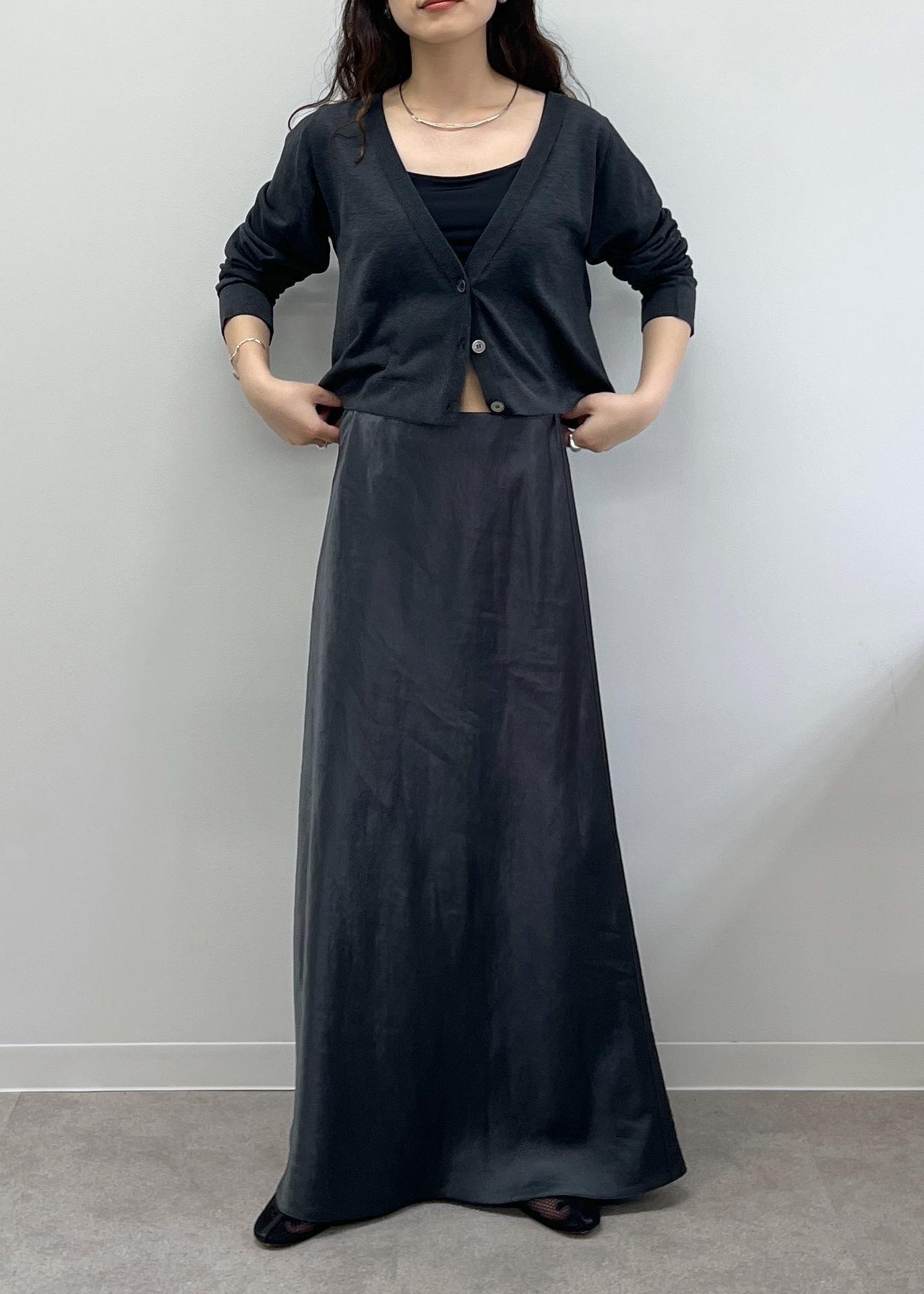 縦ラインが素敵なフレアスカートの組み合わせ。