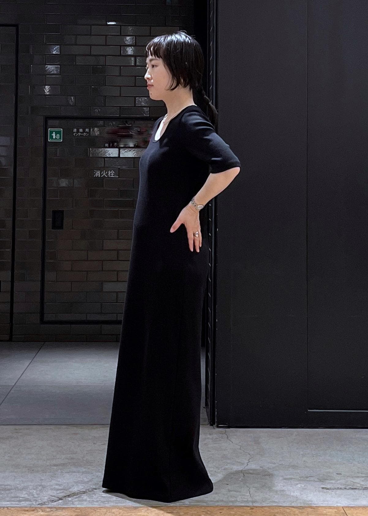 SALON adam et ropé[UVケア・洗える]プリマベールファームリーリブワンピースブラック / F¥14,630レビュー152cm、5cm程のヒールを履いて床ギリギリくらいの丈です。
