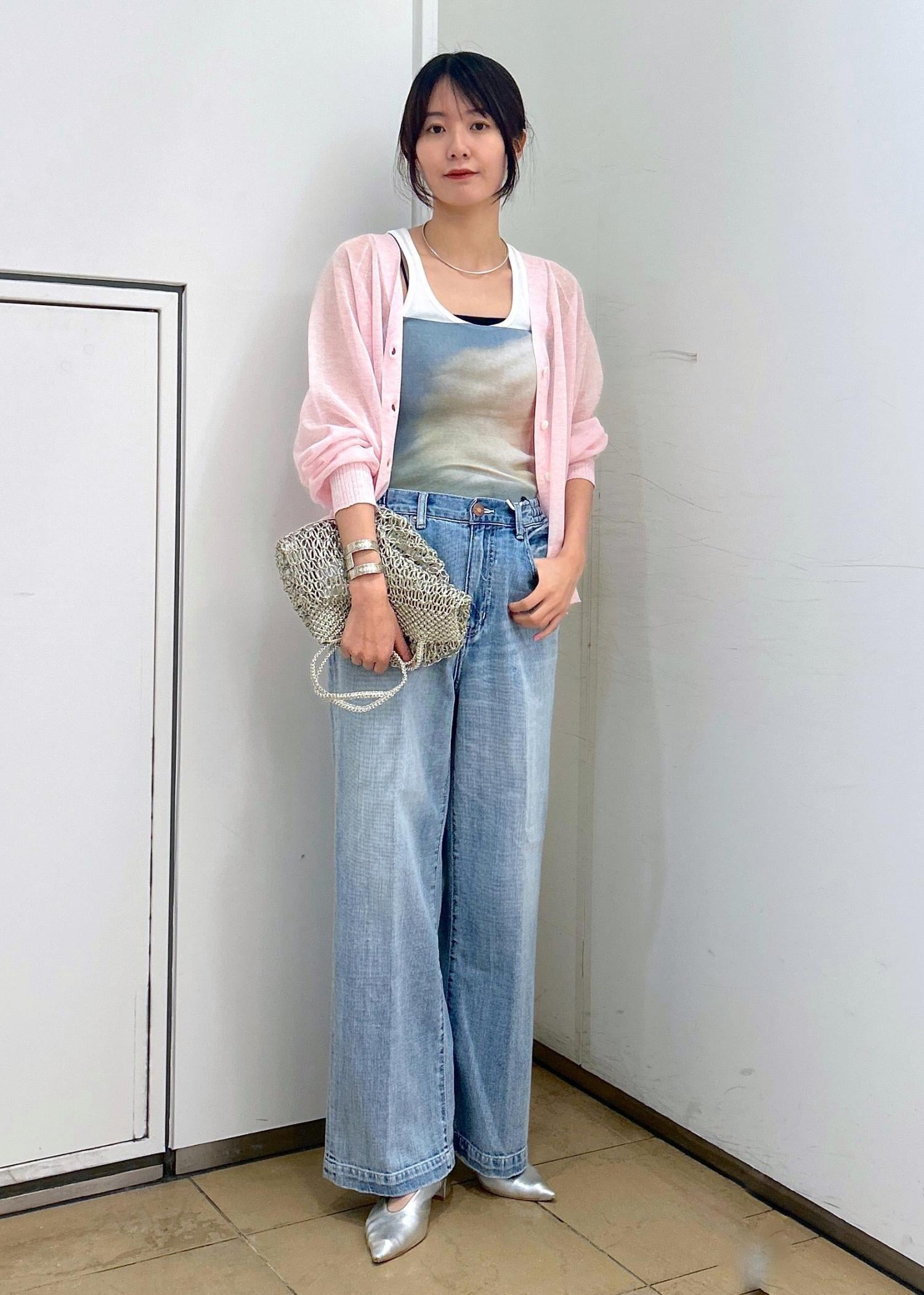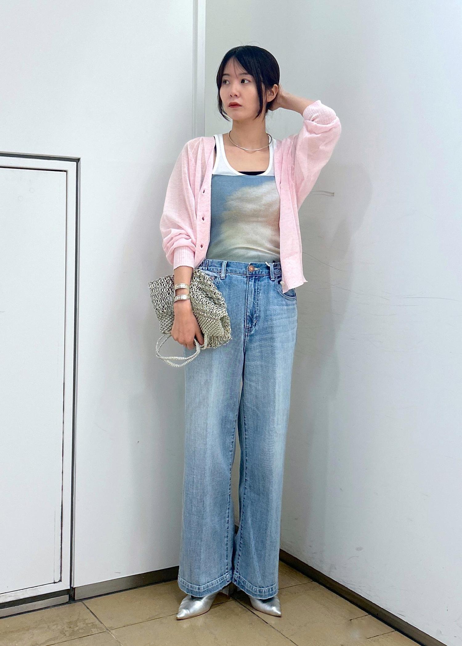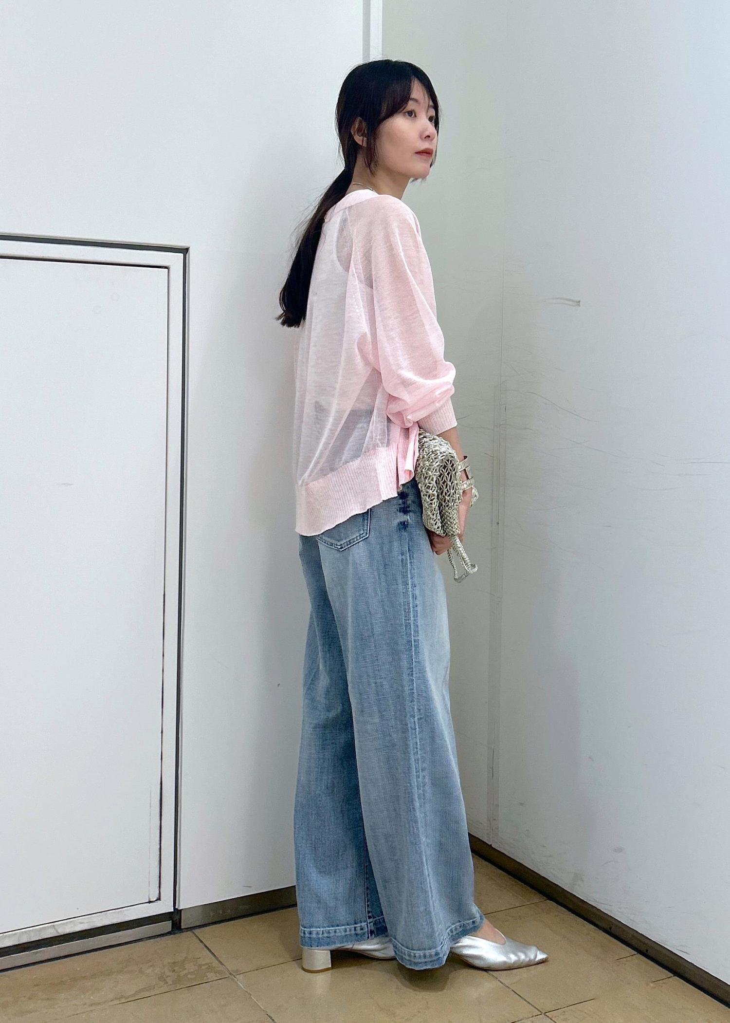 SALON adam et ropéブライトラメVネックシアーカーディガン[一部WEB限定カラー・手洗い可能]ピンク / F¥11,880レビュー【サイズ感】