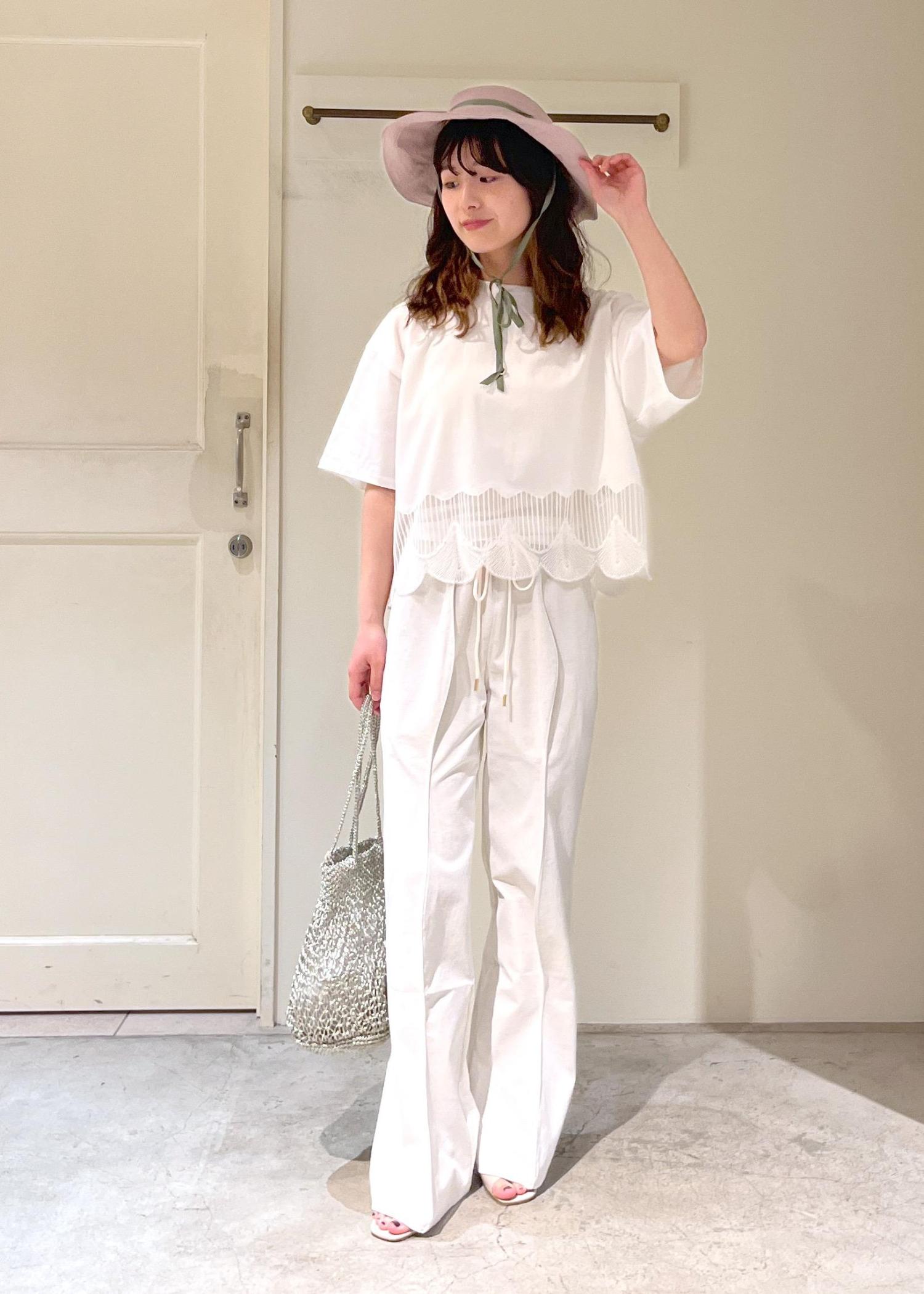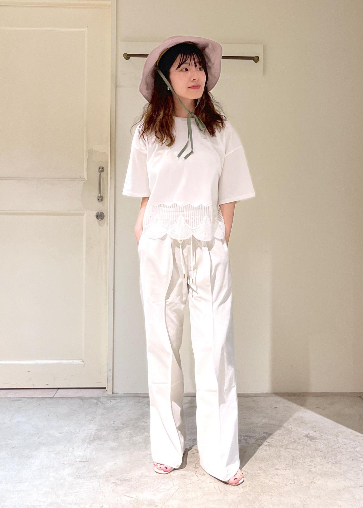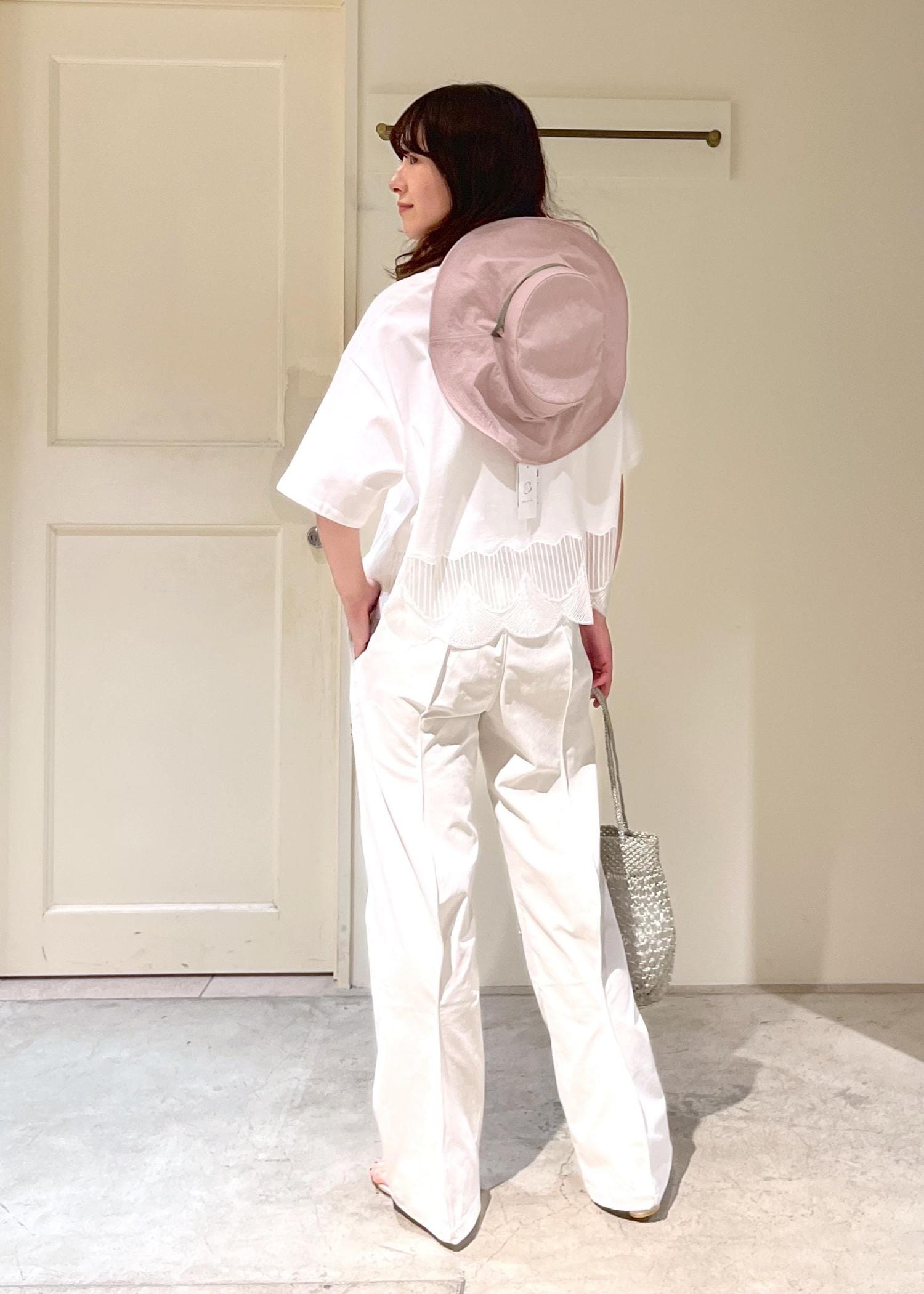 シャキッとした素材感で、立体的なシルエットのパンツです。動きのあるウェーブシルエットはとても存在感がありますが、ベーシックなカラーなので取り入れやすいです◎ -