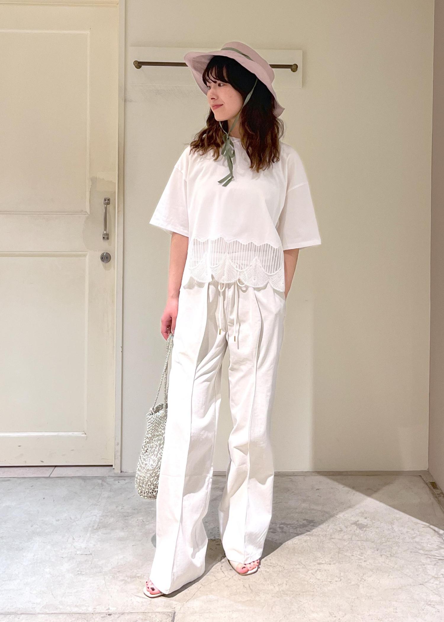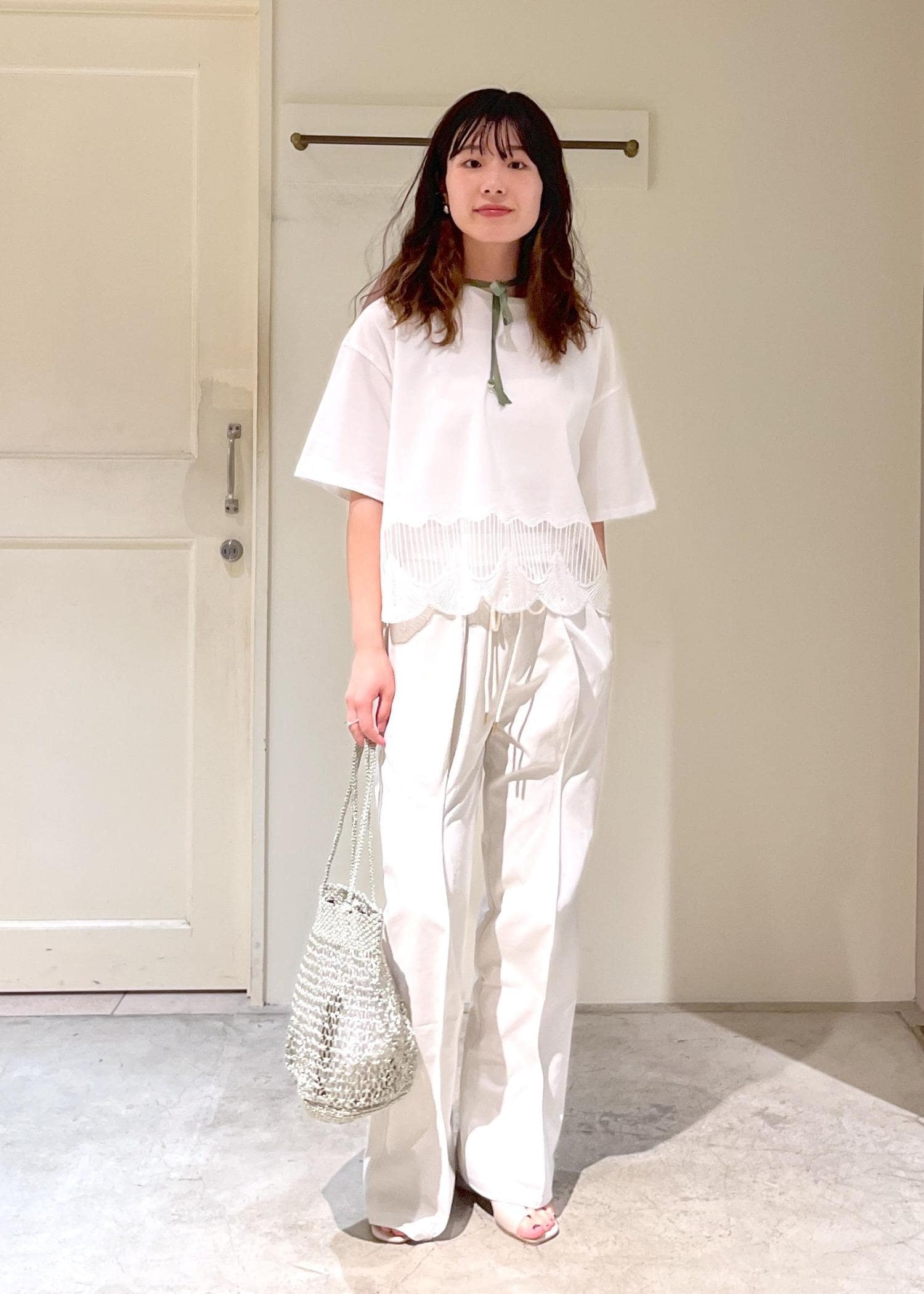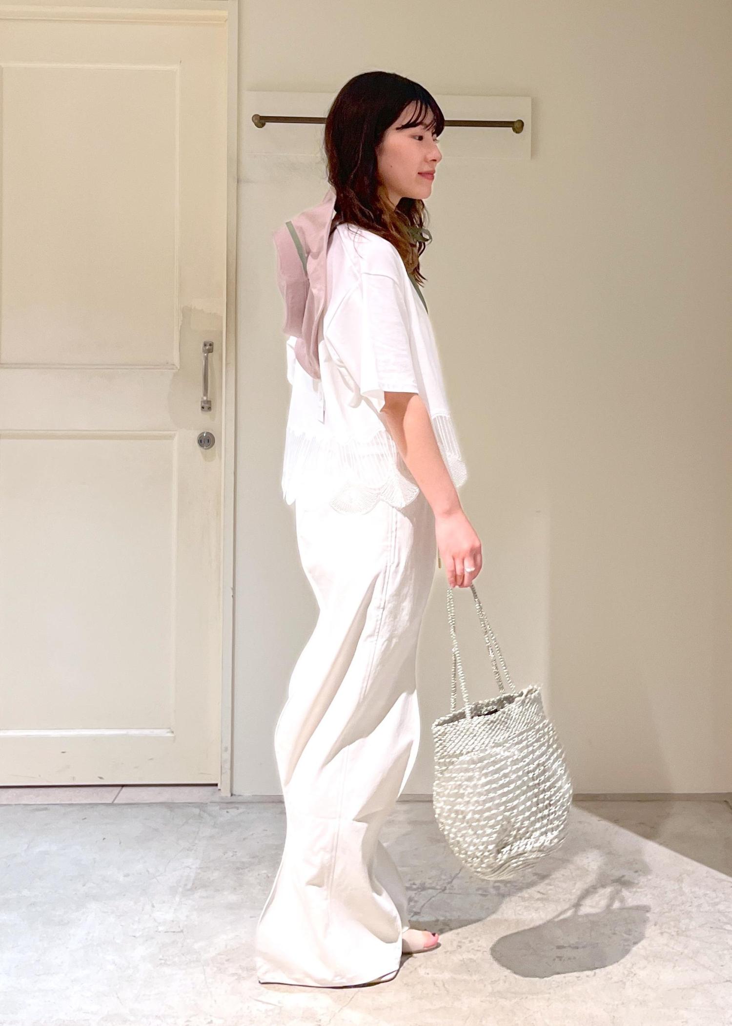 シャキッとした素材感で、立体的なシルエットのパンツです。動きのあるウェーブシルエットはとても存在感がありますが、ベーシックなカラーなので取り入れやすいです◎ -