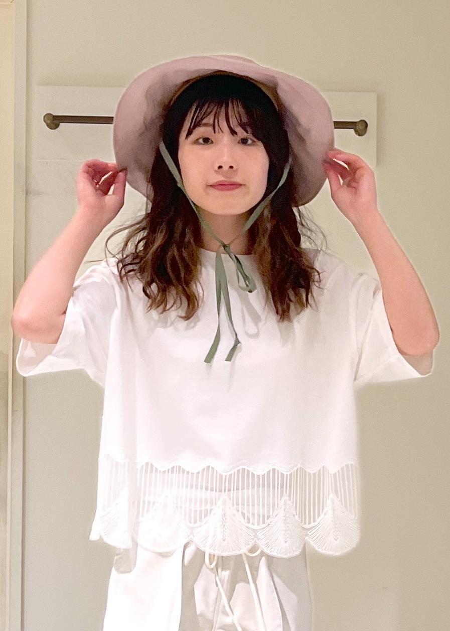 広めのブリムで、しっかり日焼け対策ができます◎かなり浅めの被り心地ですが、台座があることで、頭にフィットします。