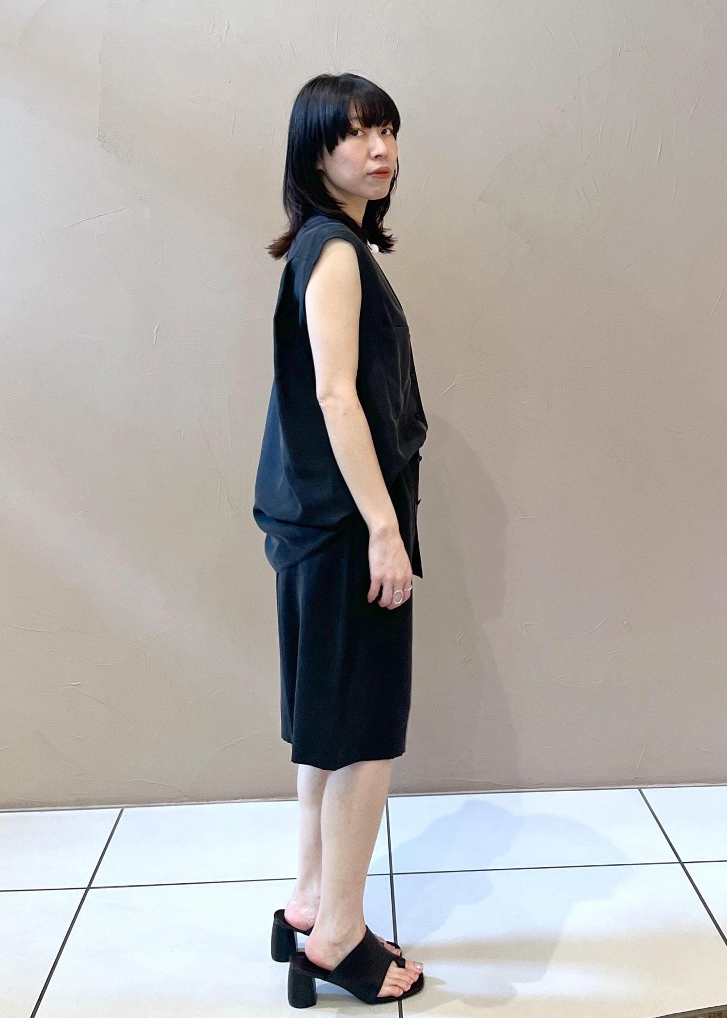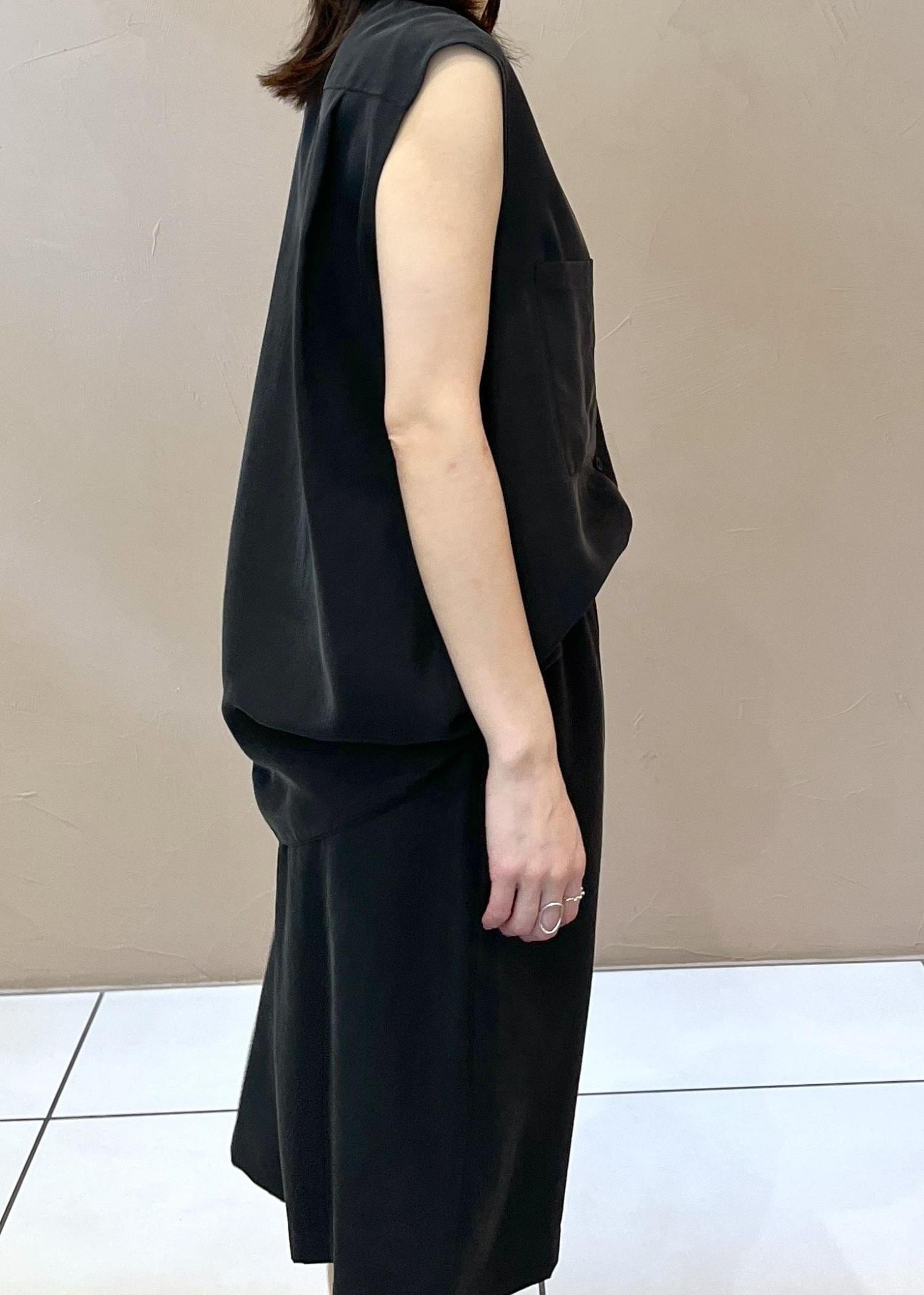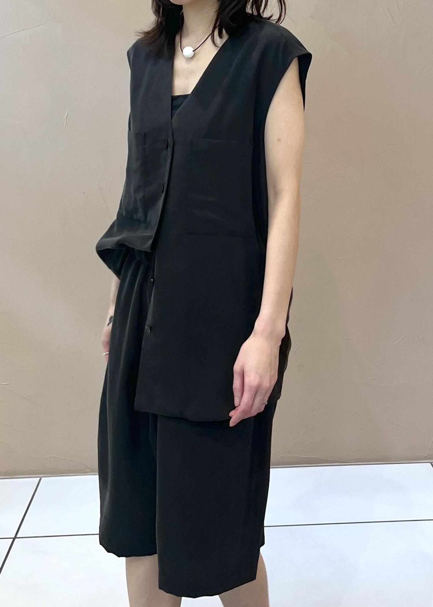 SALON adam et ropé[25SS]GENTLE SILKジレ【セットアップ対応】ブラック / F¥26,730レビュー着丈はヒップにかかるくらい。