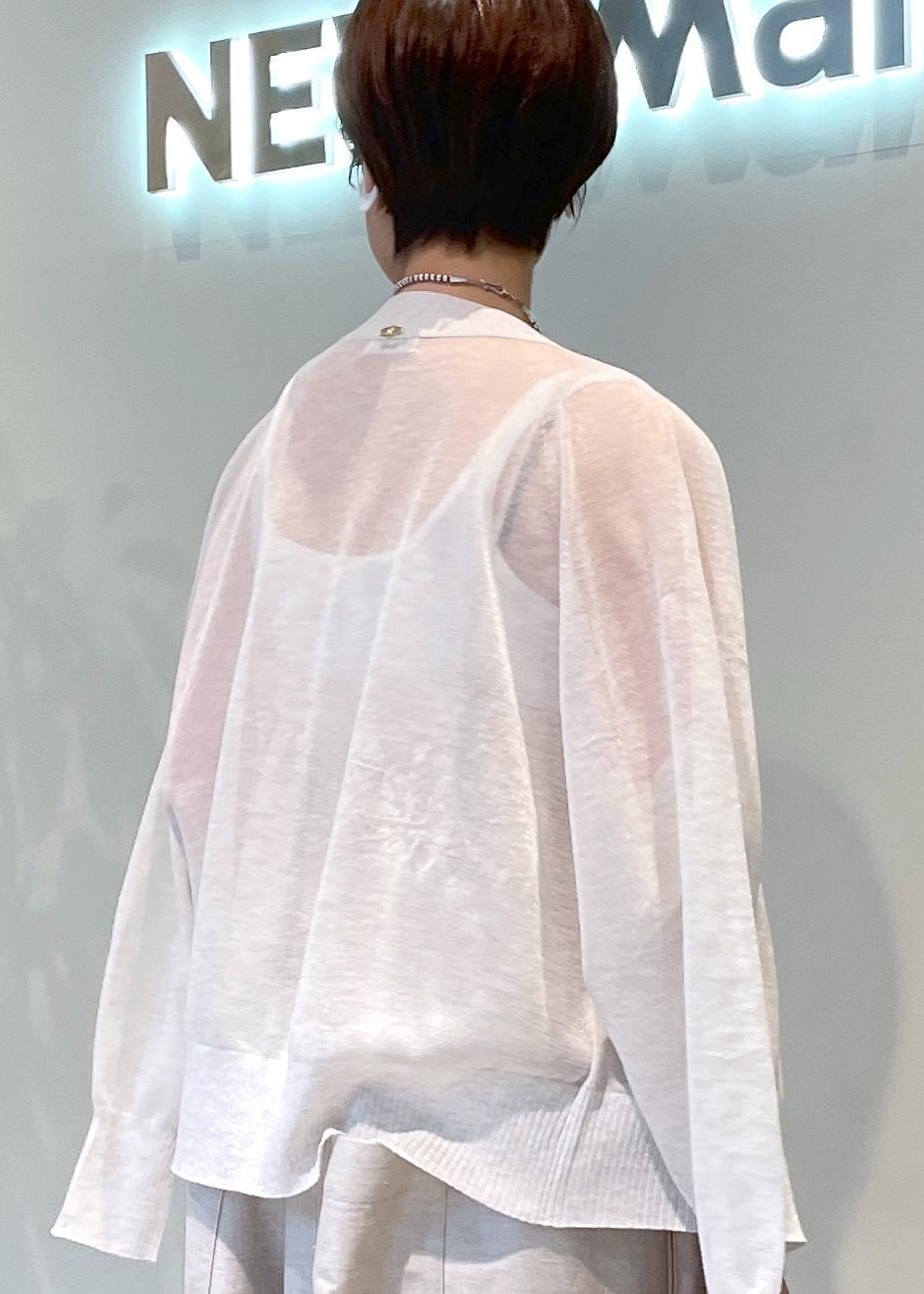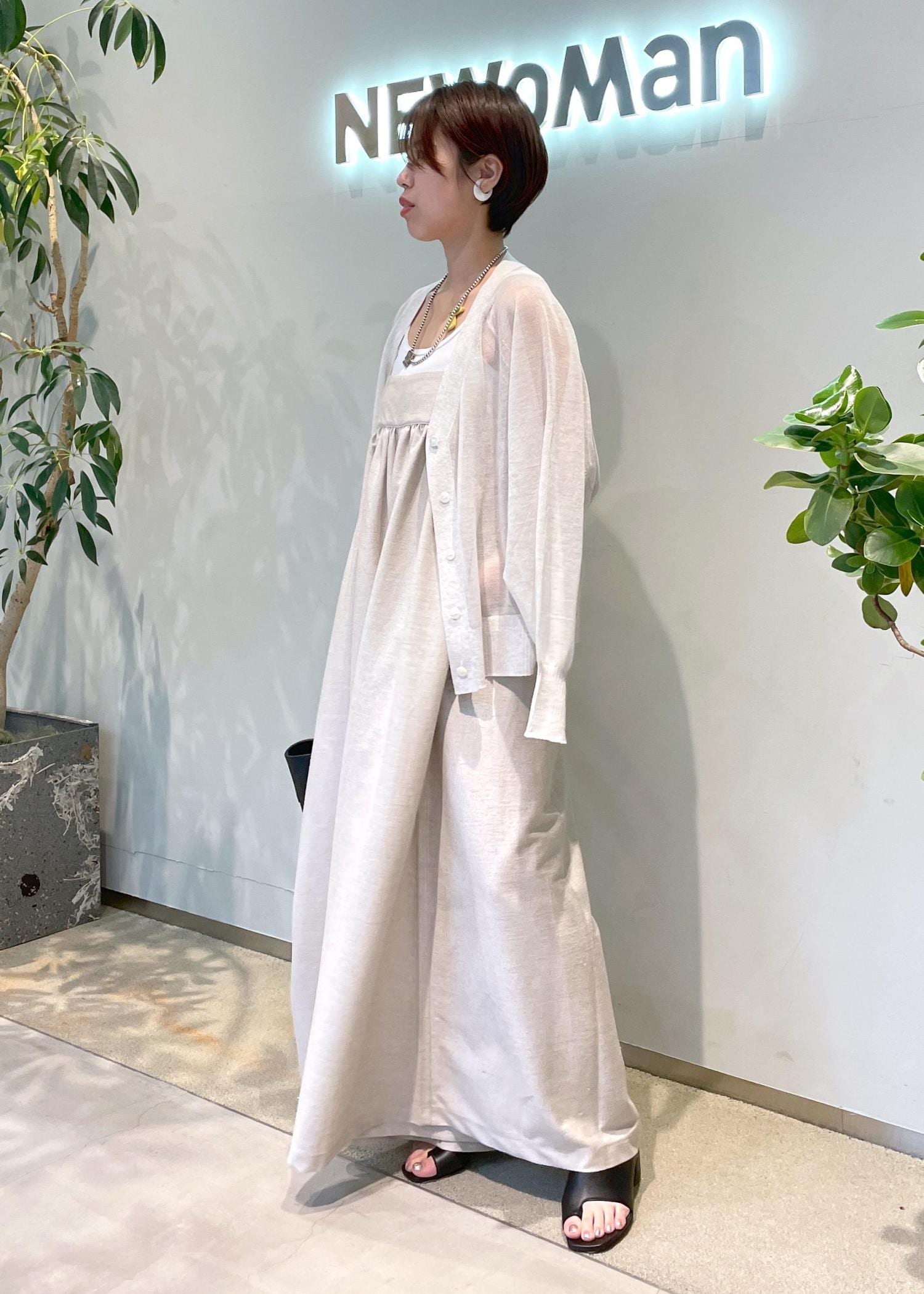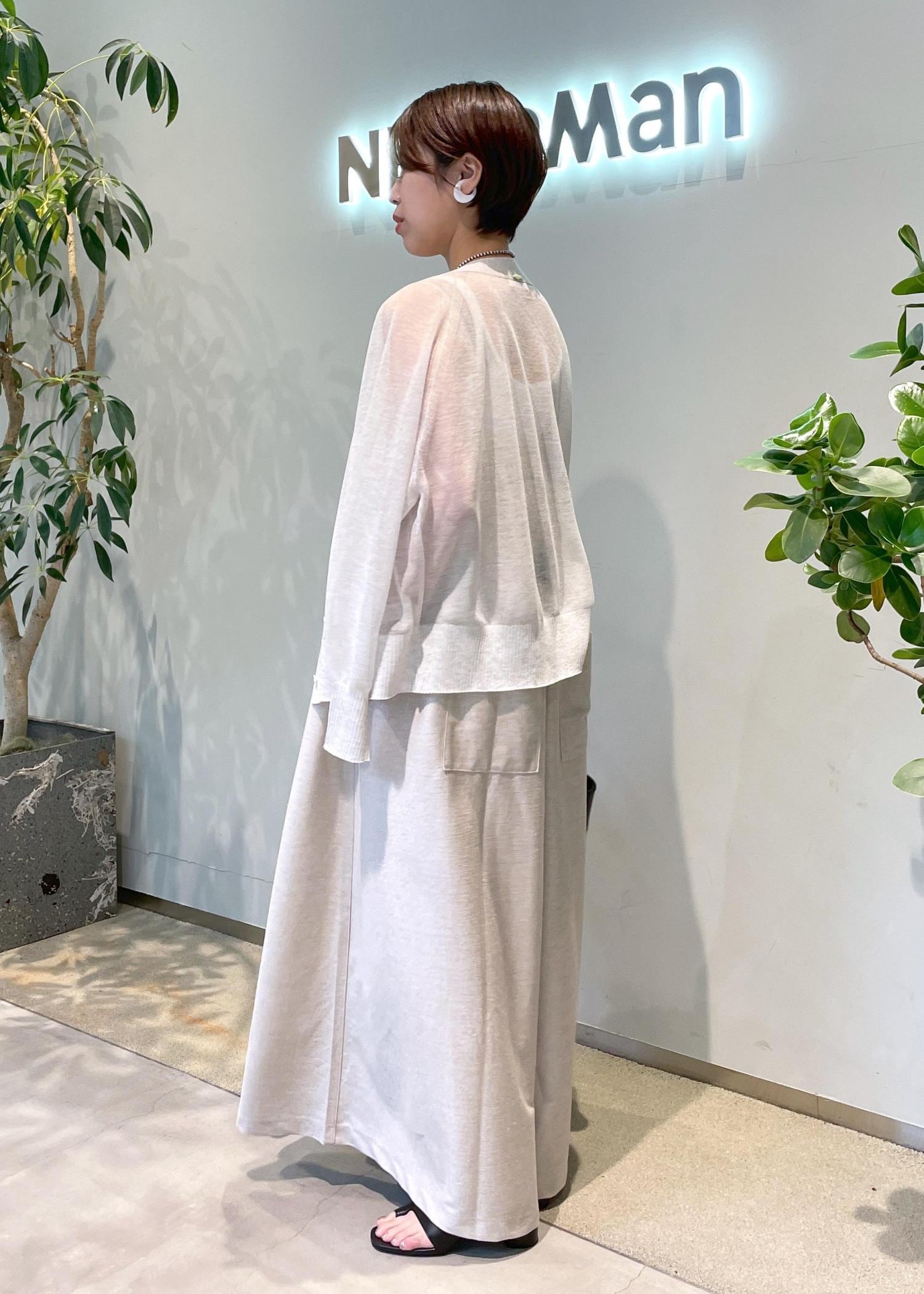 NEWoMan限定カラーのシアーカーディガンとワントーンで合わせれば、ナチュラルな印象に。