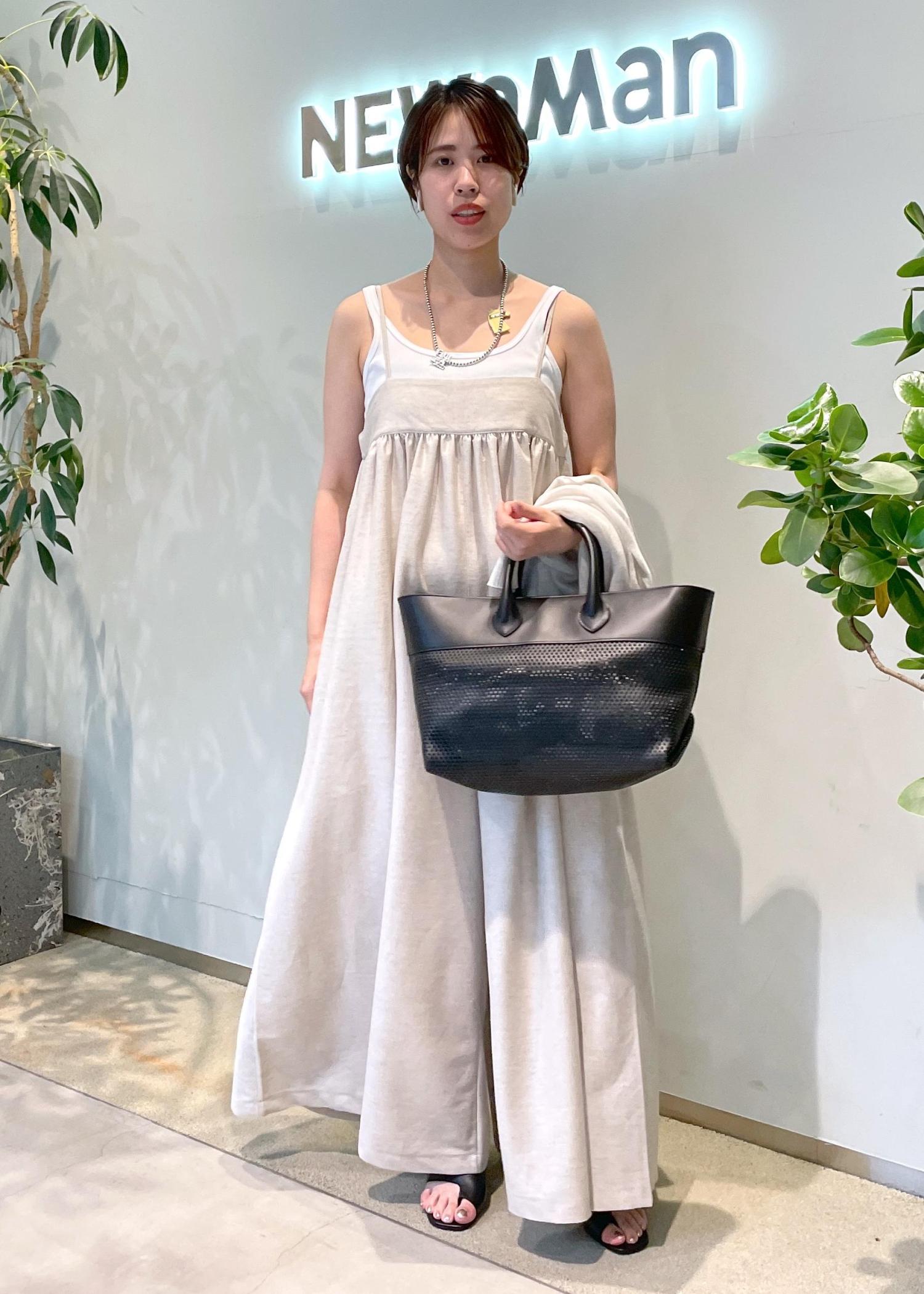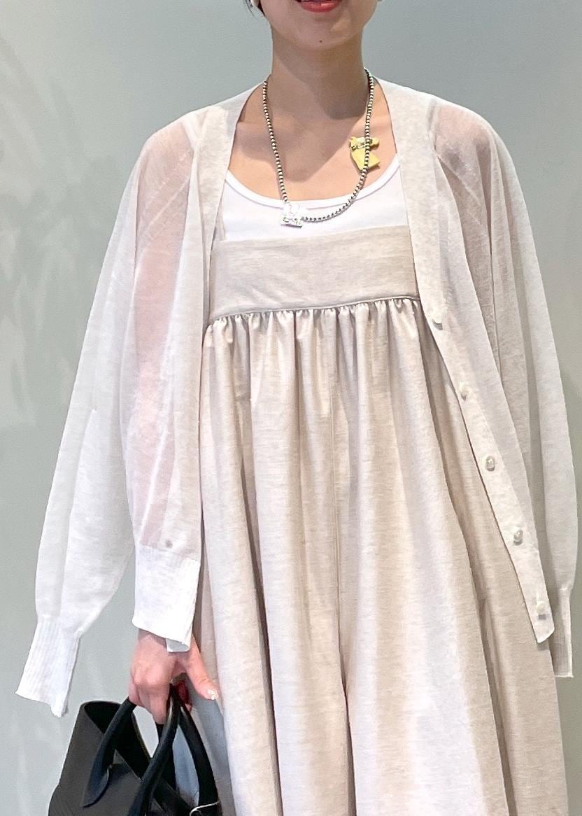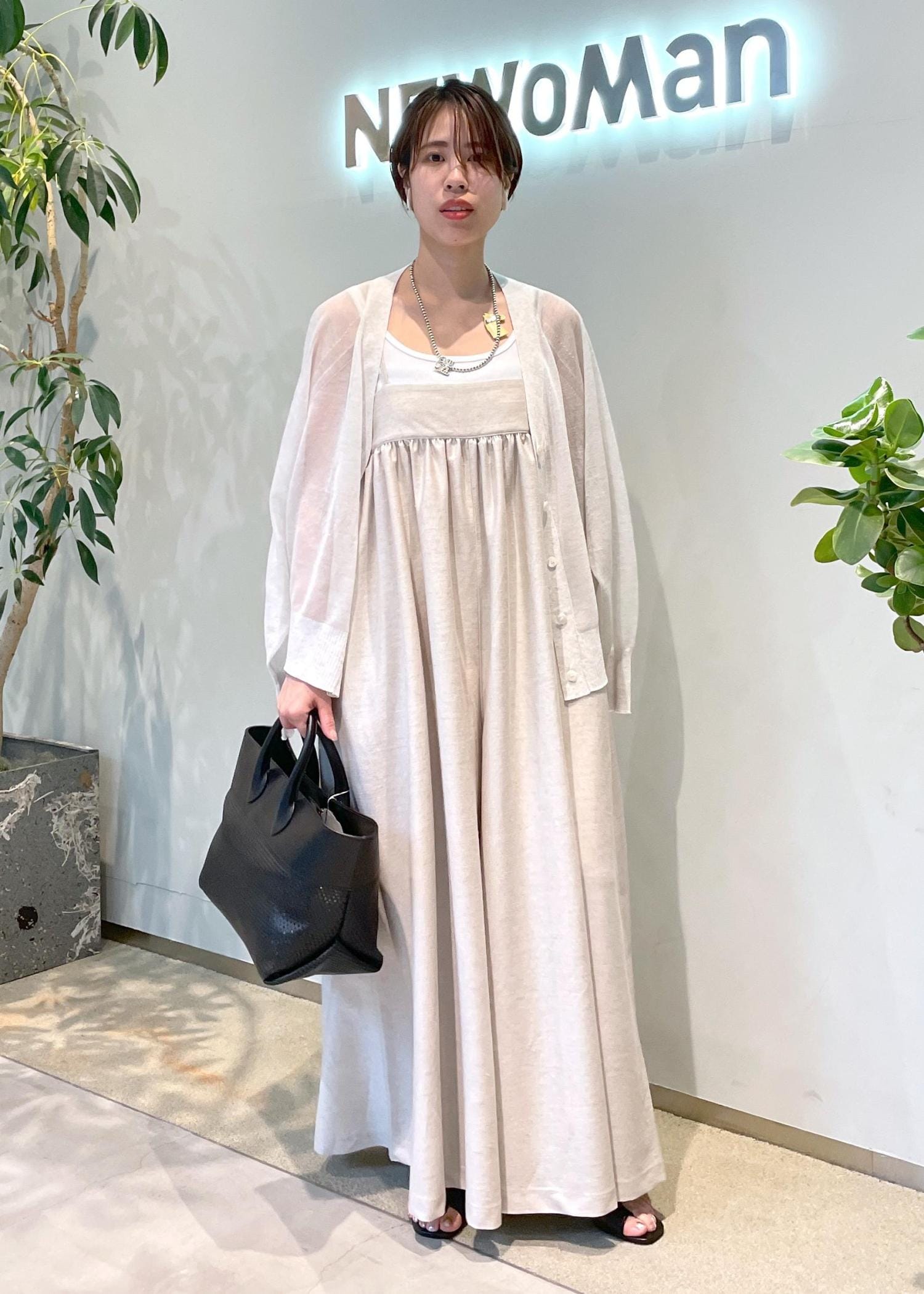 NEWoMan限定カラーのシアーカーディガンとワントーンで合わせれば、ナチュラルな印象に。