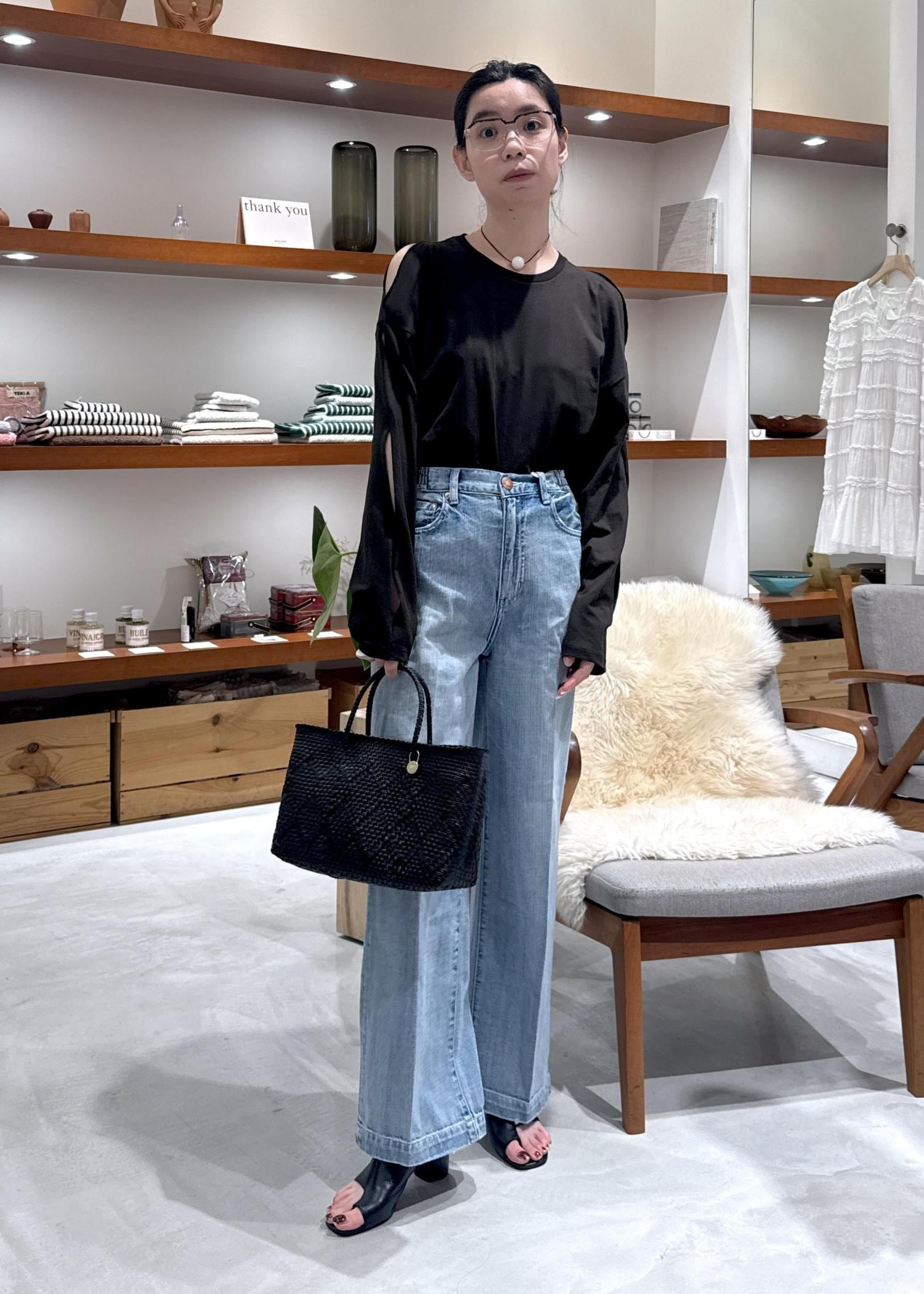 天然素材のカゴバッグと違い洋服が傷つきにくいので、スタイリングを選ばず合わせられます。