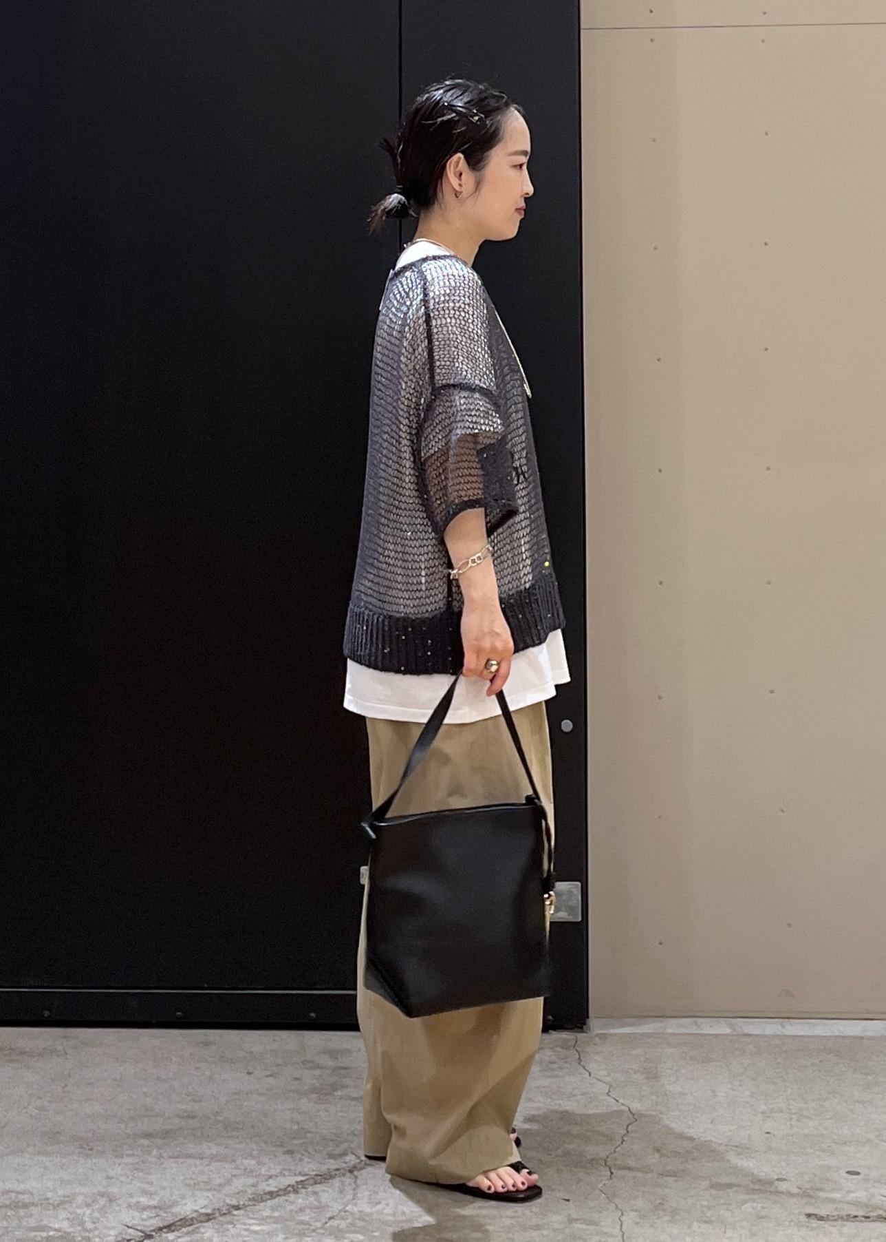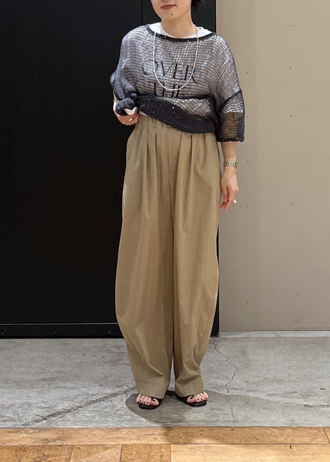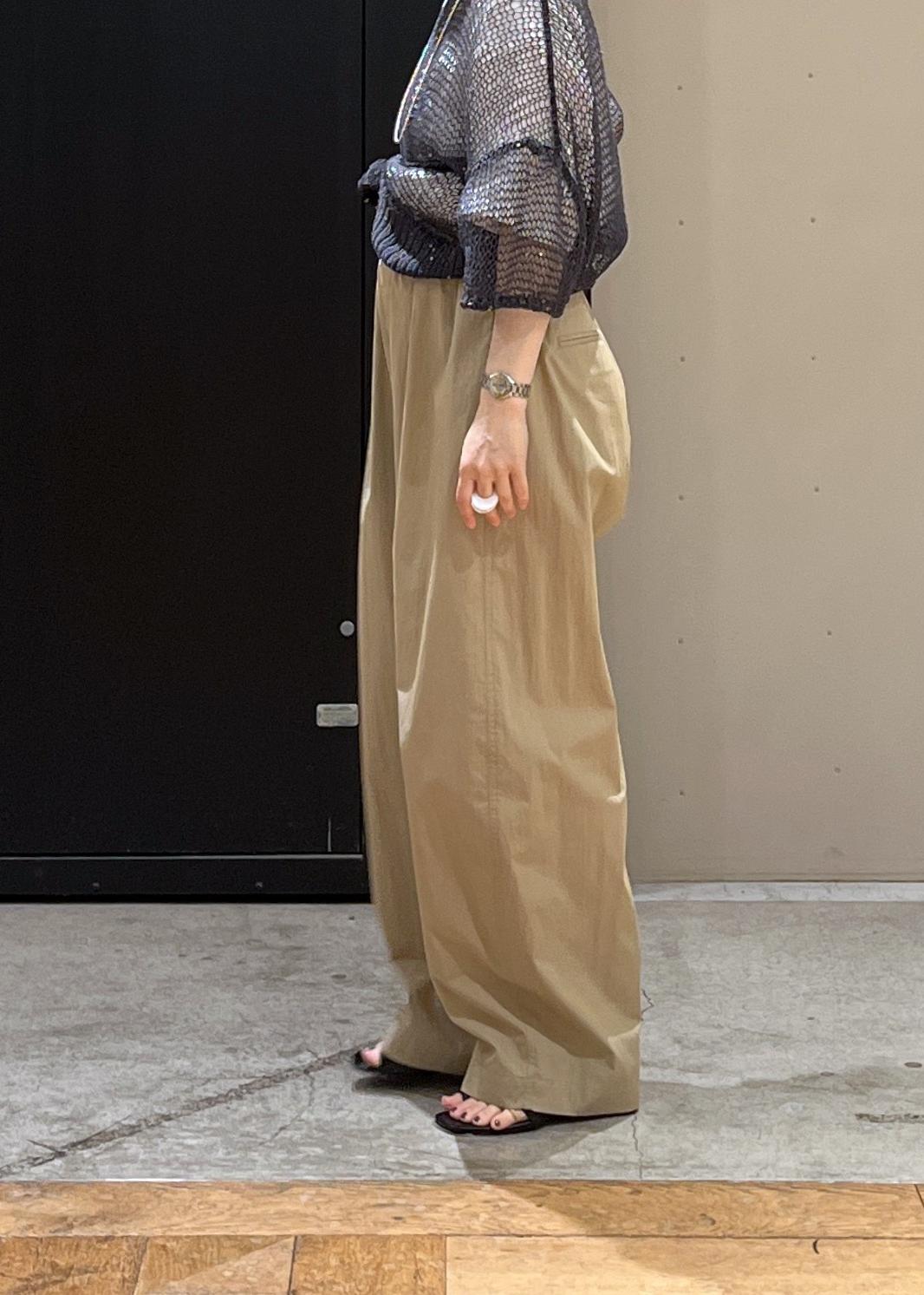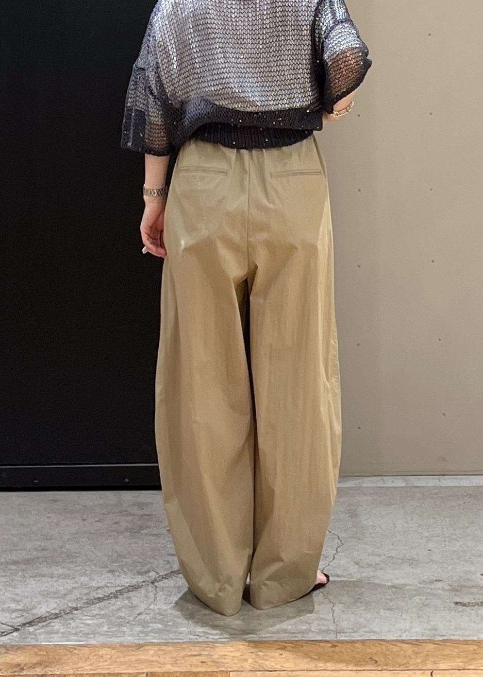 ボリュームがかなり出る形ですが、クシュっとした生地でイージーなので、体型をカバーしつつ、イージーに履けます。