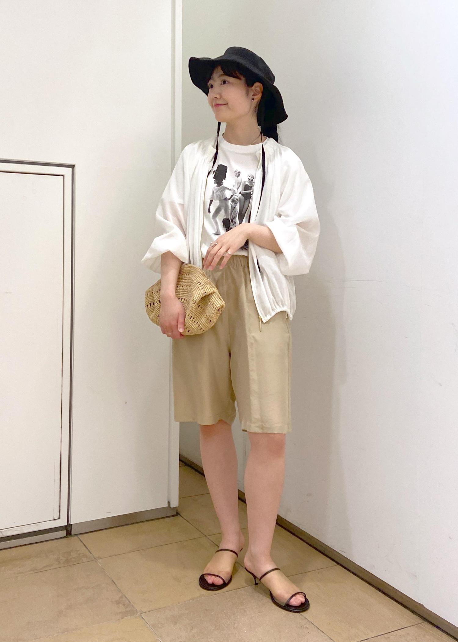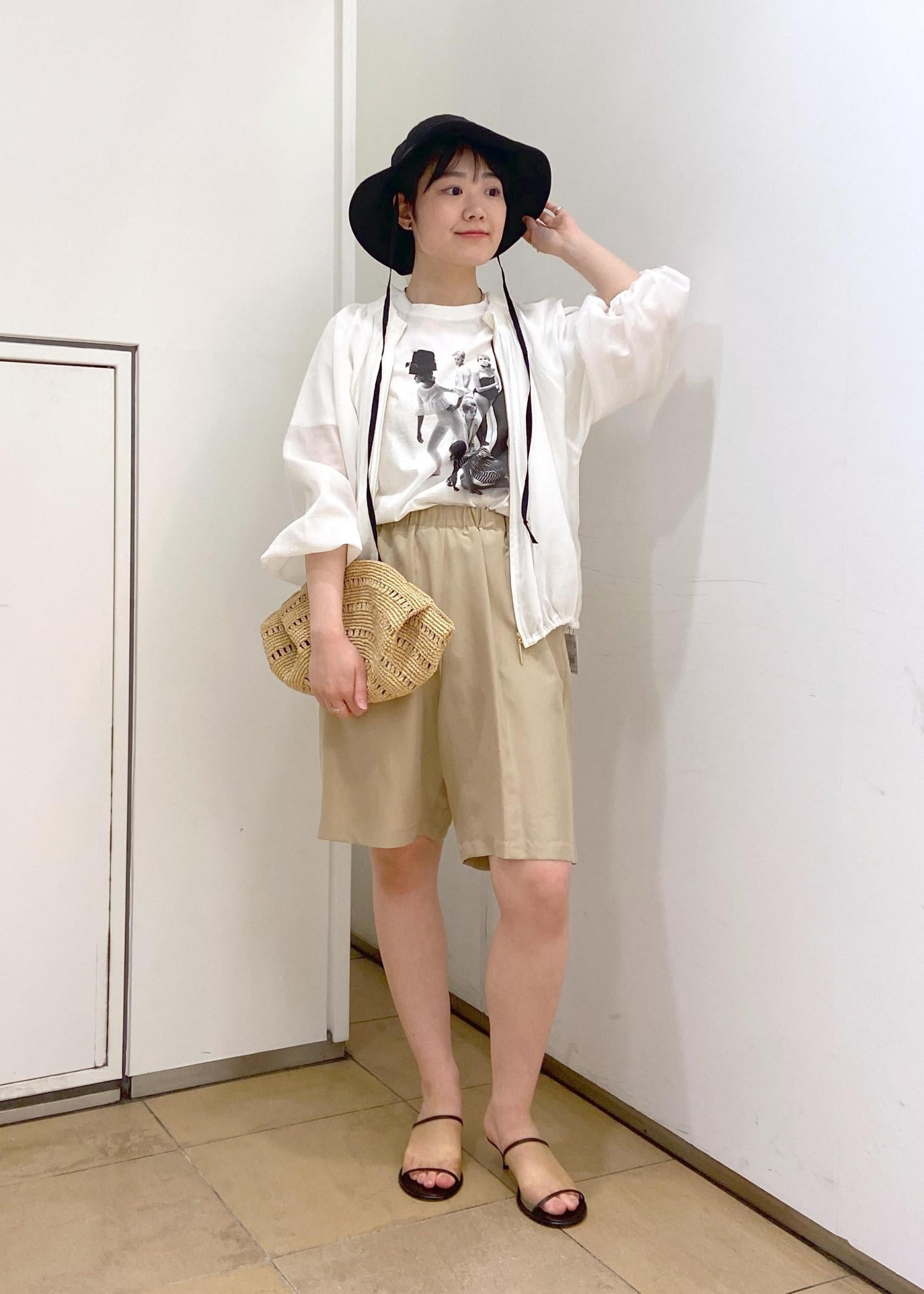 羽織としてもチャックを閉めてブラウスのように着ていただけますし、裾を絞ったり、袖口はゴムなのでたくしあげたりするとシルエットの変化がつけられて着回しも◎