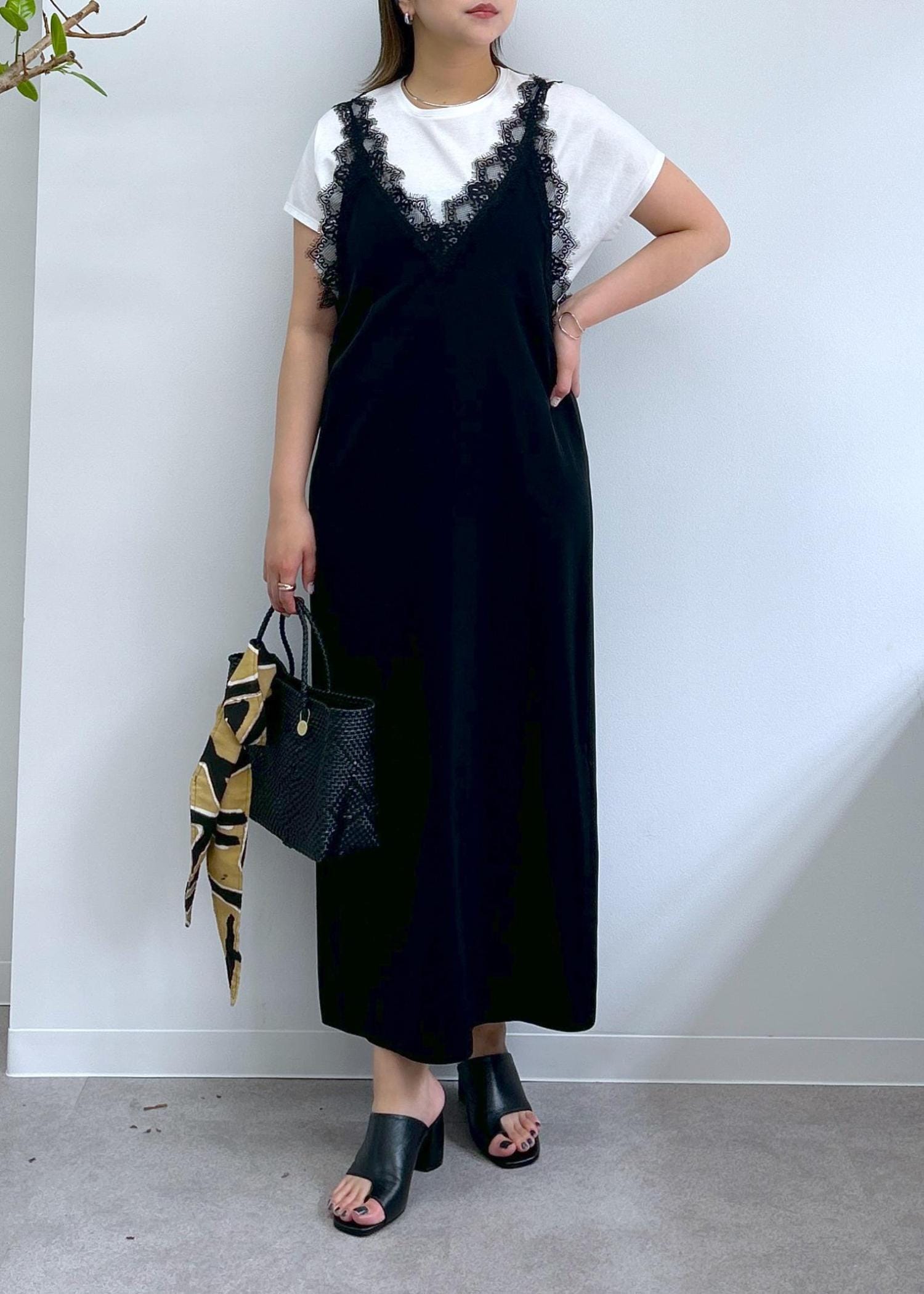 アウトレットSALON adam et ropé【WEB限定】ビンテージライクアクセントレースワンピースブラック / F¥6,270レビュー着丈は158㎝で足首上くらいの長さです。