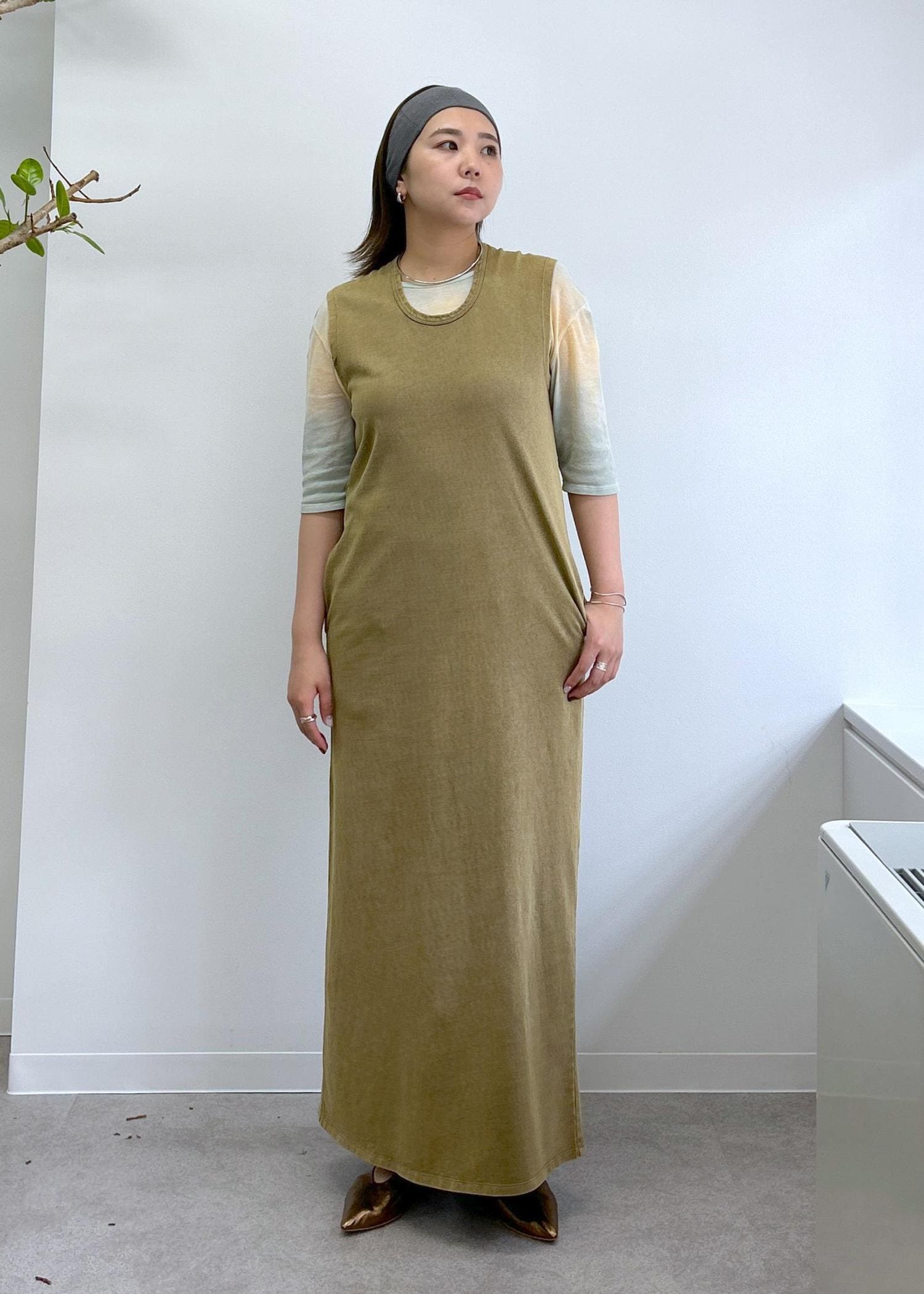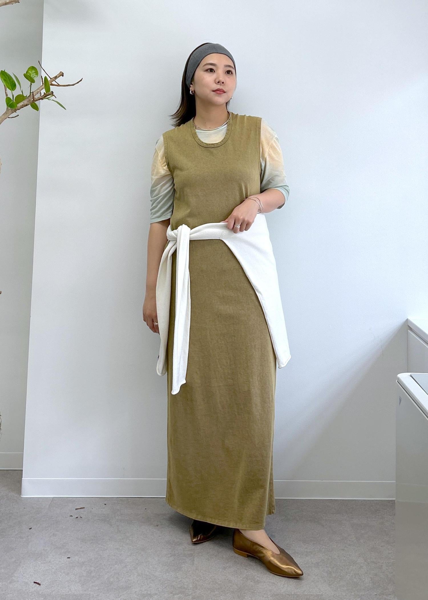アウトレットSALON adam et ropéガーメントダイ 天竺ワンピースブラウン系 / F¥10,450レビュー着丈は長めで、158cmで足首くらいの丈感です。