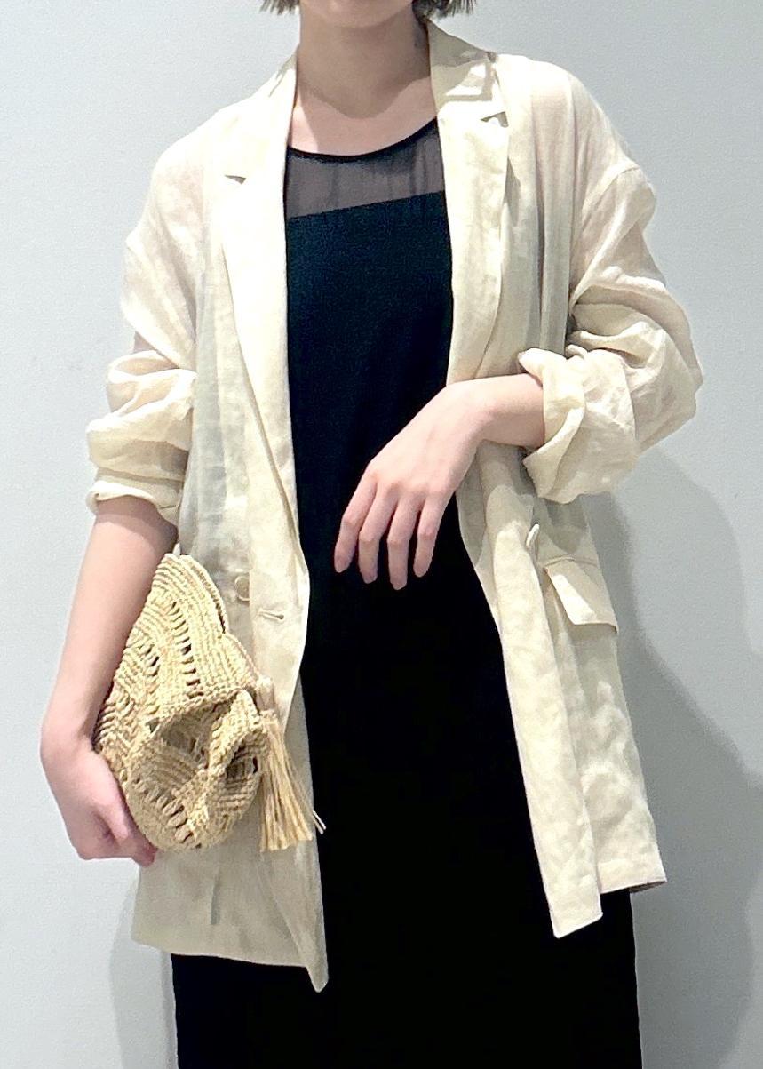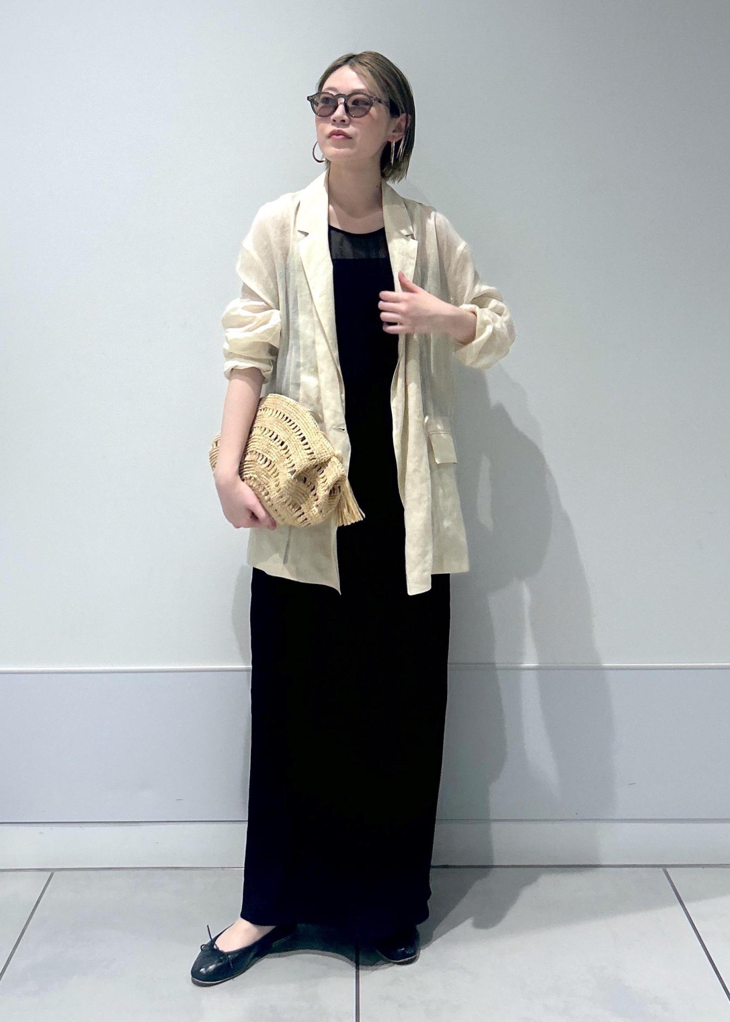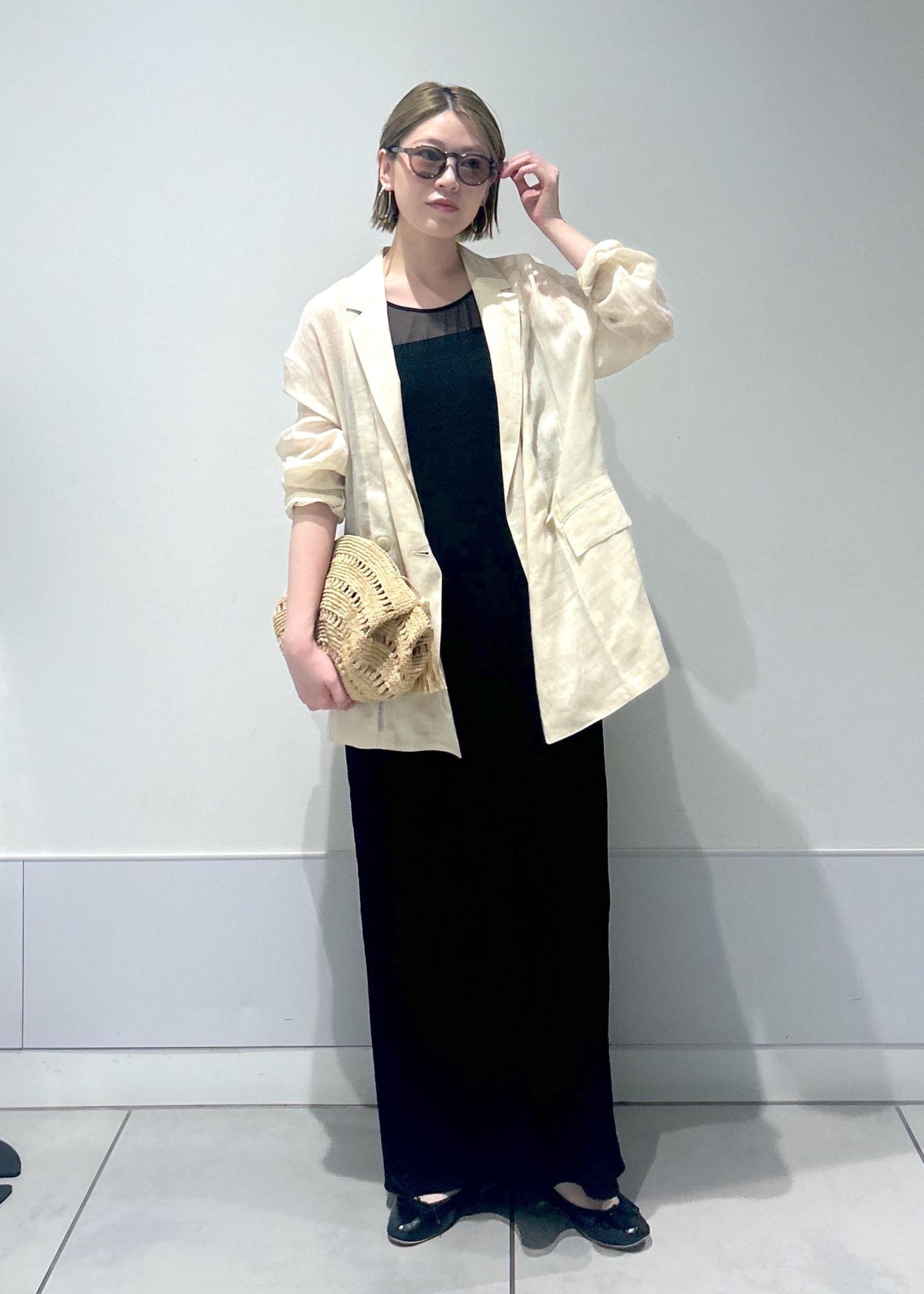 キャミソールワンピースと合わせて、女性らしくモードな雰囲気にまとめました。