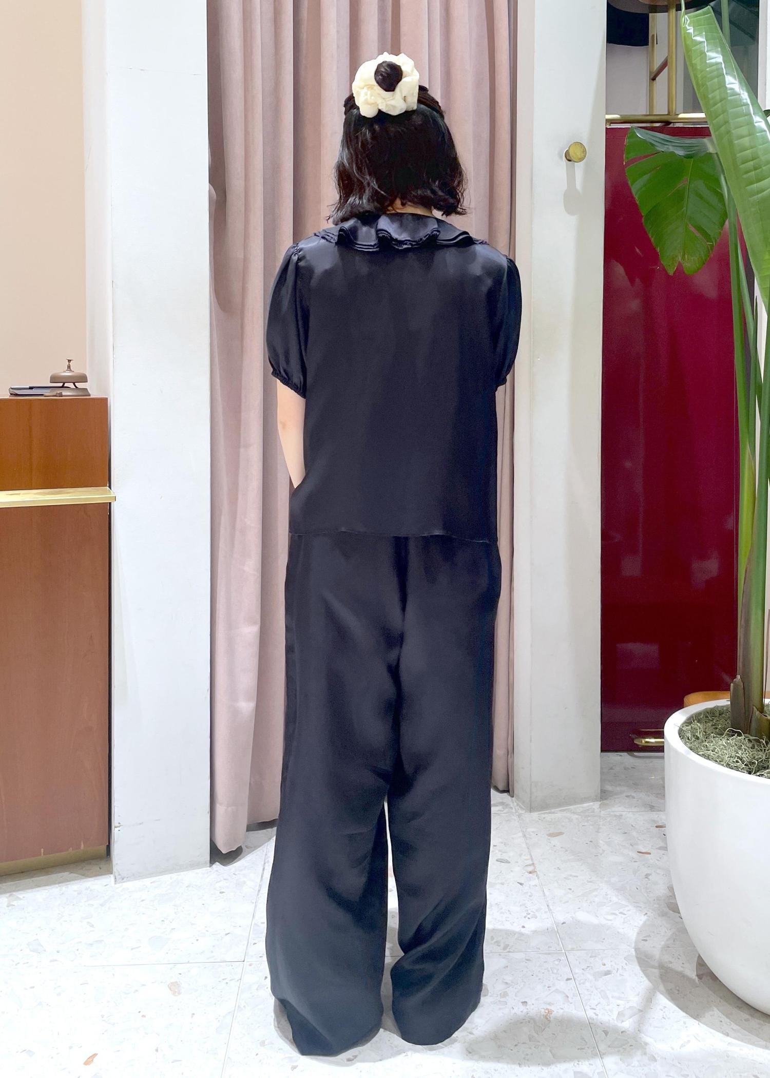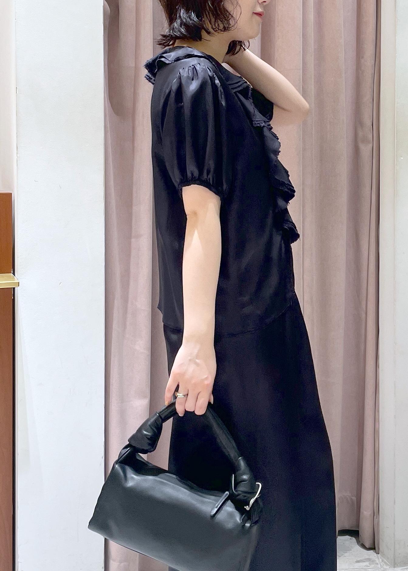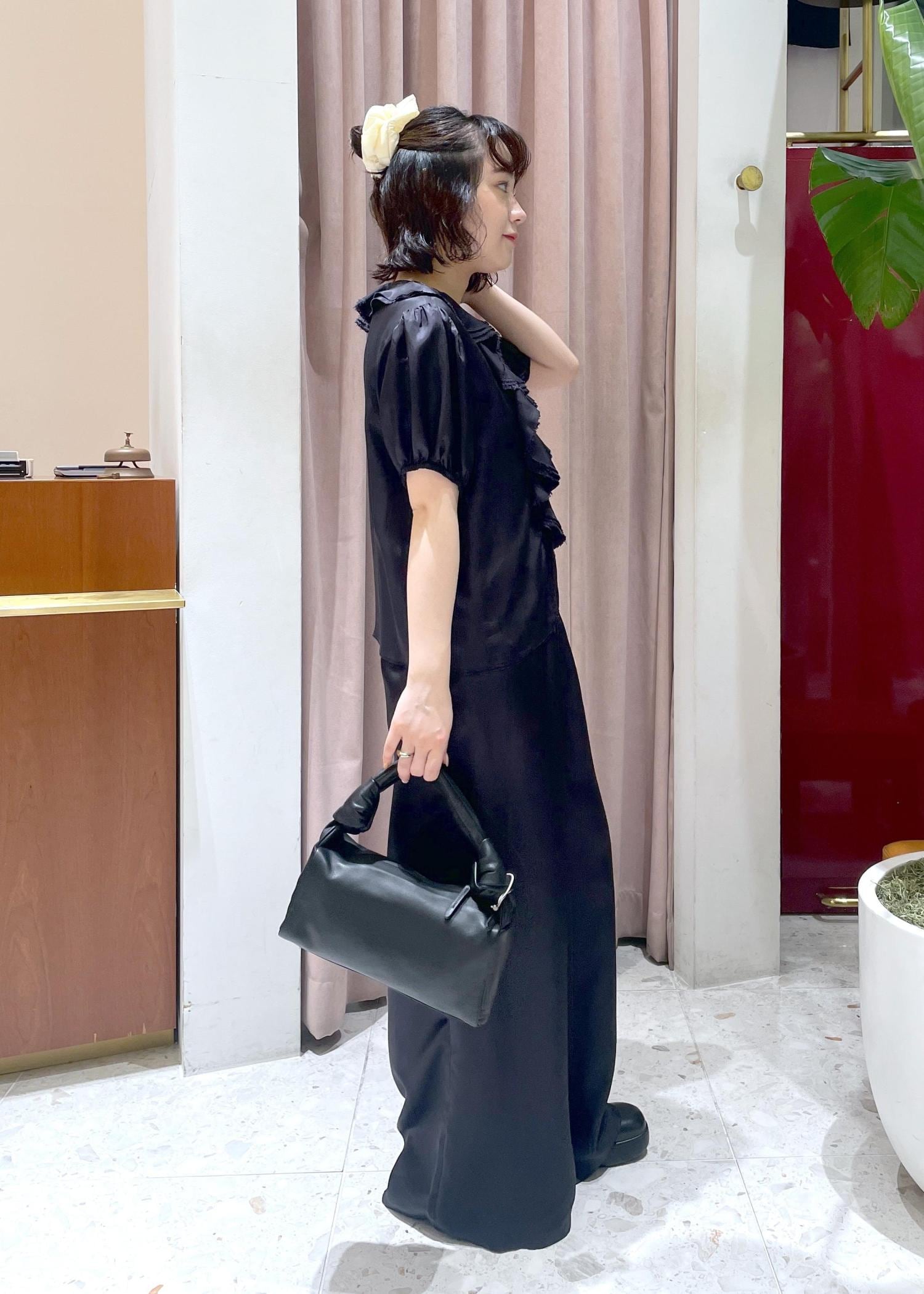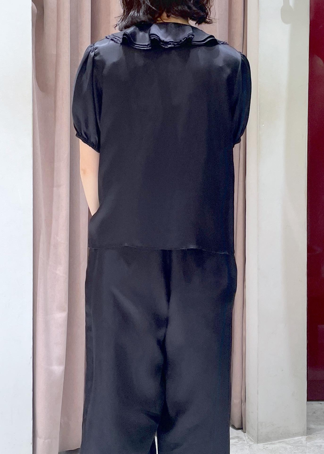 光沢なある生地は落ち感が良く、動くととても綺麗です!レースとフリルでどちらも可愛い印象ですが、ダークトーンなので大人の方にももちろんおすすめのスタイリングです◎