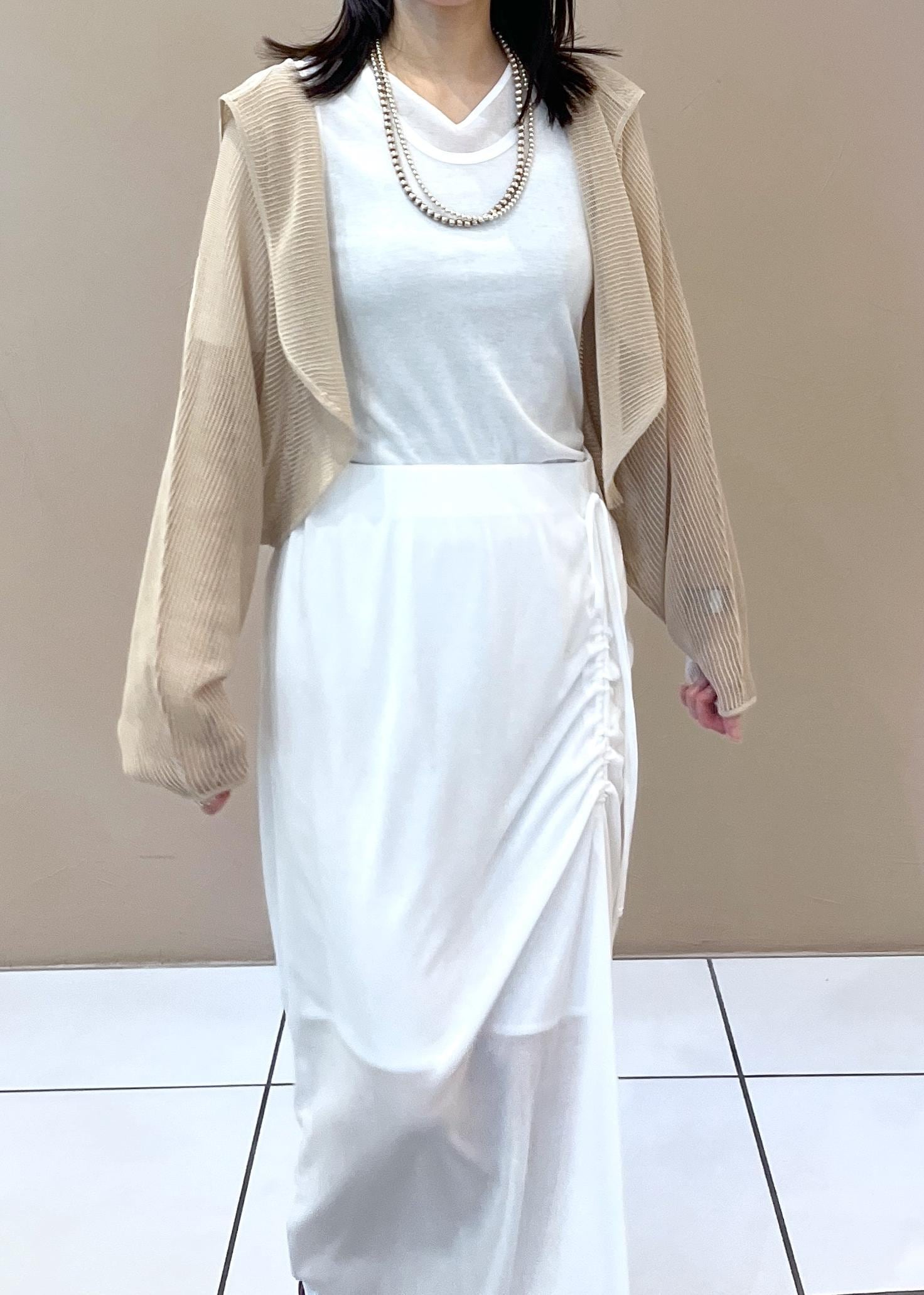SALON adam et ropénu=layerアシンメトリーシャーリングスカートホワイト / F¥9,900レビューウエストゴムで楽ちん。