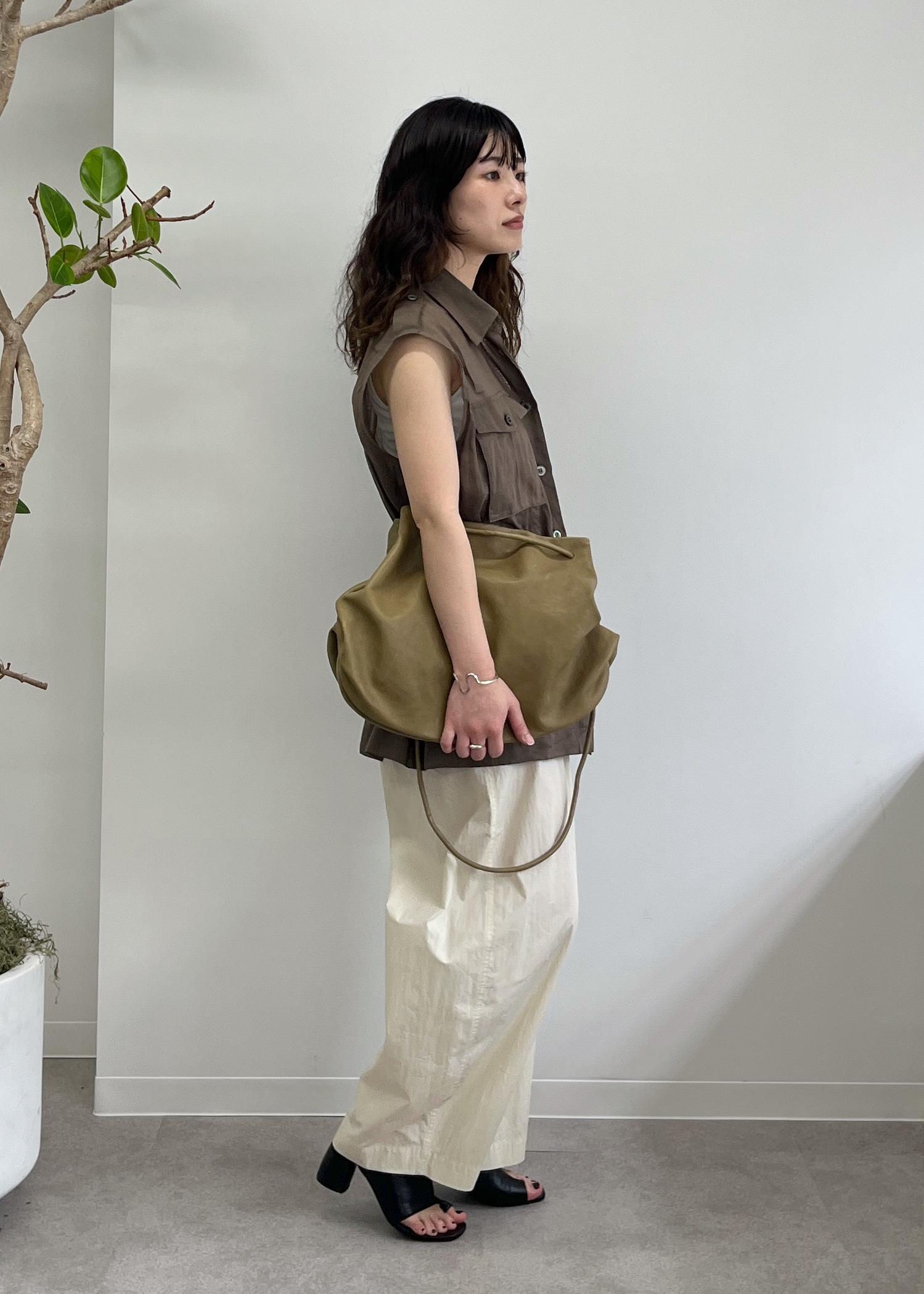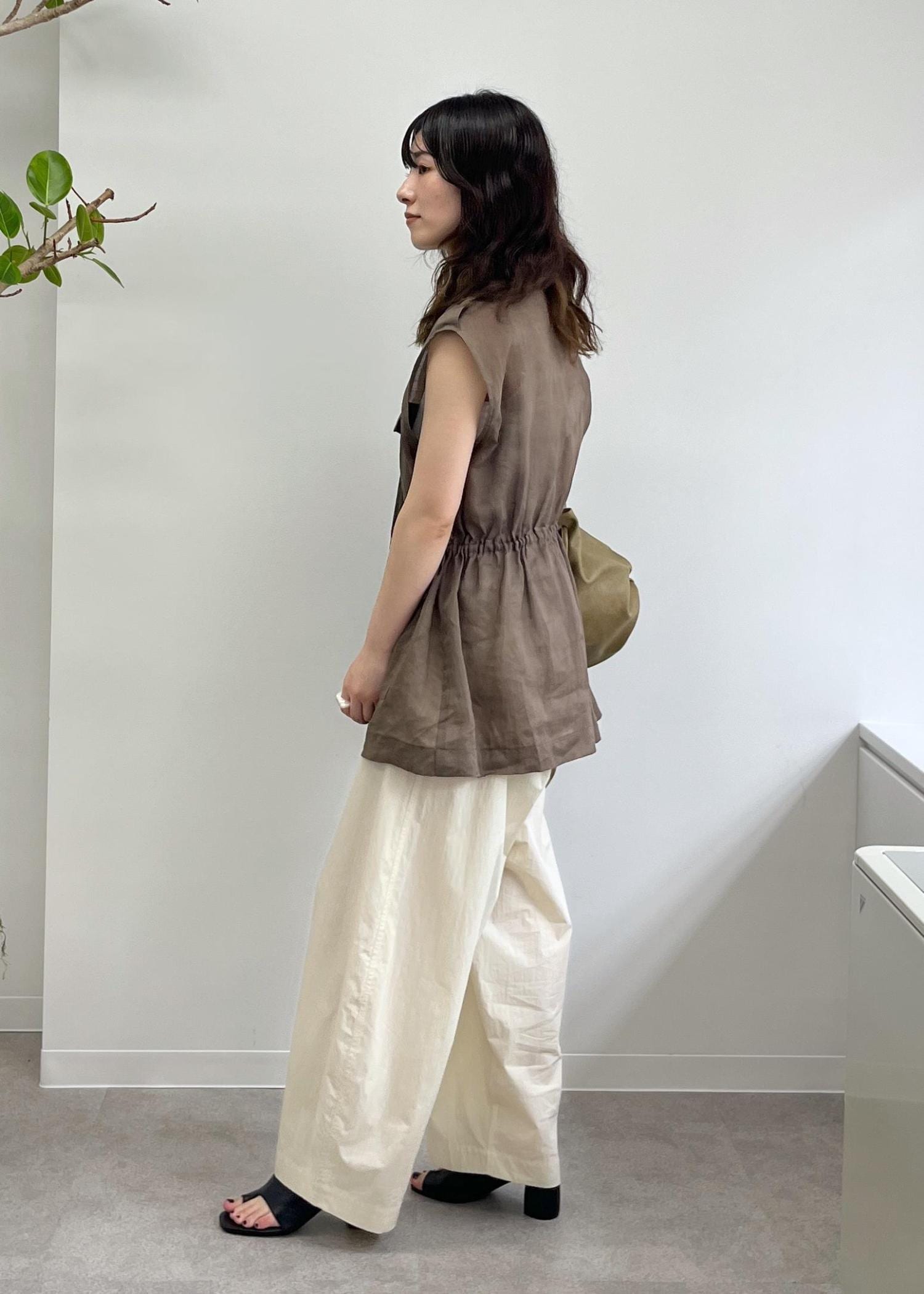 撥水加工のあるシャリ感ある素材。カーヴィーシルエットでゆったりとしたシルエットで履き心地◎体型問わず履いていただけます。 -