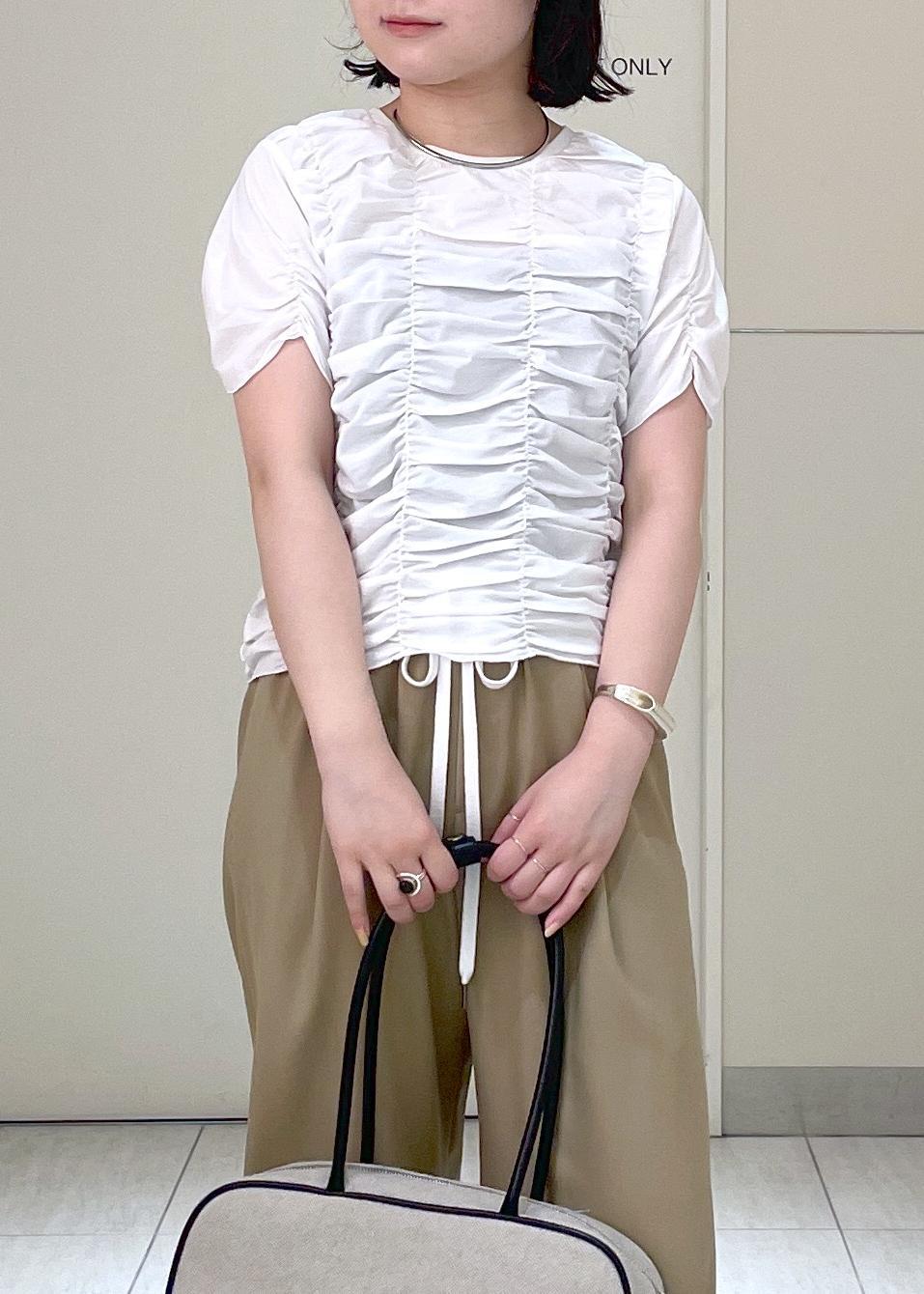 今回は夏にぴったりのシャーリングトップスでコーディネートしてみました!