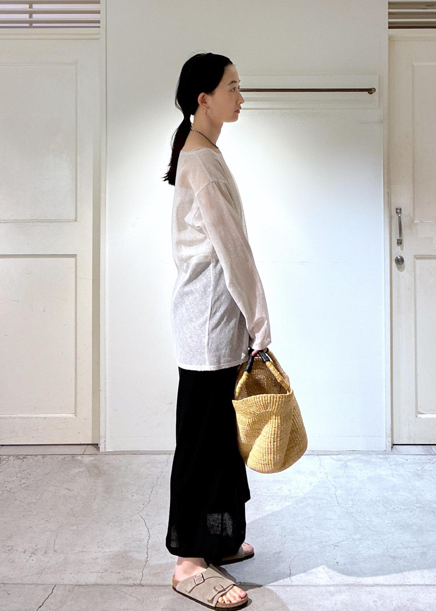 ナチュラルなアイテムですが、首周りが広いので片方肩を出したりして着てもかわいいです♡